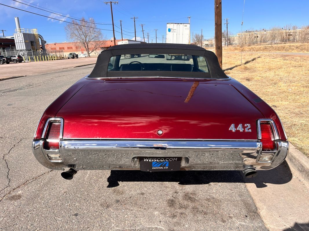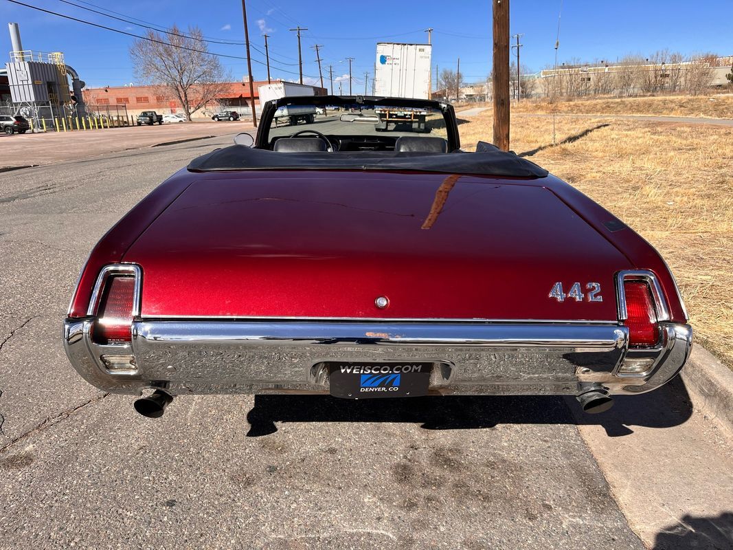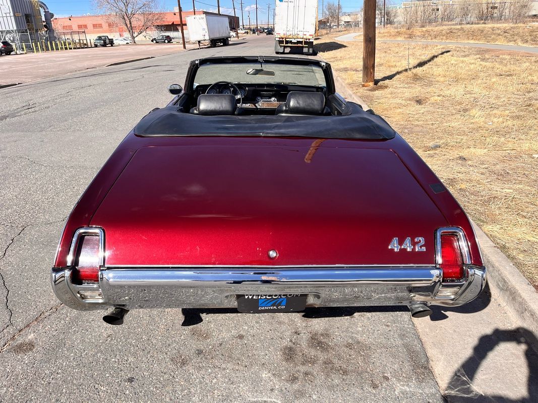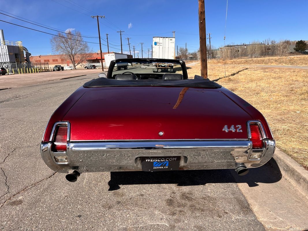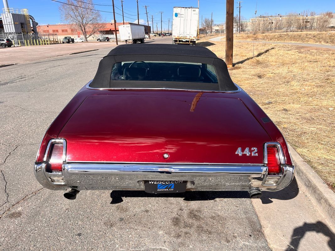 1969 Oldsmobile 442 convertible automatic on the floor with bucket seats &console. Has factory tick -tock-Tac, front power disc-brakes, and power steering. This OLDS 442 has a replacement70 442 engine 455- 365 HP and runs out very nice with upgrades like: hooker headers, msd ignition, edelbrock intake, edelbrock carb, and others. This 442 is arust-free California car andBeautiful inside and out ready for your enjoyment. Call Weisco Motorcars for more info or to set up a time to stop by for a look over this very clean Olds as it will not last long.
