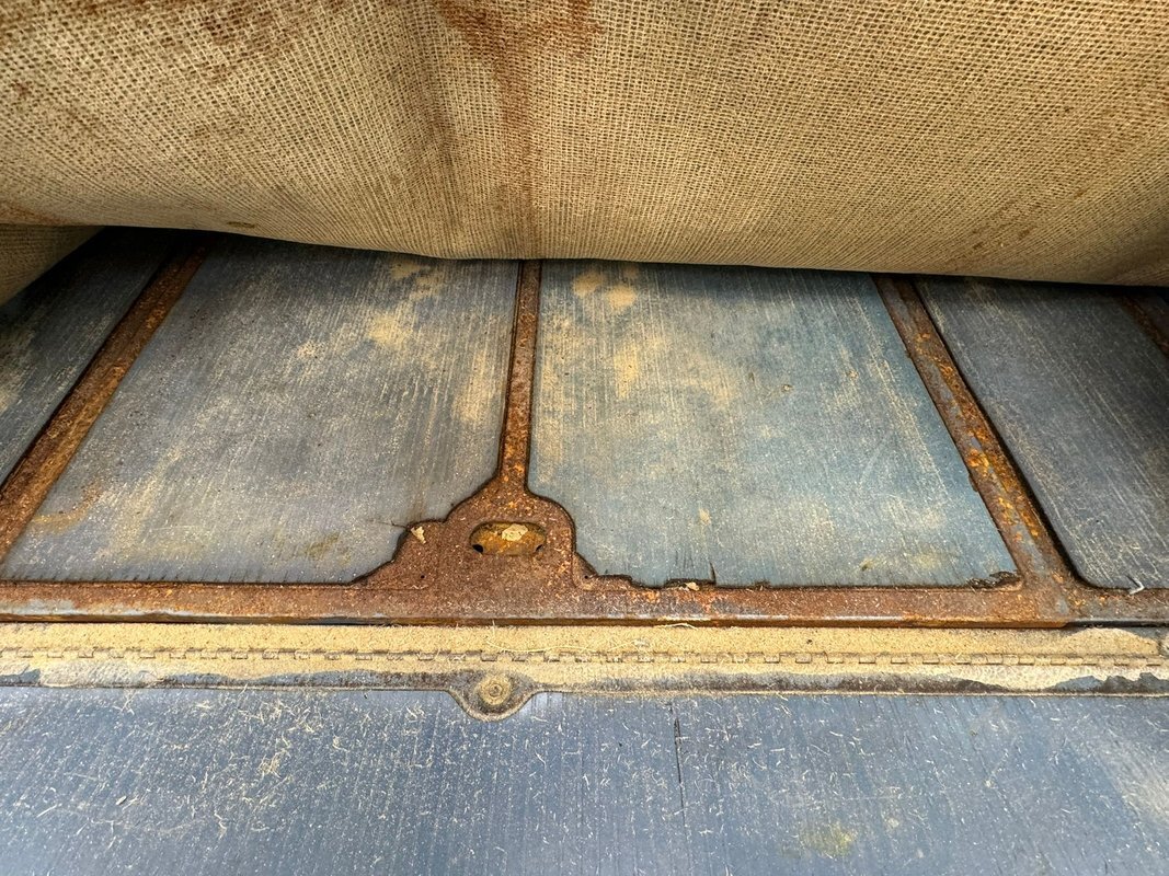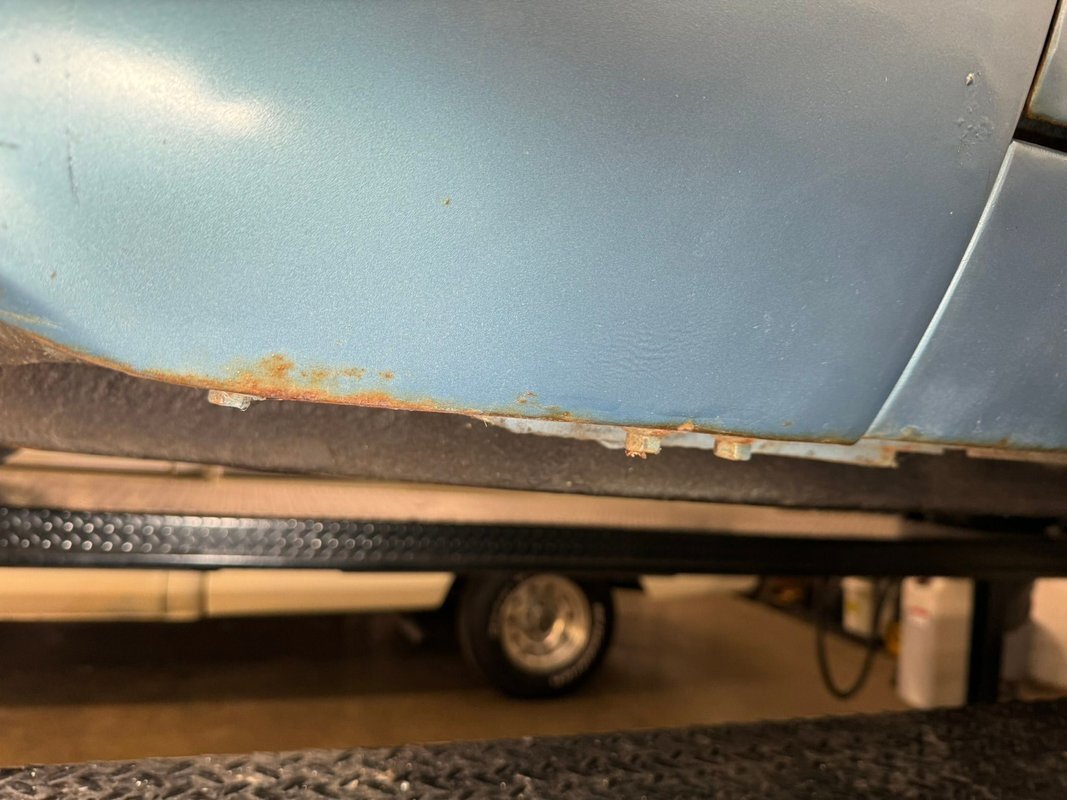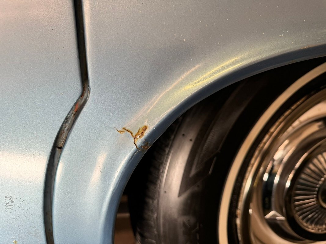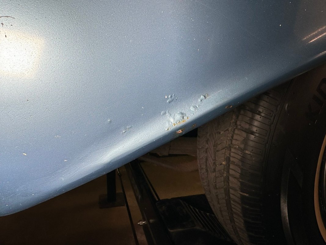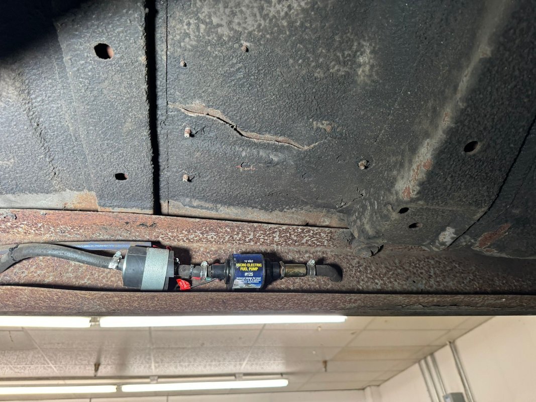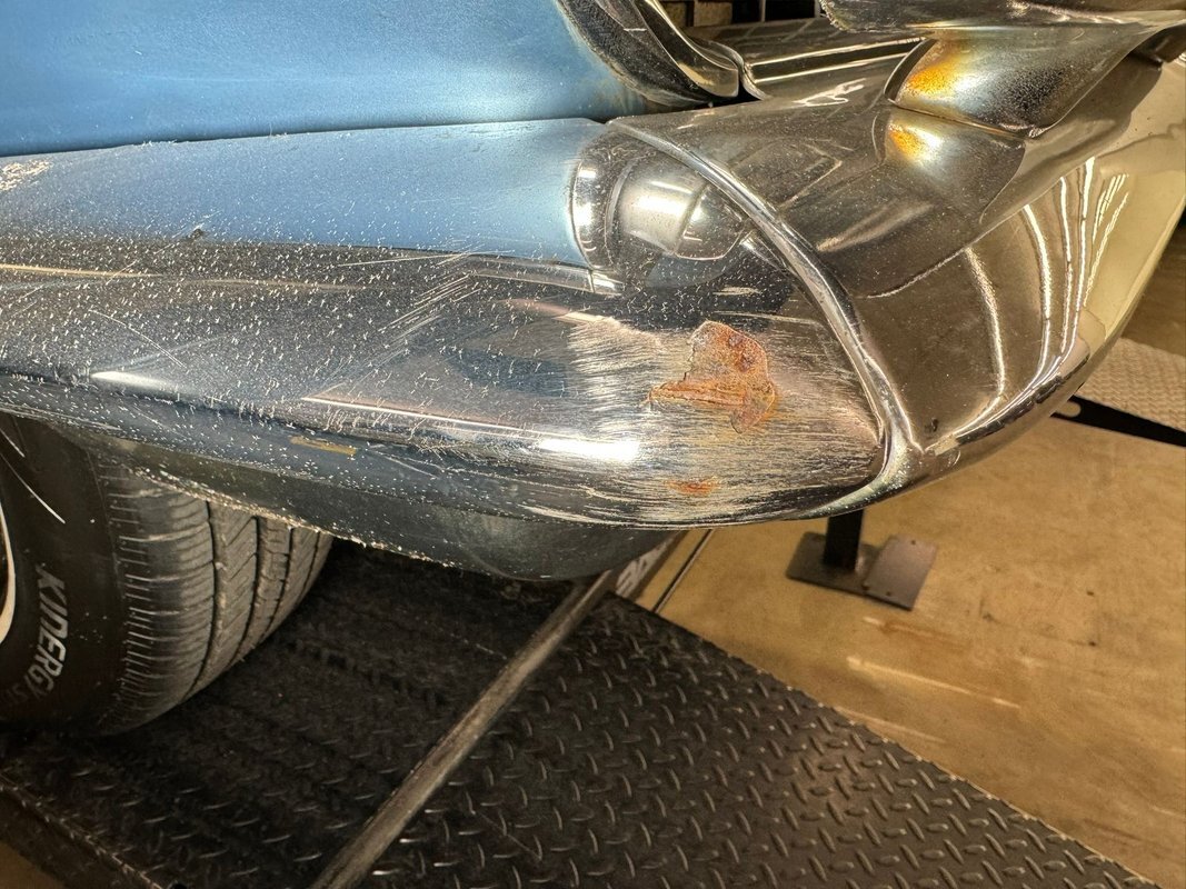 Under this long steel beauty we see some light to moderate surface rust in the X frame and some suspension parts. Floor pans are solid and fenders are rust free with just some road dirt caked on them. Suspension is independent coil springs for the fort and leaf springs for the rear. Drum braking is on all 4 corners. Fairly simple and some new mufflers are seen under here.