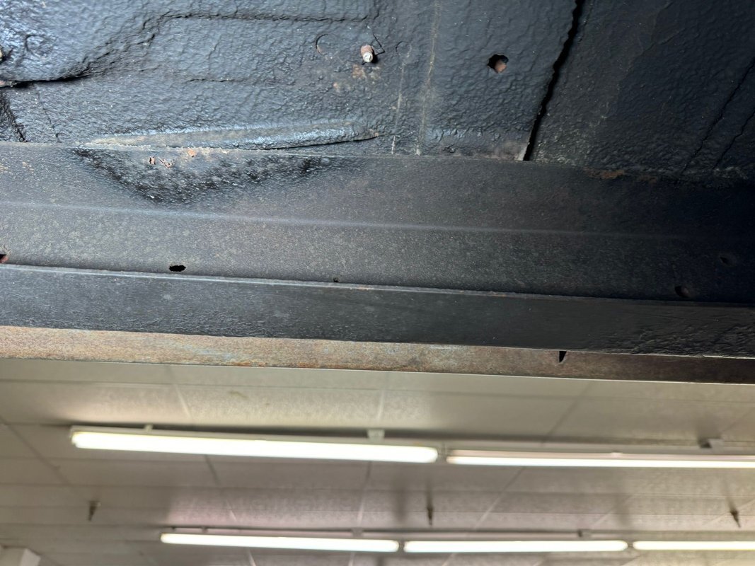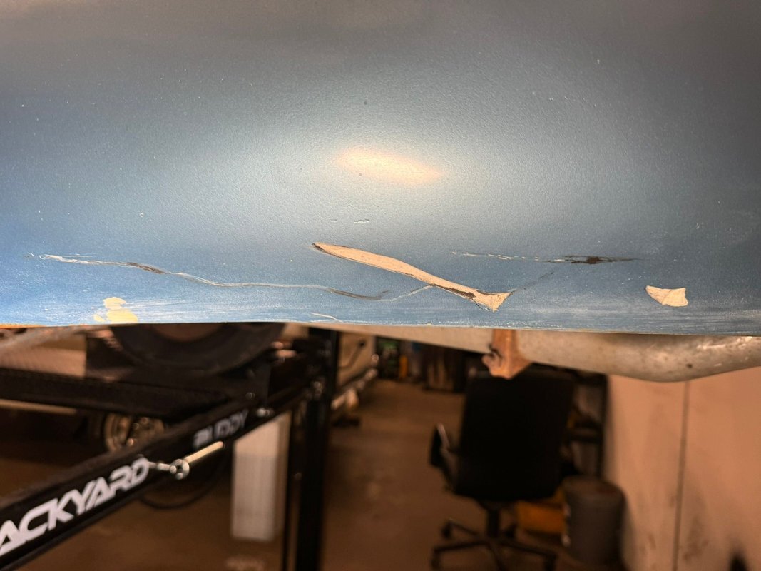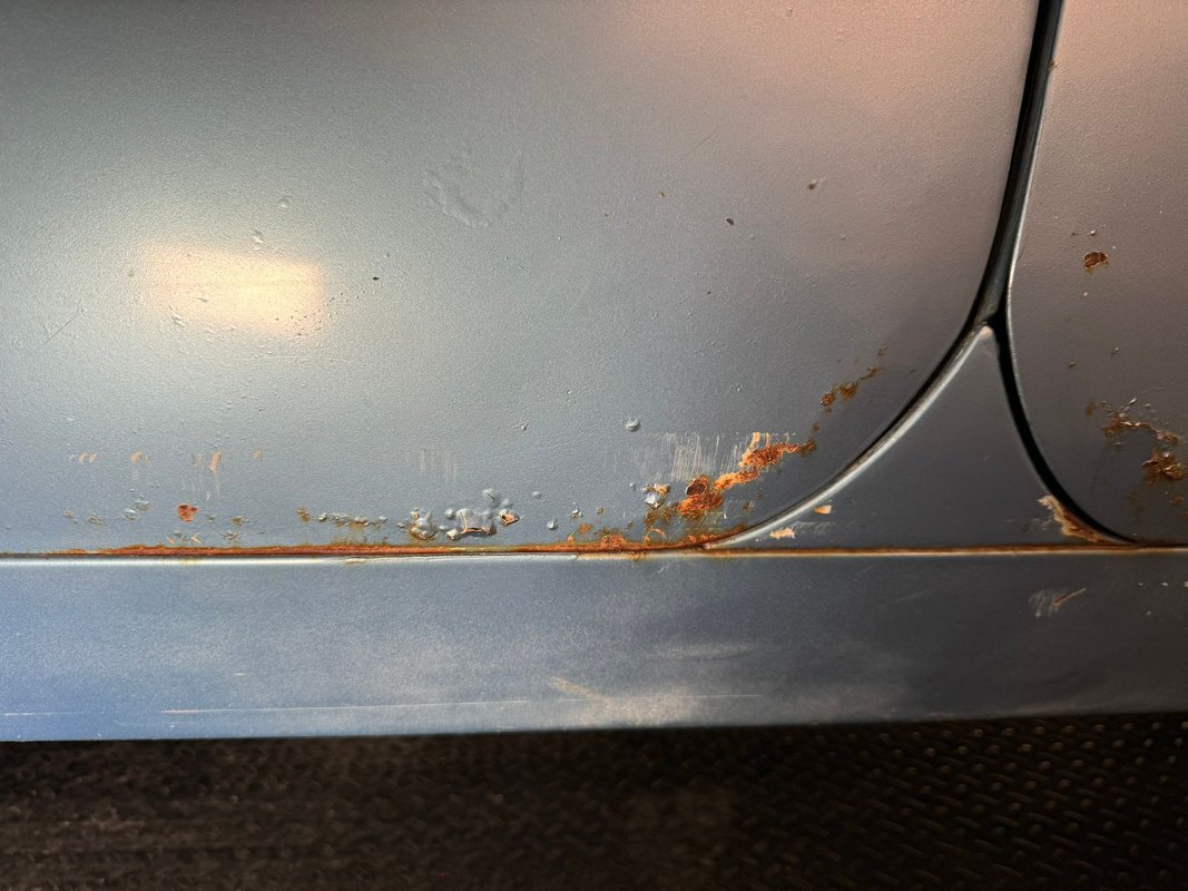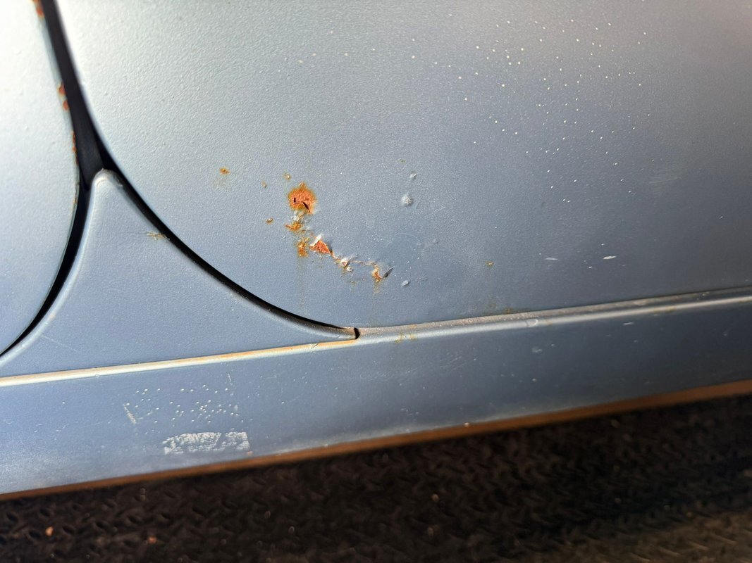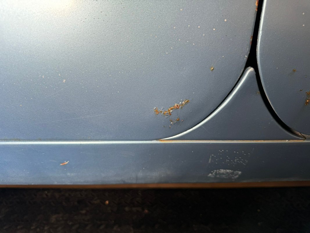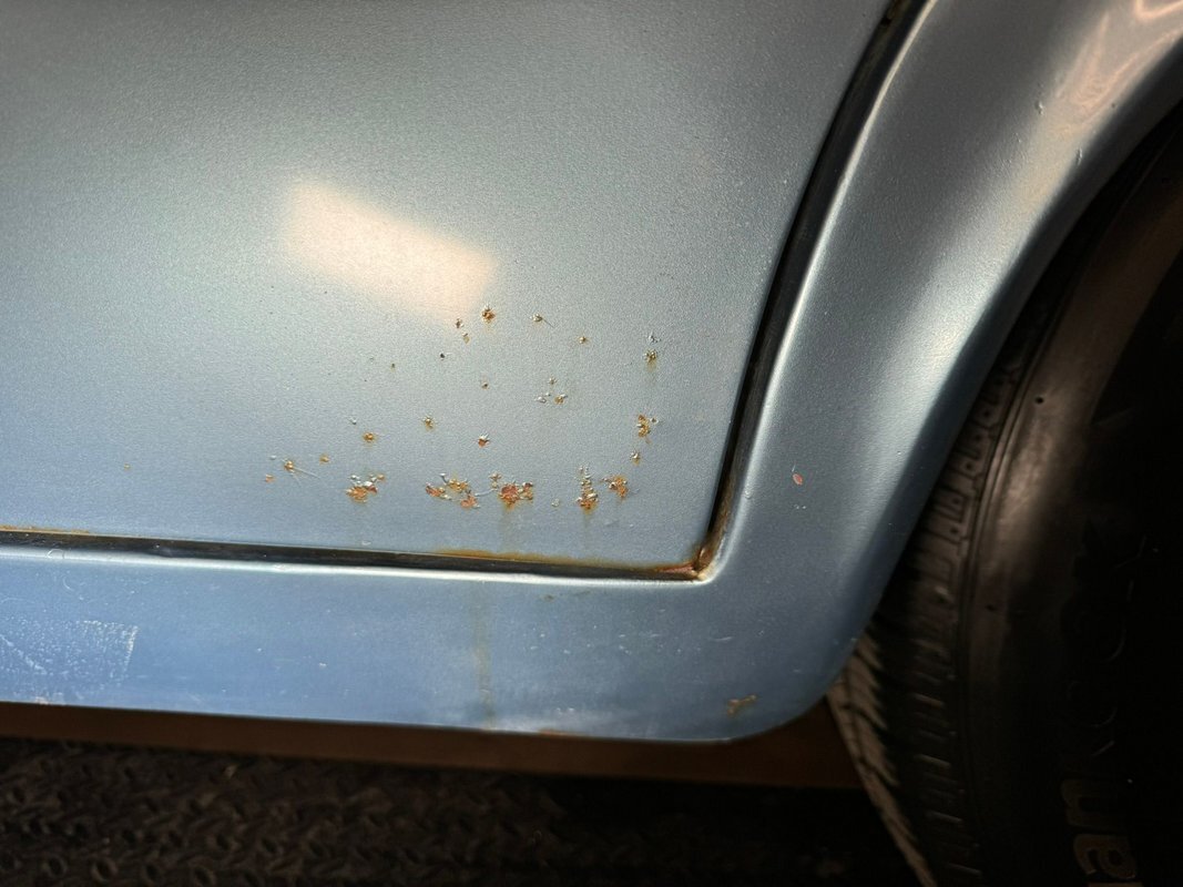 Under this long steel beauty we see some light to moderate surface rust in the X frame and some suspension parts. Floor pans are solid and fenders are rust free with just some road dirt caked on them. Suspension is independent coil springs for the fort and leaf springs for the rear. Drum braking is on all 4 corners. Fairly simple and some new mufflers are seen under here.