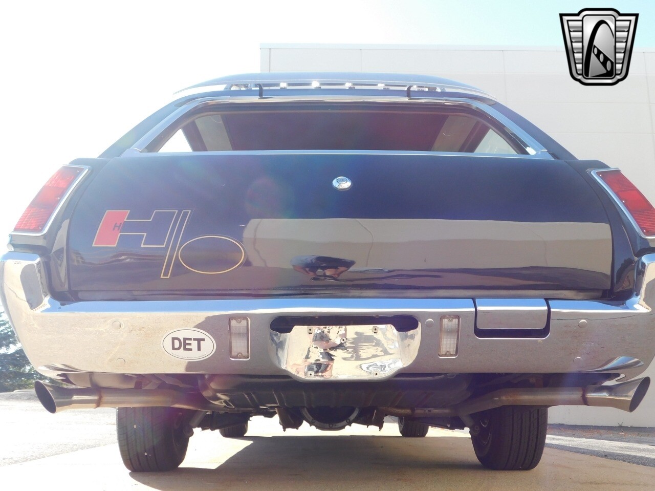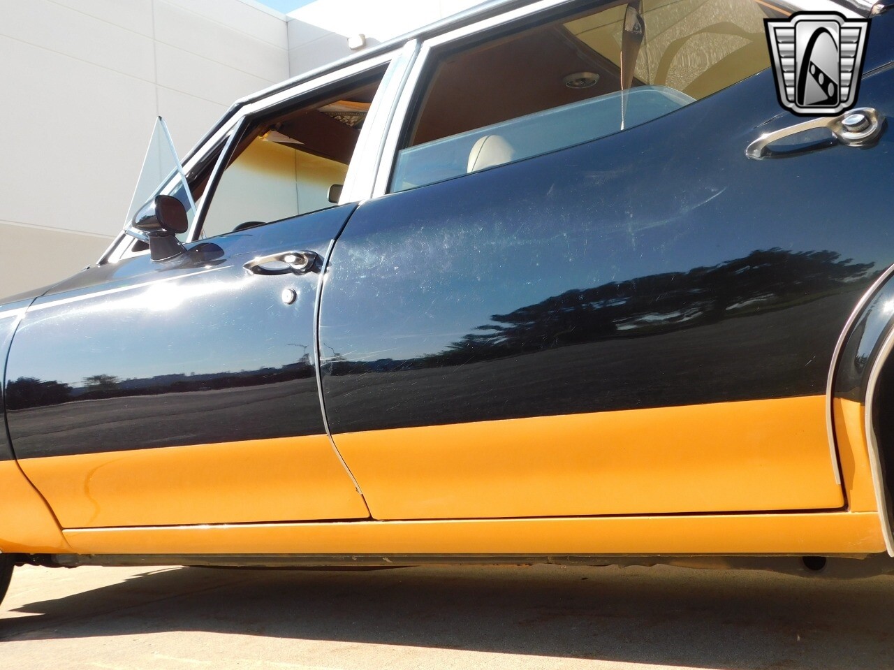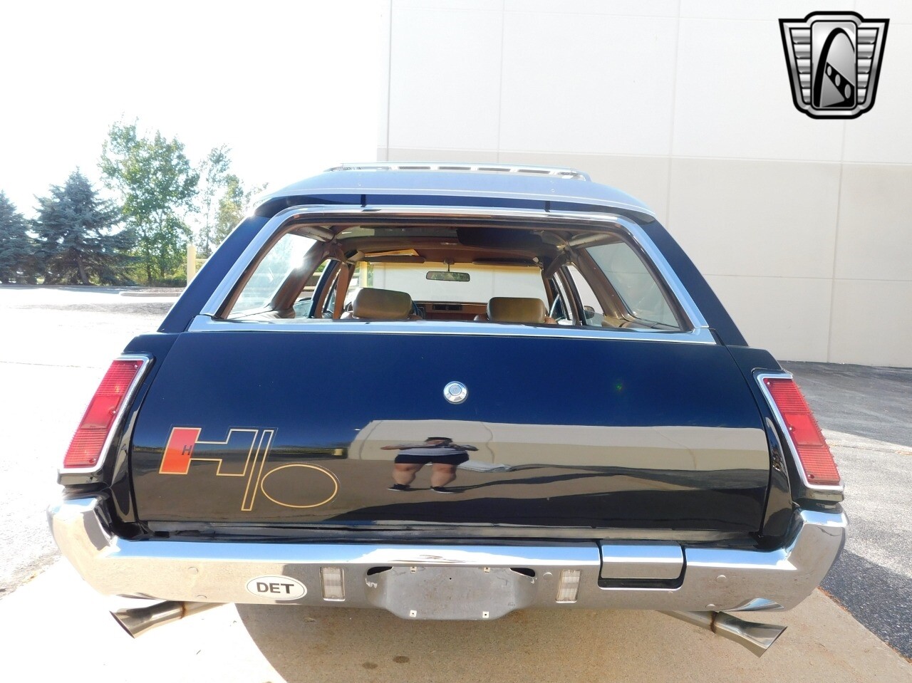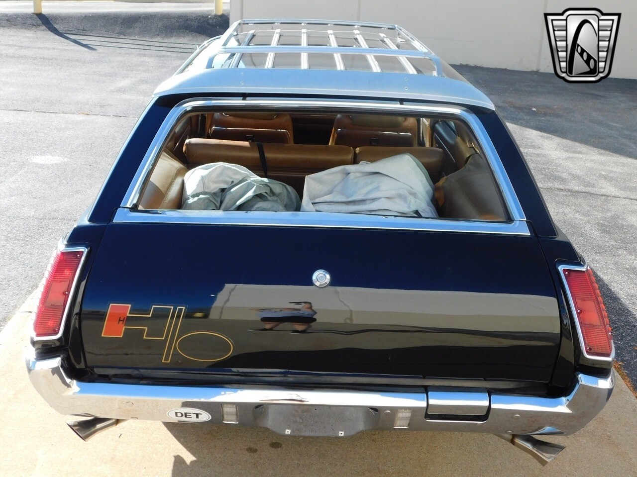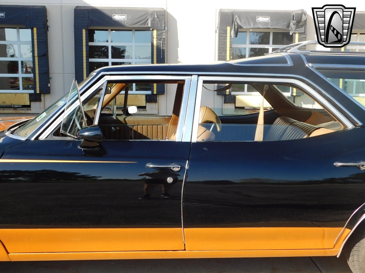 Discover the thrill of vintage charm with our 1972 Oldsmobile Vista Cruiser. This classic automobile comes in a dazzling black hue adorned with bold orange racing stripes - guaranteed to make a striking impression on the streets and at car gatherings.