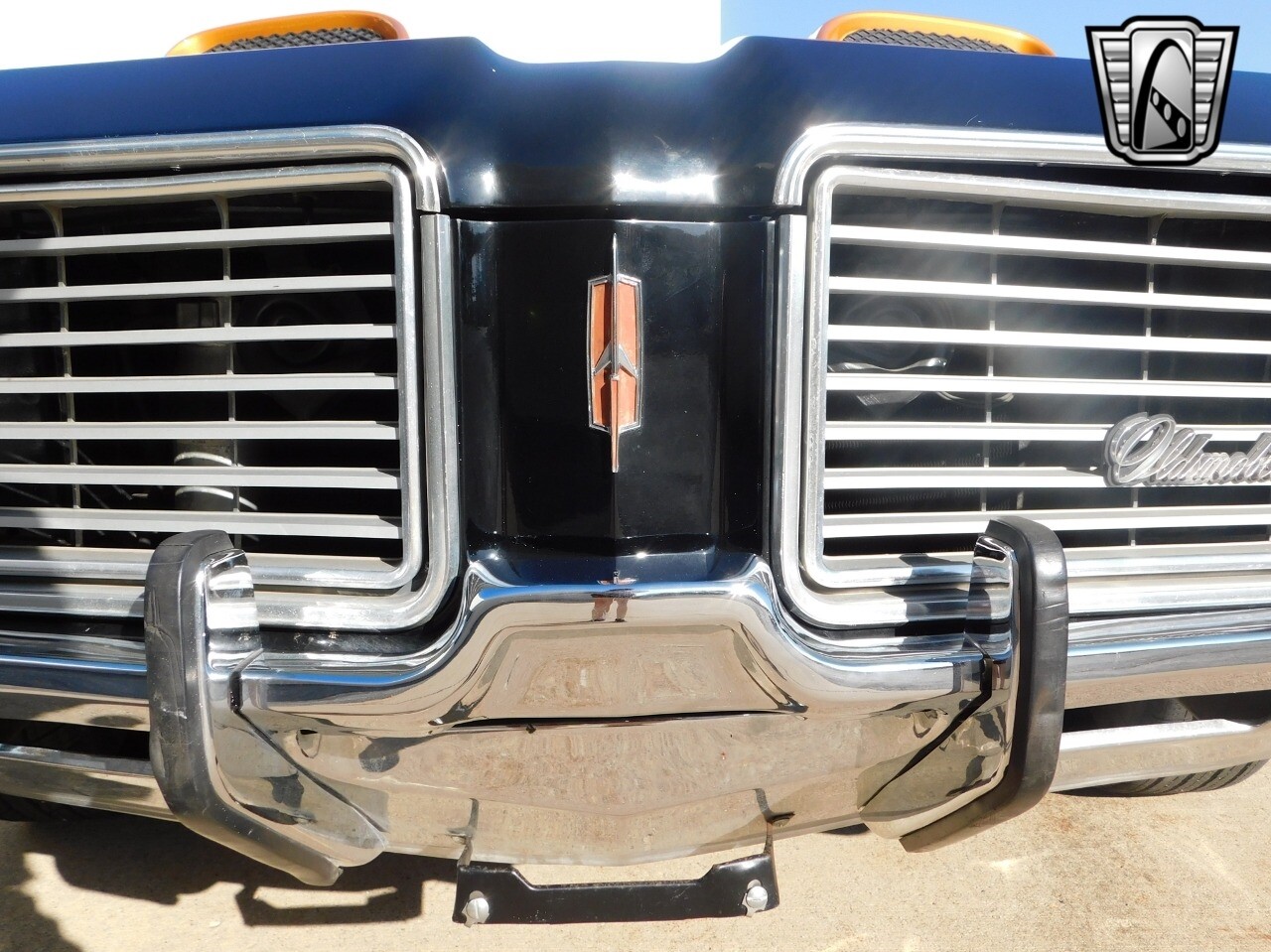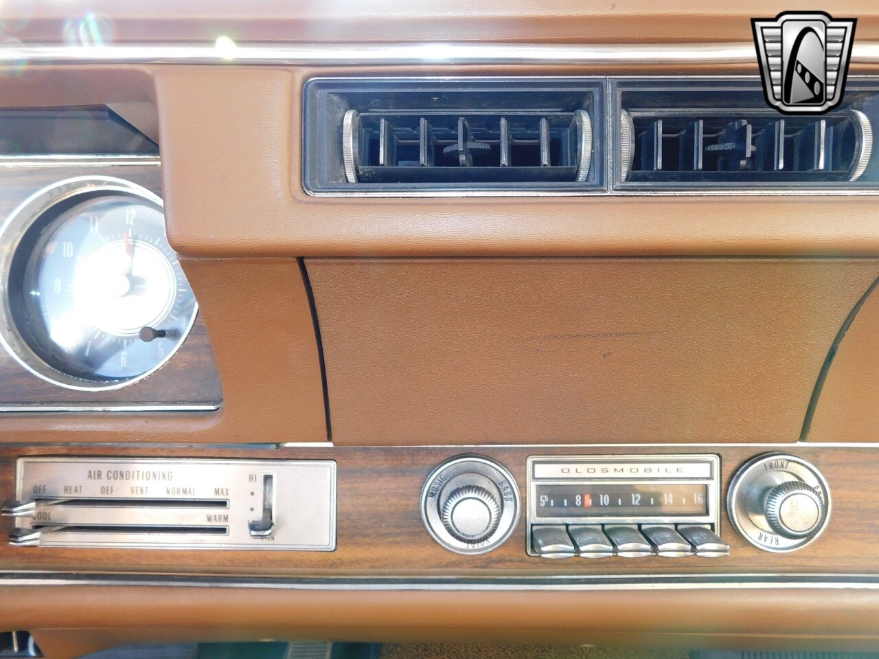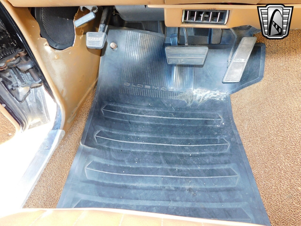 The car's exterior is nicely complemented with matching hub caps, adding a finishing touch to this classic Oldsmobile. Together, these features offer a seamless blend of aesthetics and functionality, making every ride a truly immersive experience.