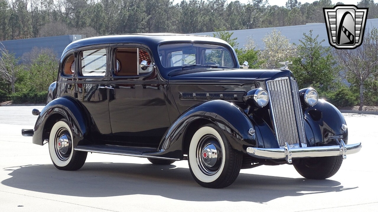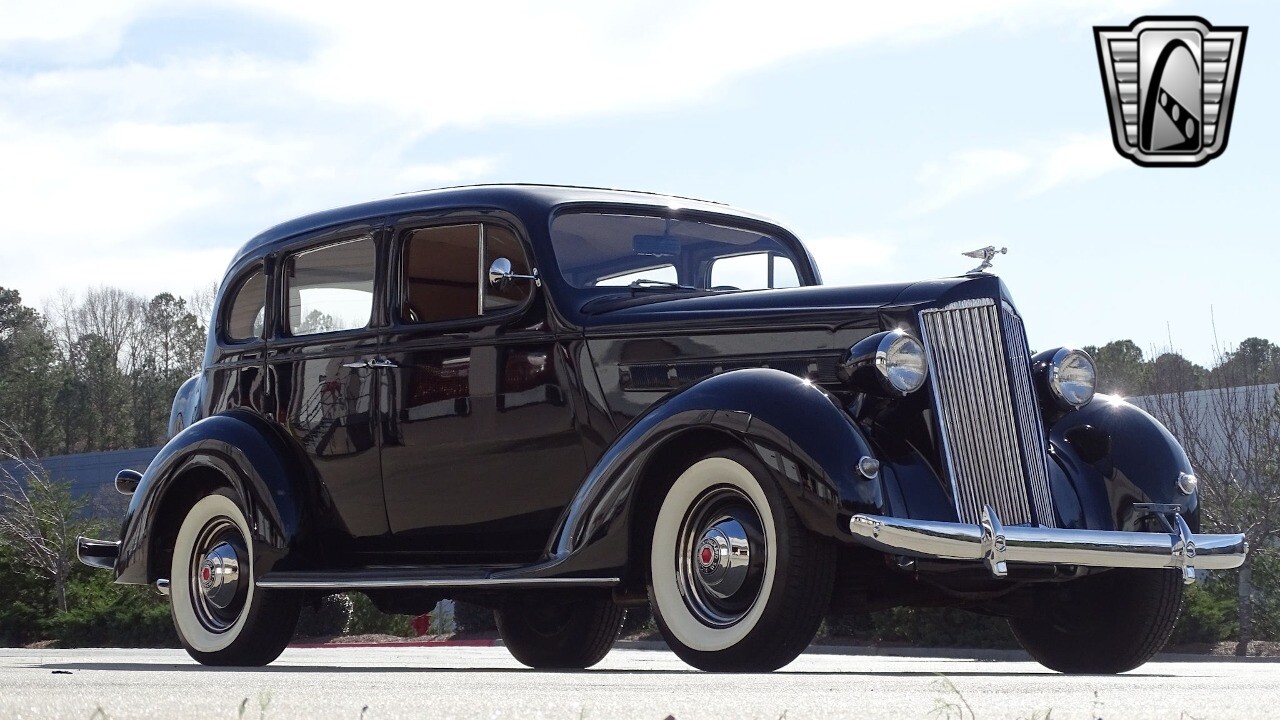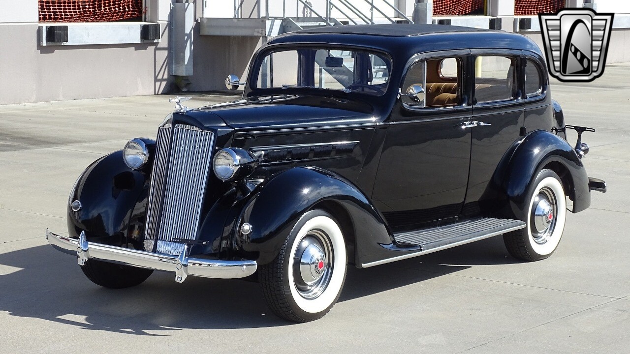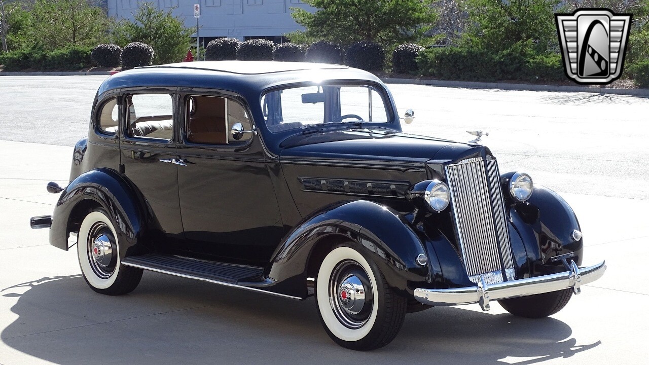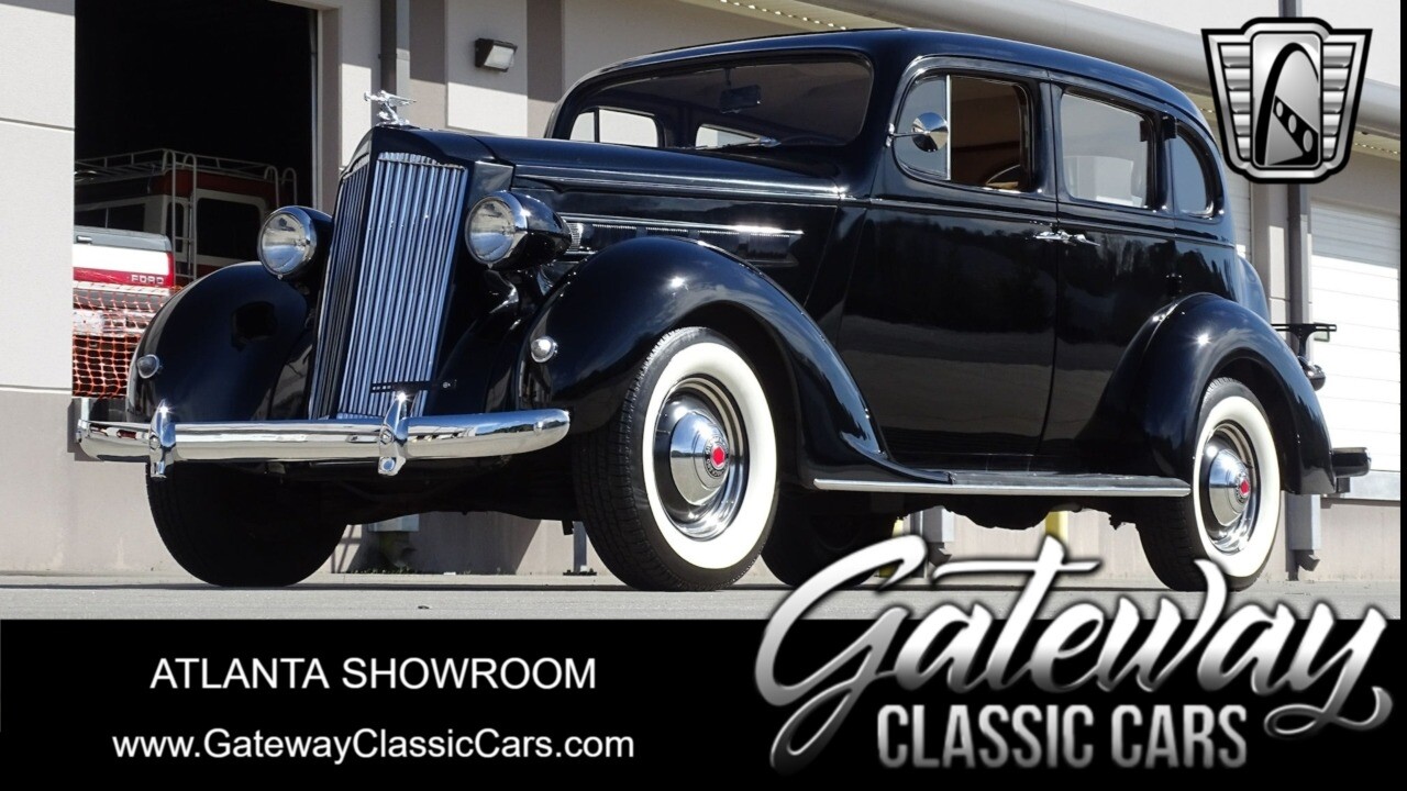 Gateway Classic Cars of Atlanta is proud to present this cool 1937 Packard 115C. Packard unveiled the 15th series for 1937 at the National Automobile Show in October of 1936. To raise an appeal, the company heavily marketed the phrase "finer cars at lower prices." Lose yourself in 1930's luxury with this beautiful sedan finished with a Packard Black exterior, and a Tan Vinyl. The back 'suicide doors' open to a very roomy, beautiful and very comfortable interior. In 1937, the company introduced the Packard Six, the first six-cylinder Packard in ten years. Backed by a floor mounted 3-speed manual transmission. Today, this car offers appealing good looks, wonderful road manners, and all the stature that comes with the cormorant hood ornament. Don't miss your chance to own this beautiful historic automobile!.