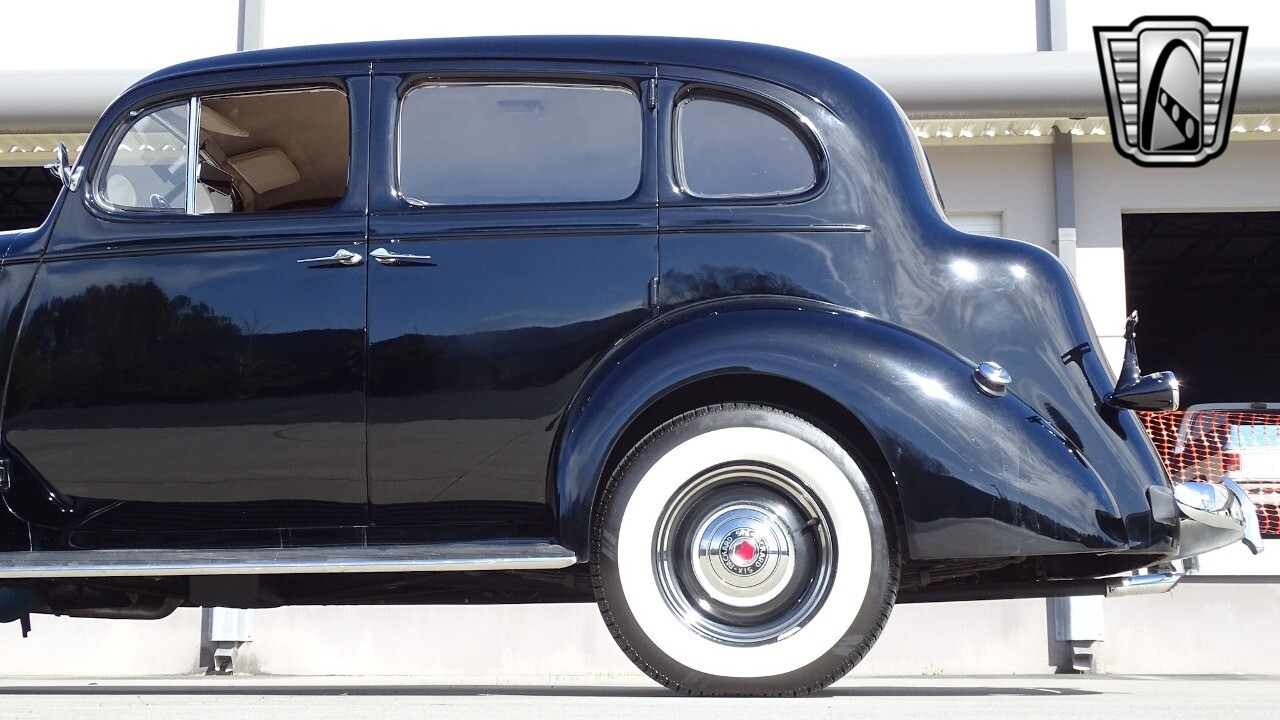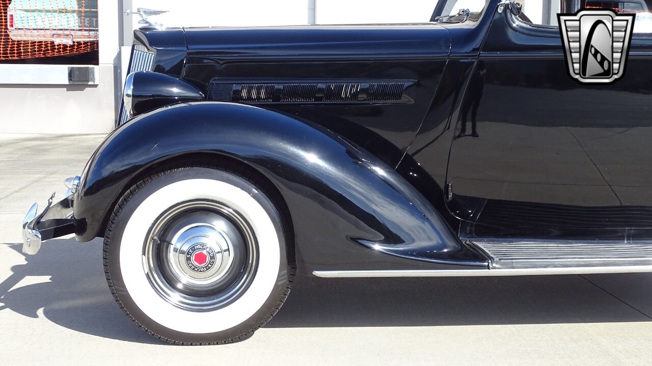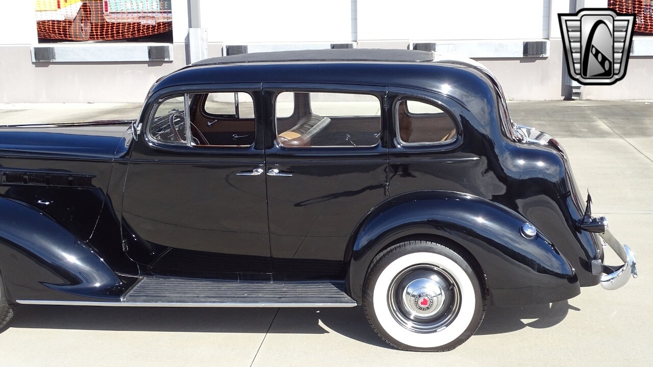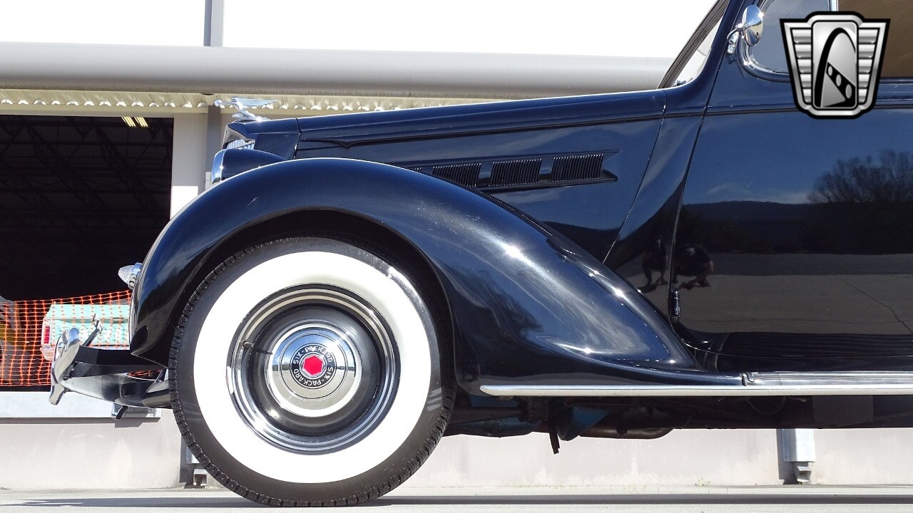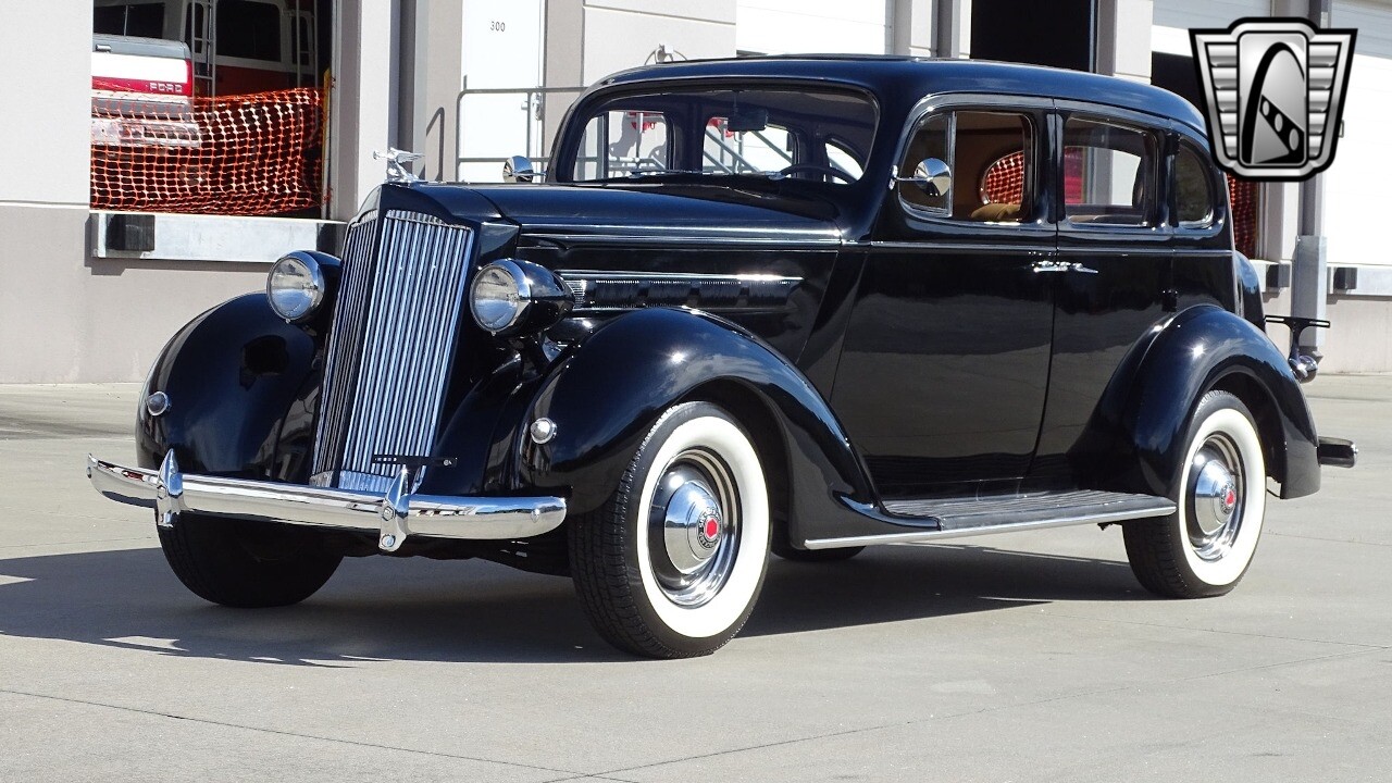Gateway Classic Cars of Atlanta is proud to present this cool 1937 Packard 115C. Packard unveiled the 15th series for 1937 at the National Automobile Show in October of 1936. To raise an appeal, the company heavily marketed the phrase "finer cars at lower prices." Lose yourself in 1930's luxury with this beautiful sedan finished with a Packard Black exterior, and a Tan Vinyl. The back 'suicide doors' open to a very roomy, beautiful and very comfortable interior. In 1937, the company introduced the Packard Six, the first six-cylinder Packard in ten years. Backed by a floor mounted 3-speed manual transmission. Today, this car offers appealing good looks, wonderful road manners, and all the stature that comes with the cormorant hood ornament. Don't miss your chance to own this beautiful historic automobile!.