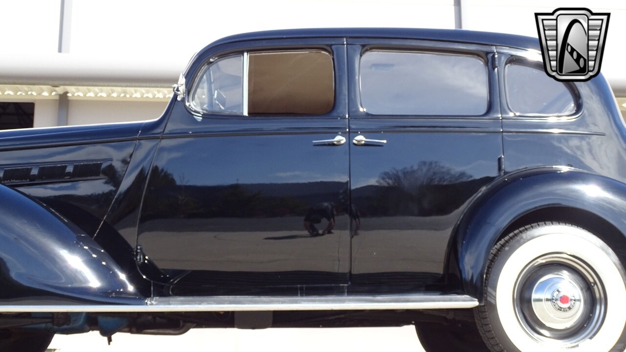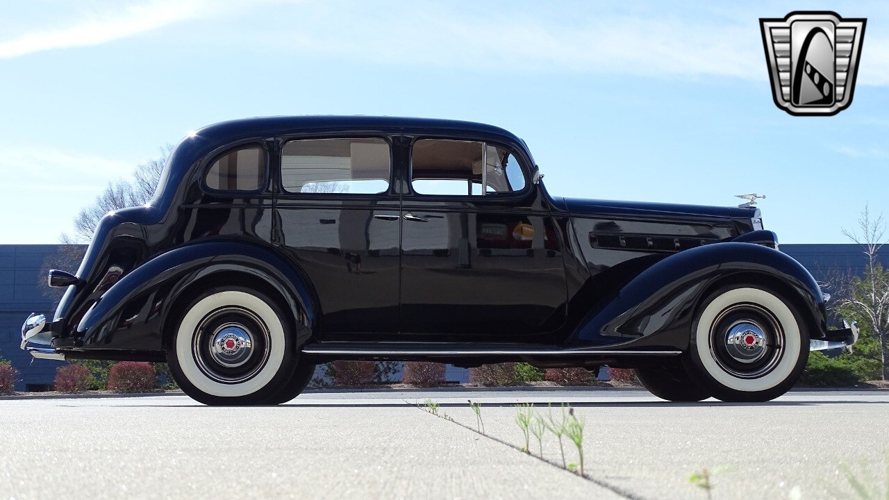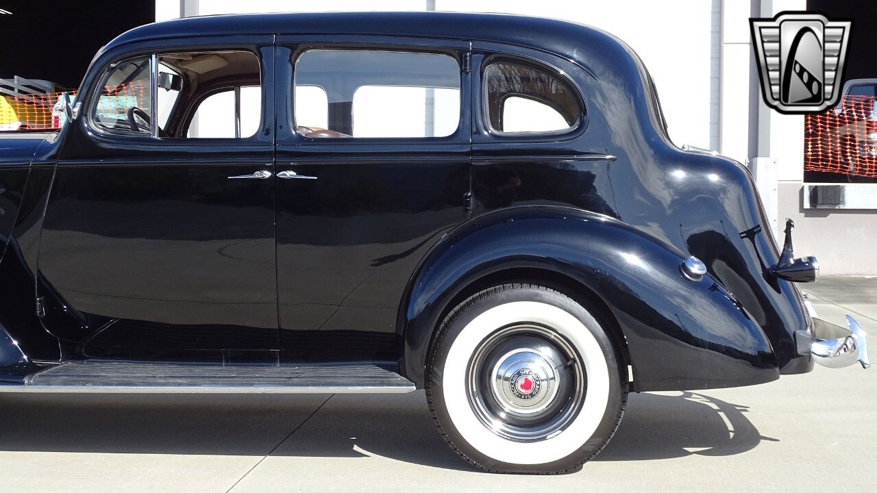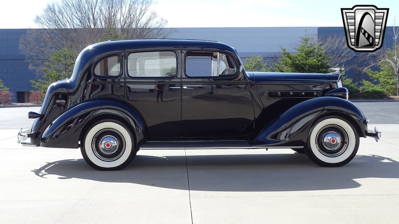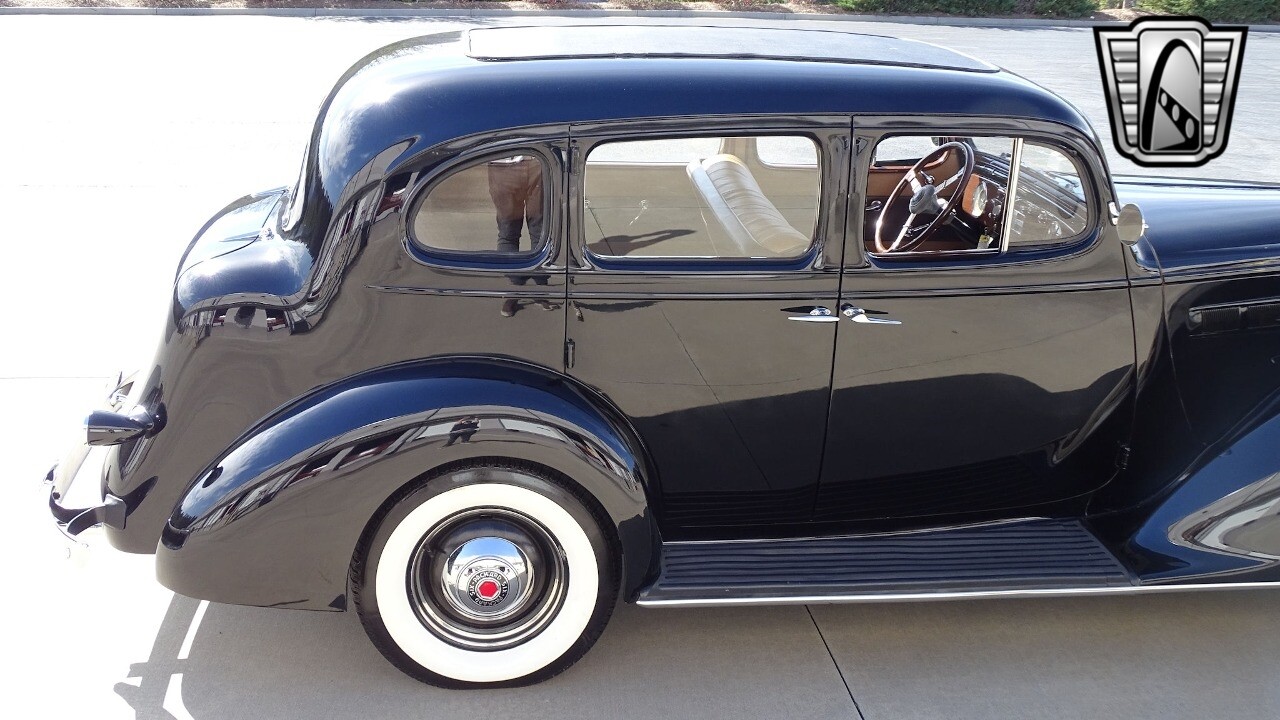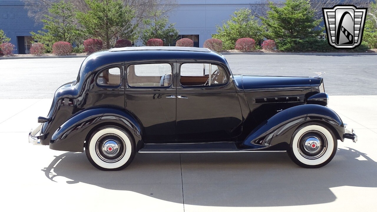 Gateway Classic Cars of Atlanta is proud to present this cool 1937 Packard 115C. Packard unveiled the 15th series for 1937 at the National Automobile Show in October of 1936. To raise an appeal, the company heavily marketed the phrase "finer cars at lower prices." Lose yourself in 1930's luxury with this beautiful sedan finished with a Packard Black exterior, and a Tan Vinyl. The back 'suicide doors' open to a very roomy, beautiful and very comfortable interior. In 1937, the company introduced the Packard Six, the first six-cylinder Packard in ten years. Backed by a floor mounted 3-speed manual transmission. Today, this car offers appealing good looks, wonderful road manners, and all the stature that comes with the cormorant hood ornament. Don't miss your chance to own this beautiful historic automobile!.