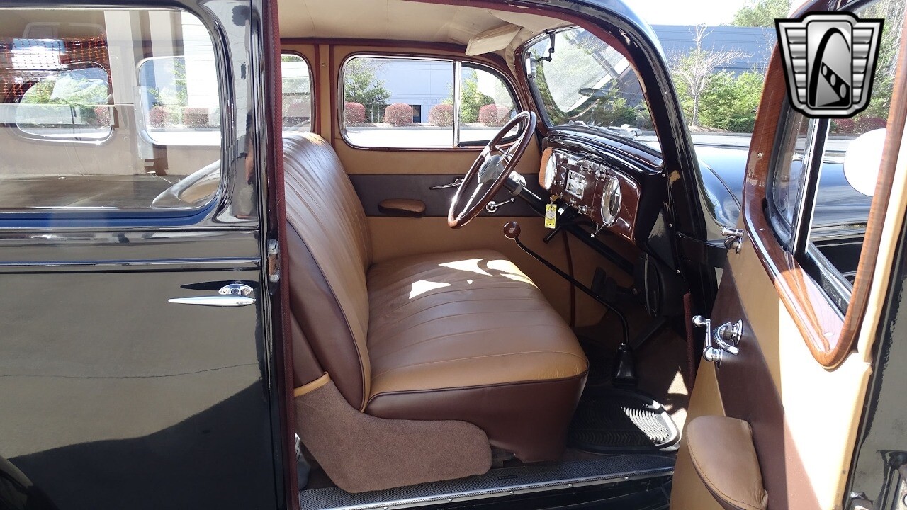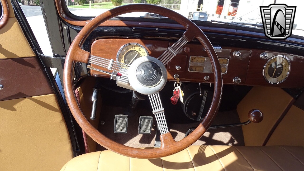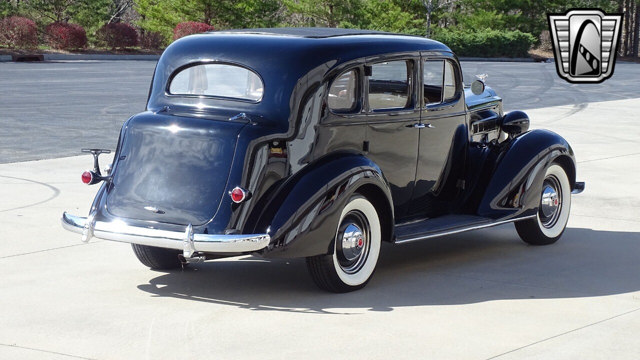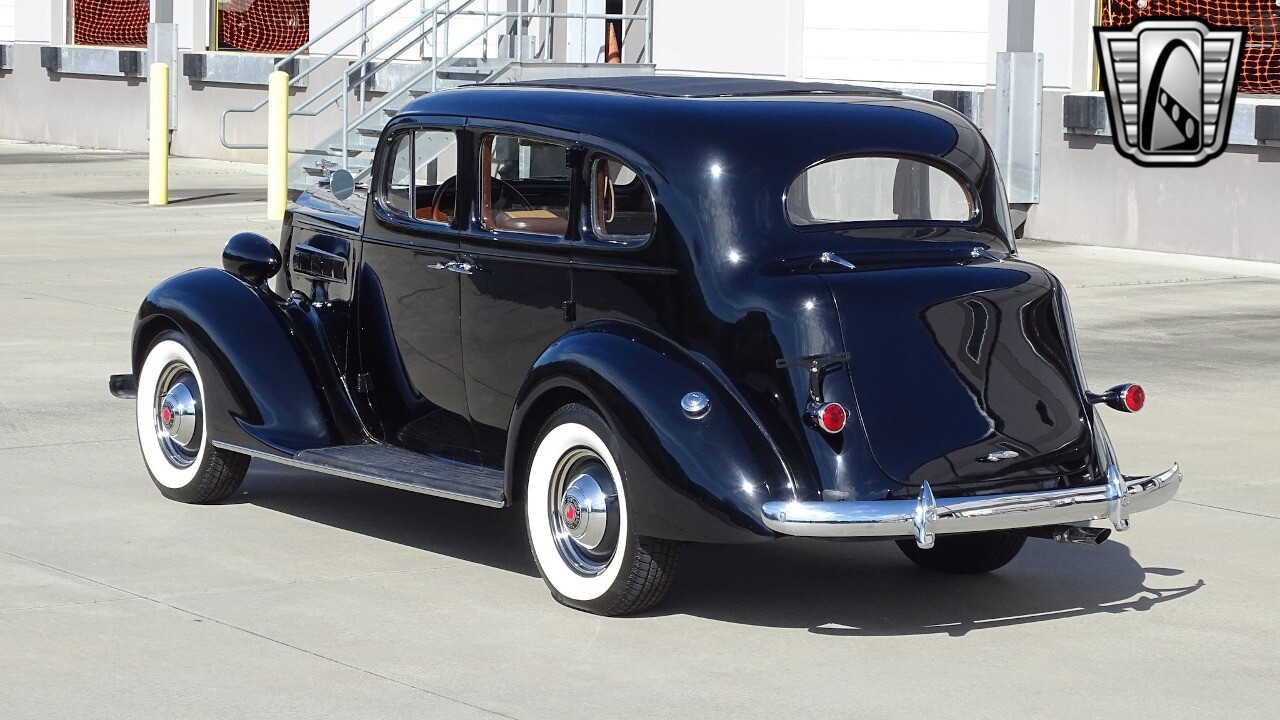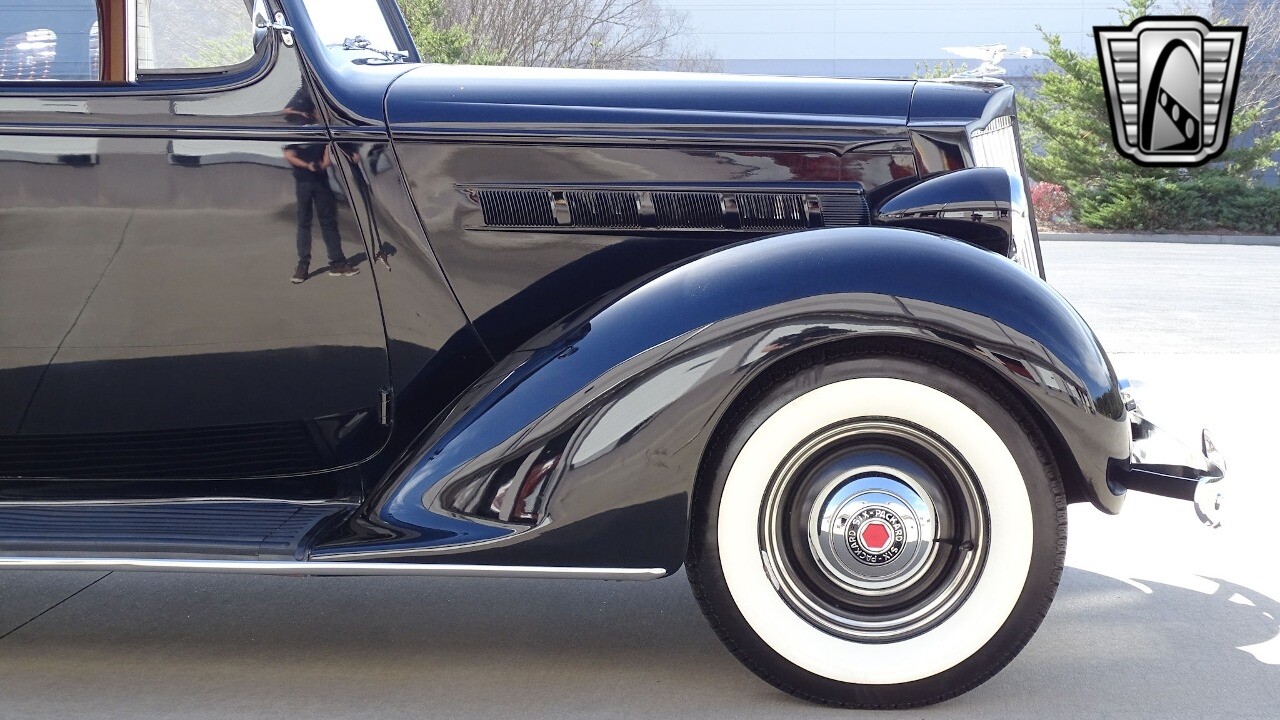 Gateway Classic Cars of Atlanta is proud to present this cool 1937 Packard 115C. Packard unveiled the 15th series for 1937 at the National Automobile Show in October of 1936. To raise an appeal, the company heavily marketed the phrase "finer cars at lower prices." Lose yourself in 1930's luxury with this beautiful sedan finished with a Packard Black exterior, and a Tan Vinyl. The back 'suicide doors' open to a very roomy, beautiful and very comfortable interior. In 1937, the company introduced the Packard Six, the first six-cylinder Packard in ten years. Backed by a floor mounted 3-speed manual transmission. Today, this car offers appealing good looks, wonderful road manners, and all the stature that comes with the cormorant hood ornament. Don't miss your chance to own this beautiful historic automobile!.