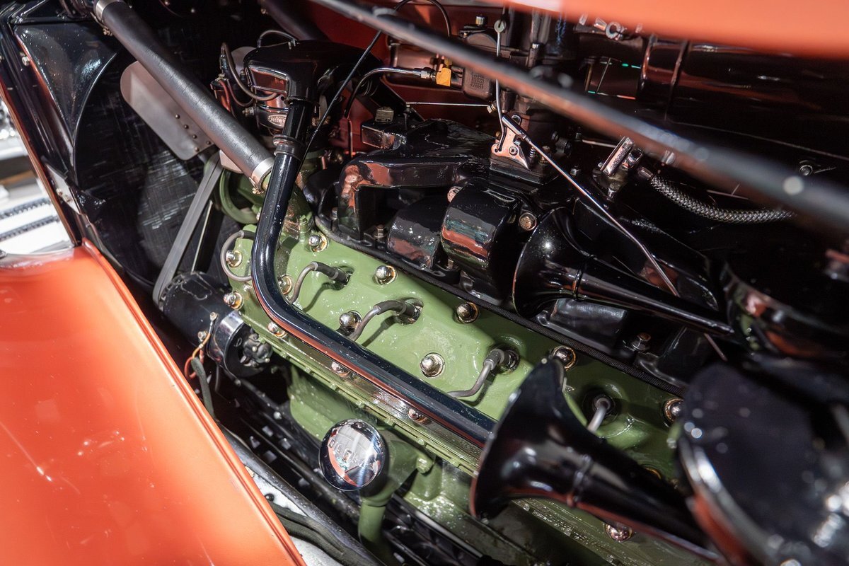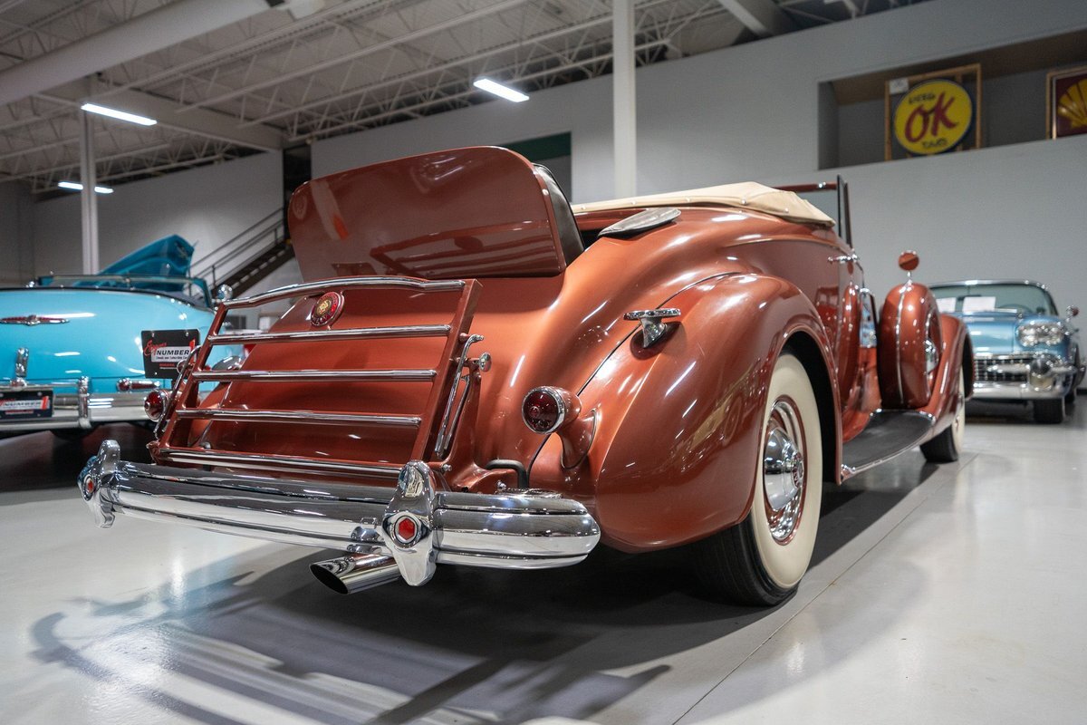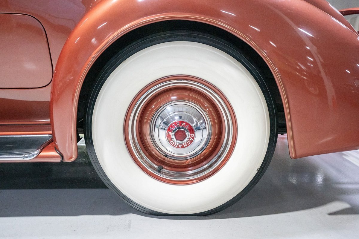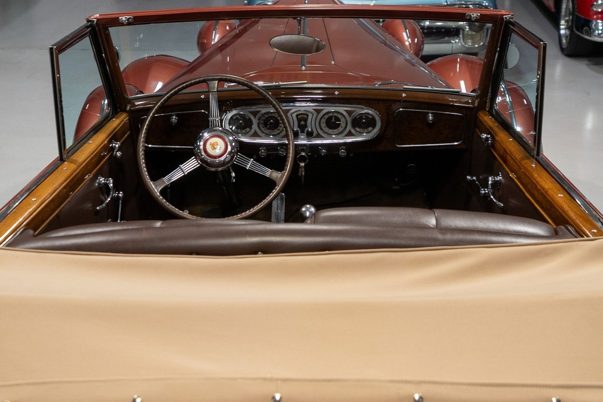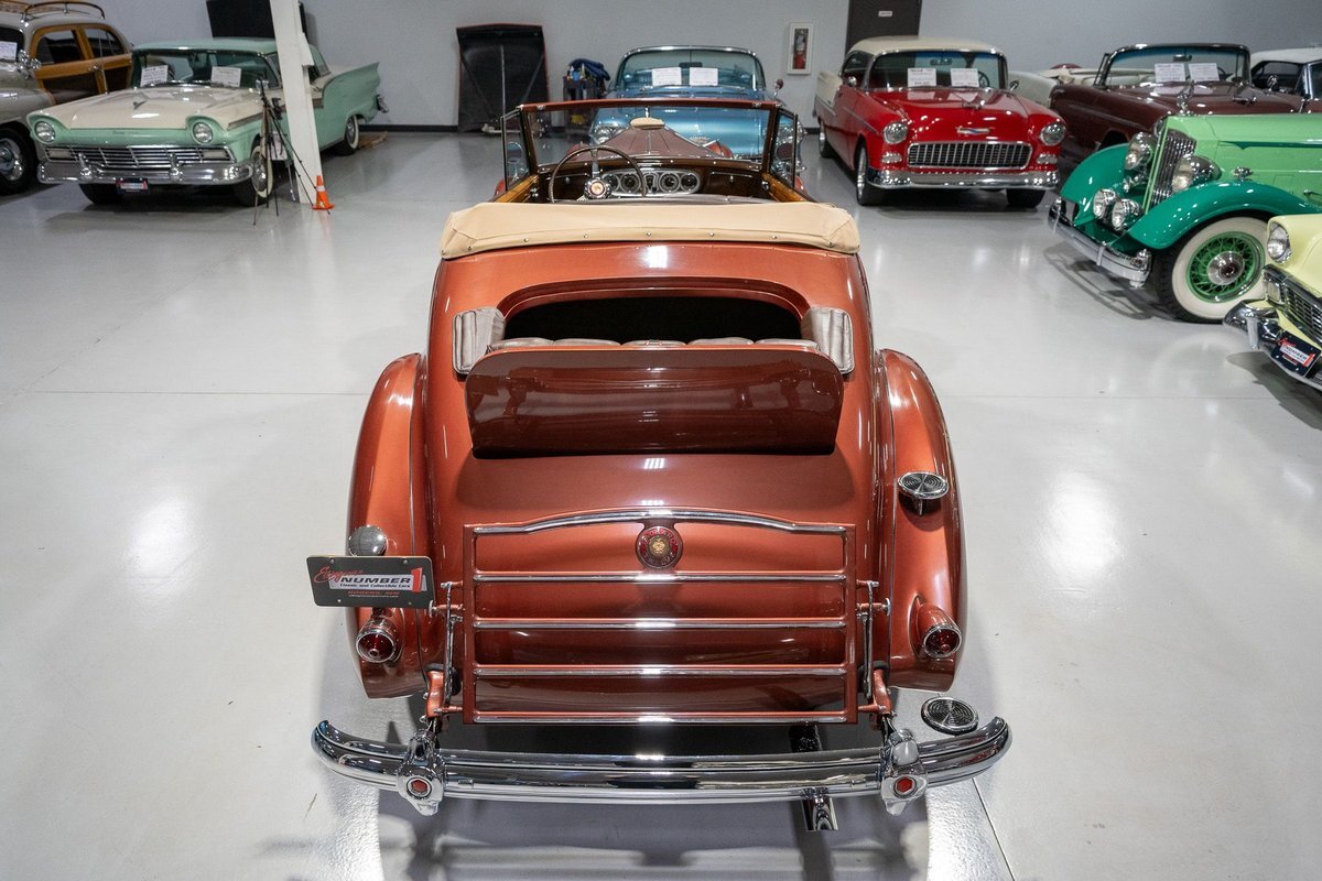 This 1937 Packard Twelve Model 1507-1039 Coupe-Roadster is an absolutely gorgeous V-12 Packard with impressive CCCA touring history. 1937 was an important year for Packard, the American luxury automaker who rose to prominence building some of the finest automobiles on US roads for decades. Like all American automobile manufacturers in the early 30s, Packard suffered significantly from the poor economic conditions and effects of the Great Depression. However, unlike virtually all of its luxury car manufacturer contemporaries, such as Marmon, Stutz, Auburn-Cord-Duesenberg, Peerless, and Pierce-Arrow, all of whom went bankrupt, Packard was able to survive and by 1937 Packard was thriving. Packard's ability to persevere through the Great Depression was due in large part to Packard's entry into the intermediate-priced car market. While Packard experienced impressive success selling its more affordably-priced Packard 120, the luxury automaker never completely abandoned its "Senior Packard" lines. In September 1936, the Fifteenth Series Packard Twelve models were introduced alongside the lower-level Super Eight models, however, the Packard Eight was gone. The 1937 Packards' most important and notable improvements were the mechanical upgrades. Up front, Packard swapped its single front axle for its new "Safe-T-Flex" independent front suspension that delivered a much smoother ride cruising down the road. In addition, Packard upgraded the braking system to a 4-wheel hydraulic setup, replacing the antiquated mechanical brakes that adorned Packard's previous generations. In addition, Packard modernized the doors on its Twelve models now outfitted with front hinges which was not only forward-looking but also much safer, compared to the suicide-style doors found on the earlier Packards. With the introduction of the 6 cylinder Packard 115 and the sales success of the more established 120, Packard sold the most cars in its history. Nonetheless, Packard produced a mere 1,300 Twelves, of which, included a believed 69 Model 1039 Coupe-Roadsters, which makes this particular vehicle a particularly rare automobile. The 1937 Packard Twelve's beauty and rarity means that it's recognized by the Classic Car Club of America (CCCA) as a Full Classic meaning that it qualifies to participate in CCCA events and CARavans. In addition, this particular Coupe Roadster comes to us from a prominent collector of Full Classics who is believed to have been the steward of this car for 40 years and won the CCCA William F. Crossett Award in this car on its debut CARavan. Powering this '37 Packard Twelve is a 473.3 Cubic Inch V-12 engine fed by a Stromberg single 2 barrel carburetor that was said to have created 175 horsepower when new. The 473 V12 is mated to a 3 speed manual transmission that is shifted using a floor mounted shifter. Braking is supplied to all four wheels via vacuum-assisted hydraulic brakes which makes bringing this 5,000+ pound Coupe Roadster to a complete stop much easier. This Fifteenth Series Packard is well appointed with options further elevating this particular roadster above many others. With dual side-mounted spare tires and matching side-mount covers, this 1937 Packard 12 has truly luxurious curb appeal. Moreover, each side-mount cover is topped by a chrome mirror which makes squeezing into a tight spot at the local car show or drive in much easier. The rear mounted luggage rack is another welcome addition so that you can easily carry all of your belongings with you on an overnight trip or cruise. The front bumper is also appointed with the optional bumper guards further elevating the exterior appearance of this impressive automobile. Golf club access doors are also incorporated into both sides of the Coupe Roadster which was a neat novelty of many Pre-War classics and makes this Senior Packard a car that you could take to the country club for a round on the links. Riding on a set of wide whitewall bias-ply tires mounted on wheel discs accented by Packard Twelve wheelcovers, this Full Classic has a stunning look whether parked at the car show or cruising down the road. The exterior has been refinished in a beautiful Copper Mist hue and was a tasteful update to this nearly 90 year old convertible. The beige cloth convertible top is manual operated and is in fantastic condition as well. The chrome and brightwork around the exterior of this 1937 Packard Twelve is in wonderful condition and complete the exceptional exterior look of this car. The interior of this 1937 Packard Model 1039 Roadster is absolutely stunning! The front bench seat and rear rumble seat have been reupholstered in elegant Walnut Brown leather. The matching upholstered door panels with armrests and burl woodgrain accents, burl woodgrain dash, and full-size banjo-style steering wheel are in outstanding condition as well and appear to be in their stock coniguration. This '37 Packard Twelve Roadster is outfitted with full instrumentation including a 120 MPH speedometer, temperature gauge, oil pressure gauge, amp gauge, and fuel gauge. Also incorporated into the instrument cluster is a clock and optional AM radio. Likewise, an optional heater is mounted neatly under the dash as well. The dash is completed with a pair of locking gloveboxes, starter button, headlight controls, throttle controls, and a cigar lighter. Whether you're adding to an existing collection of CCCA Full Classic or you are buying your first classic car, this 1937 Packard Twelve Model 1507-1039 Coupe-Roadster would make an excellent choice. Give Ellingson's a call today at763-428-7337!