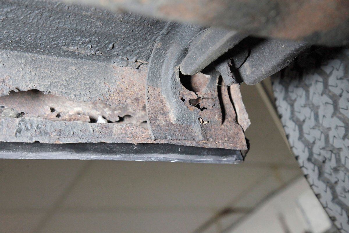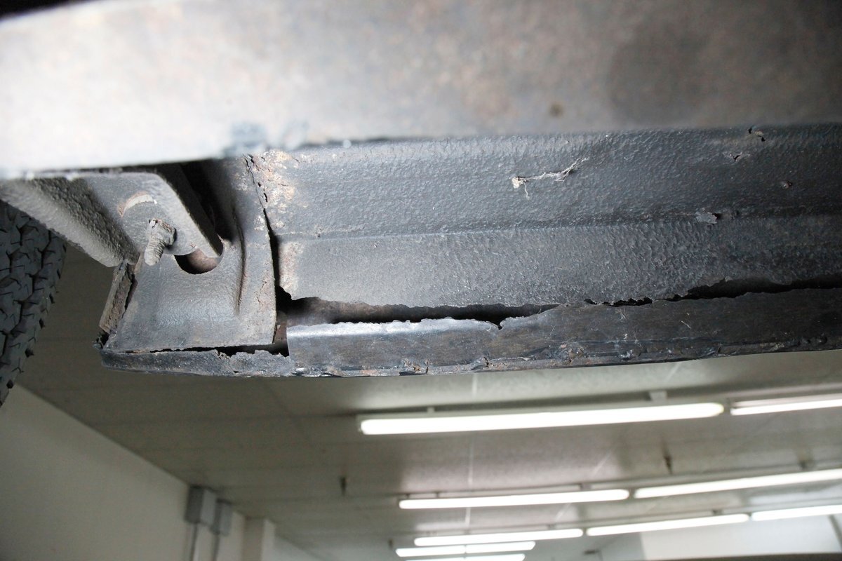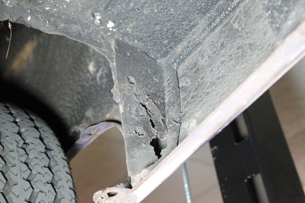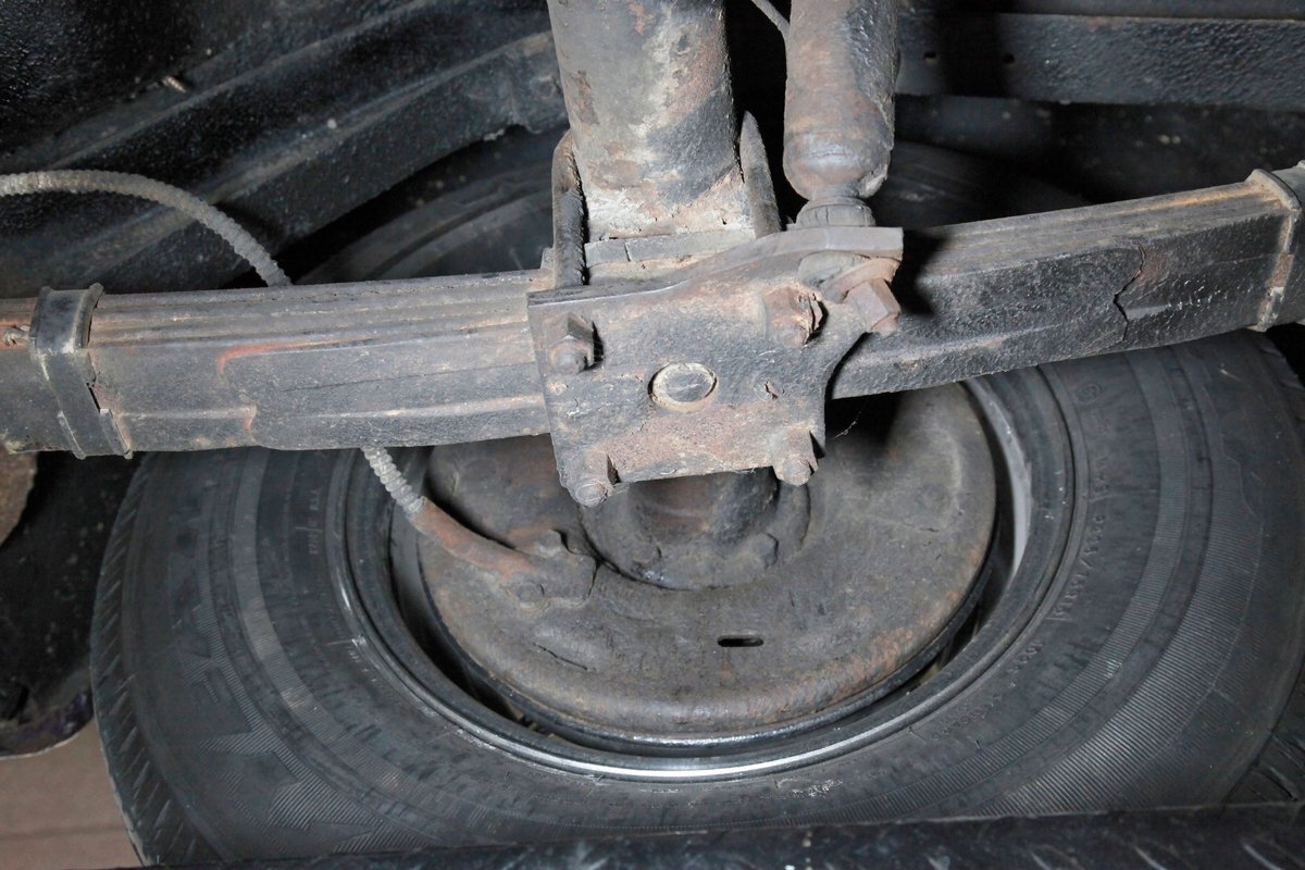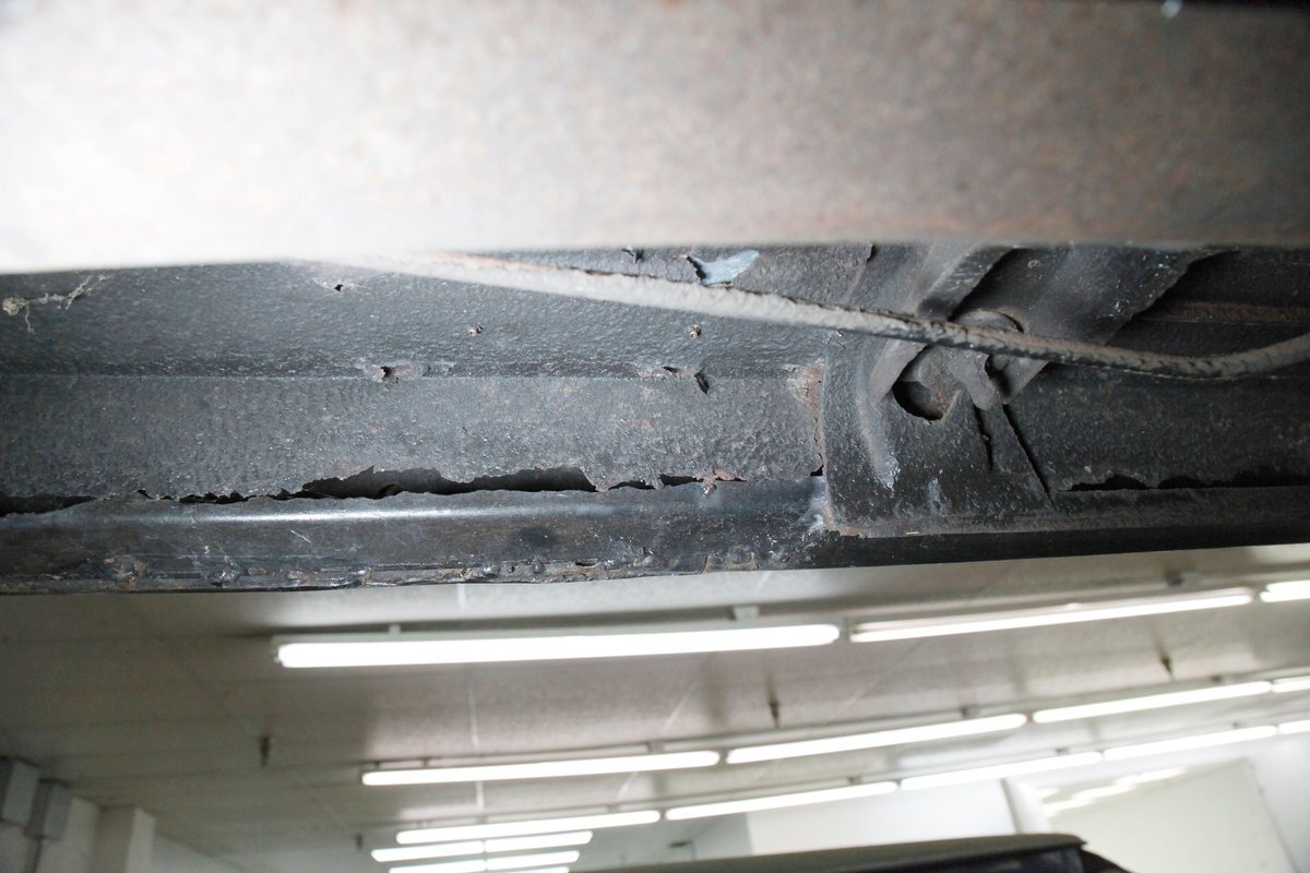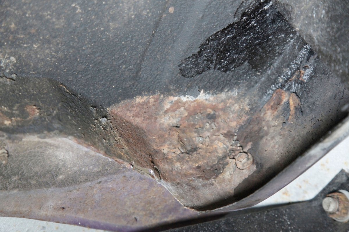 With some faded black but totally rust free surfaces the X frame undercarriage is looking just great and solid save for invasive rust appearing on the inner rockers and trunk drop offs. Independent coil springs for the front and leaf springs for the rear suspension and drum brakes all around are seen. Single exhaust with a glasspack muffler is in charge of the exhale.