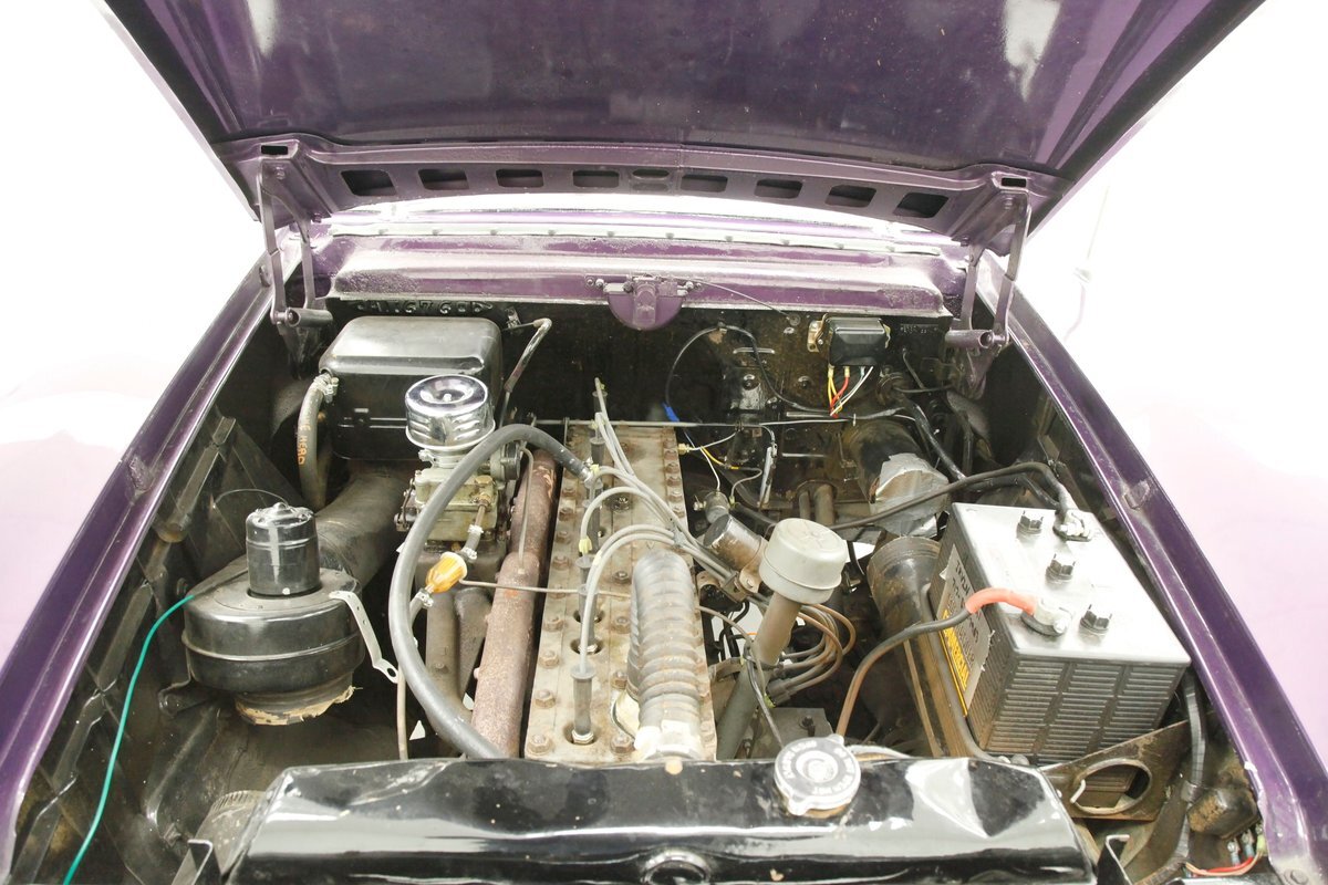 Under the hood is an original 288ci L-headed inline 8-cylinder engine. There is a slight bit of rust on the top of the flathead and overall the bay shows with a warming and pleasant patina. Also on is a single 2-barrel carburetor, and a 2-speed Ultramatic, (man oh man I love the groovy names the auto manufacturers used), automatic transmission. 3.90 gears spec out the rear axle.