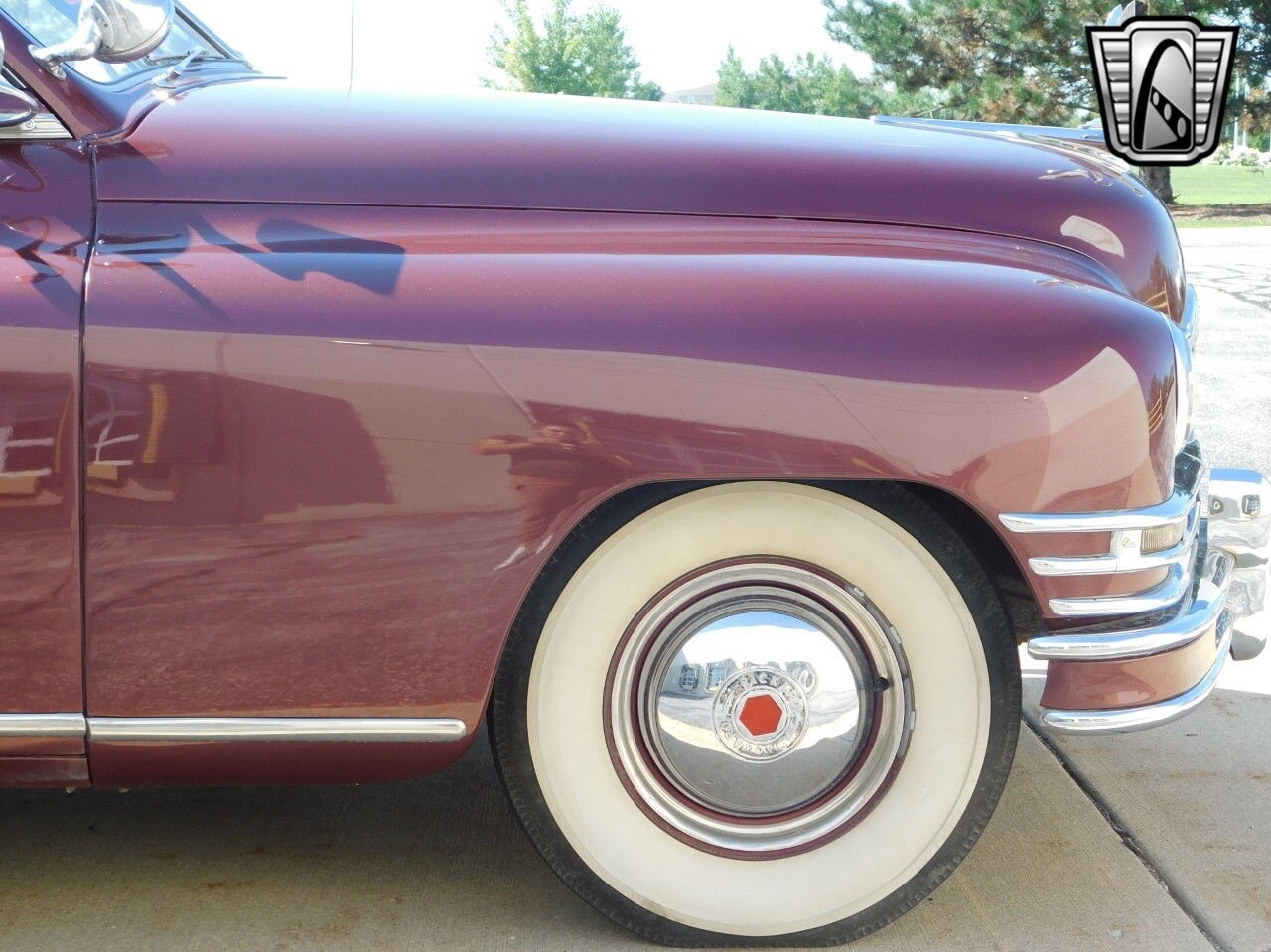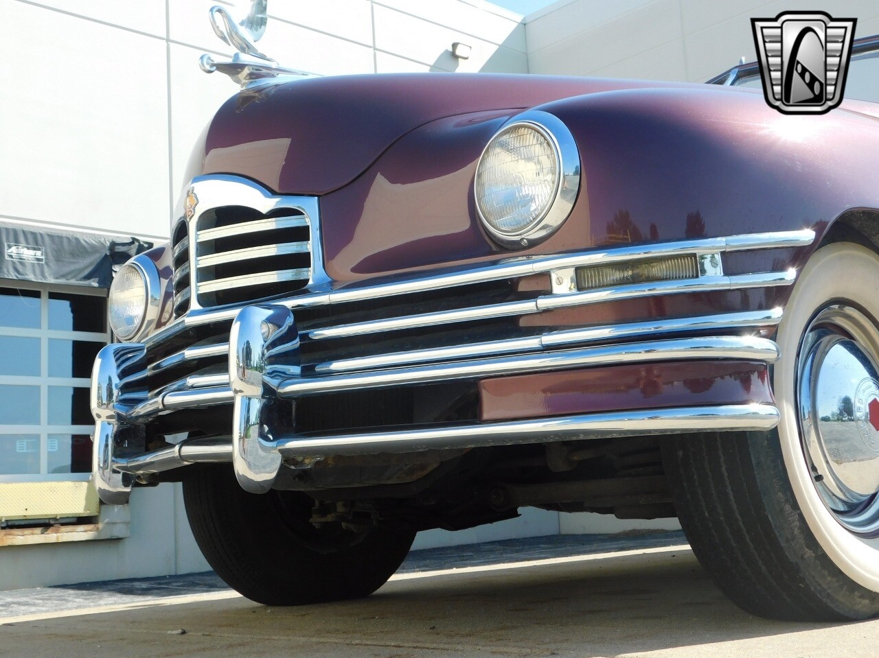 Gateway Classic Cars is very proud to present this rare 1948 Packard Super 8 Victoria Convertible. A true American Luxury Car, This Elegant cruiser boasts the 327 in line 8 cyl and 3 speed with overdrive transmission. For its first new postwar models of 1948's the 22 Series, Packard freshened its design with a new lower body structure, creating an aerodynamic flowing-fender effect. In a booming postwar market that loved the big oversized cars Packard was the top of the top. The exterior is Matador Maroon the paint has been freshened up some but the interior is the original Beige.