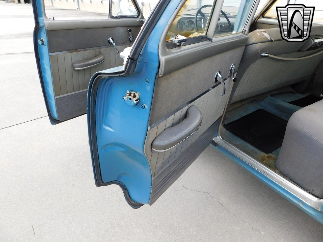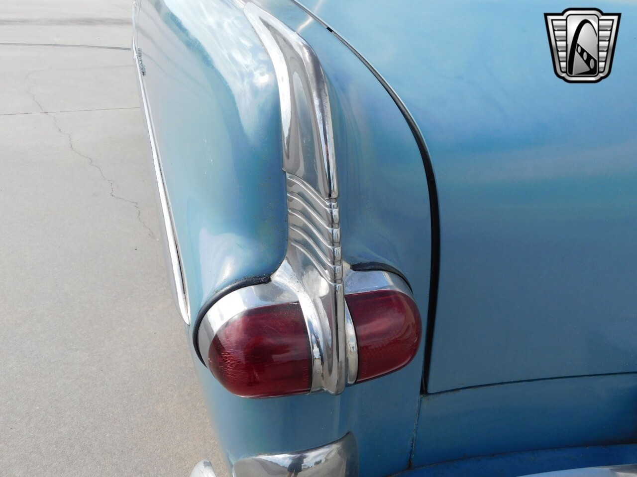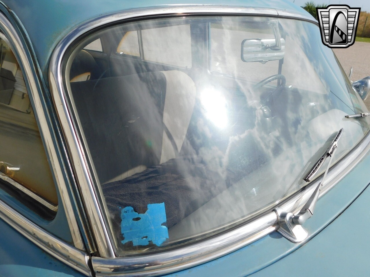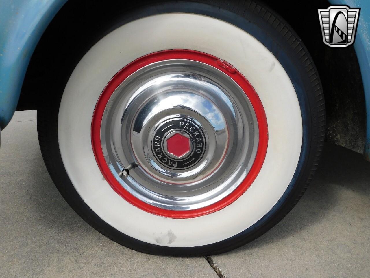 The 300 series Packard represented the upper mid-range Packard model and provided better appointments than the Packard 200 or the Packard 250 models. Power for the car comes from Packard's venerable Super Eight engine, the 327-cubic-inch "Thunderbolt" inline eight. this 300 Packard is equipped with Ultramatic automatic transmission. The drivetrain is reported to have over 100k miles and still runs strong. Recent repairs include a new master cylinder, rebuilt starter, and electric fuel pump. the body has minor surface rust but no obvious signs of rot. The blue paint still has a nice patina, and the factory hubcaps look classy wrapped in fat white walls. The chrome is faded but all of the trim is there and can easily be restored. This 51 Packard 300 sedan is a neat "tinker while you drive" survivor, or candidate for easy restoration. Only 15k were made in 1951. These aren't often seen. Add this vintage sedan to your collection today..