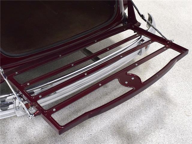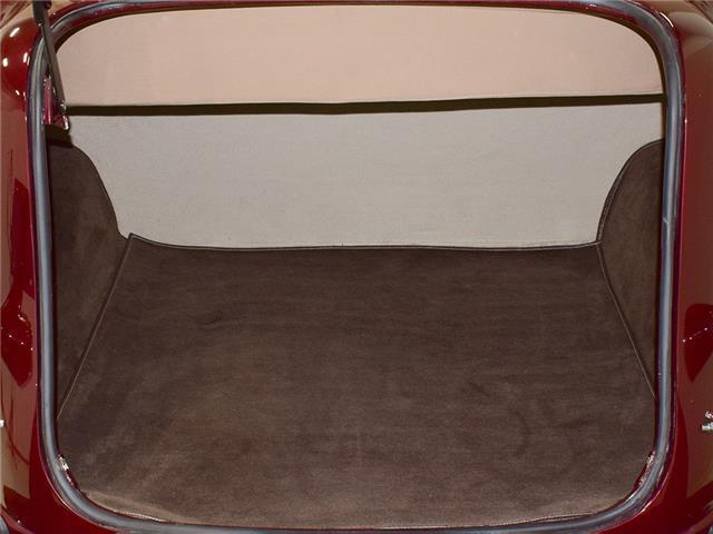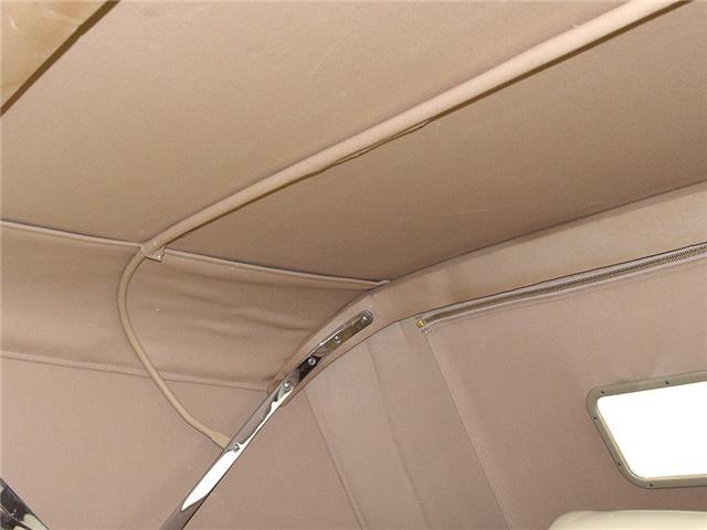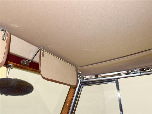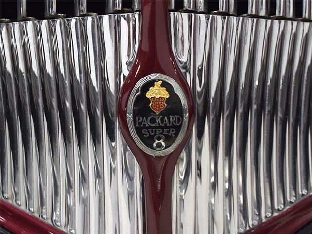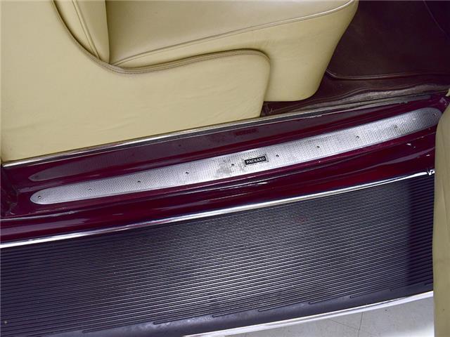 The interior wears eight hides of glove soft light tan leather that were supplied by a previous owner, with the bill for just the labor coming in at over $9000. The gauges were all rebuilt and are operational today. Dark brown carpets provide some contrast and the burled woodgraining on the dash and garnish moldings is beautifully done. The newly cast steering wheel is correct with the only real demerit being some tarnishing on the chrome horn button (which has been clear-coated so it cannot be polished without first being stripped). Turn signals were added during the most recent service at D&D. The upholstery is in excellent condition and has the kind of sumptuous luxury for which Packard was justifiably famous—this certainly feels like a very expensive, high-end car from behind the wheel. Thanks to the massive wheelbase, rear seat accommodations are spacious and it includes a storage compartment built into the back of the front seat back. The top fits beautifully and a new wooden top bow was fabricated by D&D to replace one that had been damaged in the past. The trunk is fully upholstered to match and there are no signs of corrosion issues underneath the carpet. This car obviously lived in a warm, dry climate most of its life.