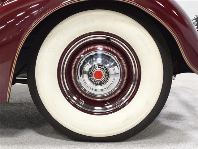 The 320 cubic inch Packard straight-8 really needs no introduction. Impeccably smooth and torquey, it moved some of the greatest sheetmetal of the 1930s. This engine was built sometime prior to the paint and upholstery work and was freshened by D&D with a head-off service and new, correct Packard Green engine enamel. New acorn nuts were installed on the head, the carburetor was rebuilt, the water pump, generator and starter were rebuilt and detailed, and there’s a new wiring harness from Potomac Packard. The car starts easily, idles smoothly once it’s warmed up, and pulls itself down the road with the kind of effortless ease you’d expect, although it remains a very large automobile. It is content to cruise at 50-55 MPH, making it an excellent tour vehicle, and a new exhaust system gives it just the right hushed burble at idle. The 3-speed manual transmission offers smooth shifts and easy clutch action with no chatter and the rebuilt brakes are powerful. Steering is light, although the bias-ply tires make it wander just a bit on rutted surfaces, which is typical. There’s also an NOS gas tank in back and six 7.50-16 Firestone wide whitewall tires, as original.