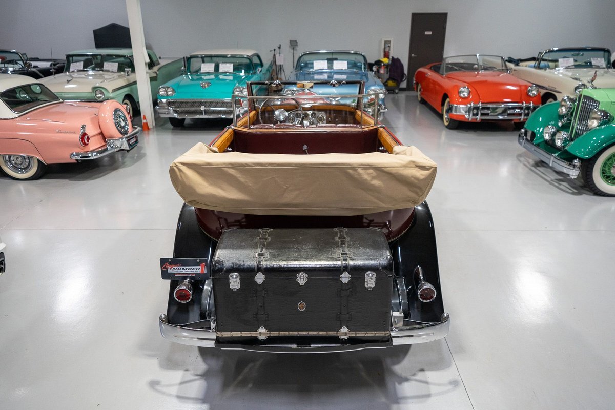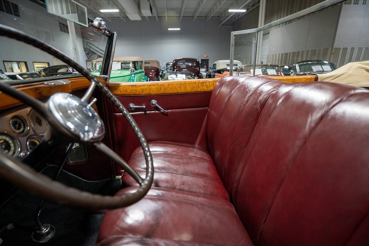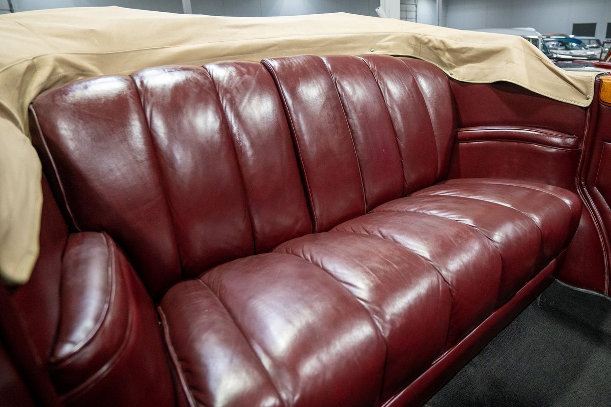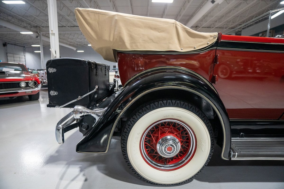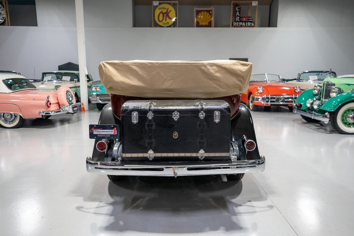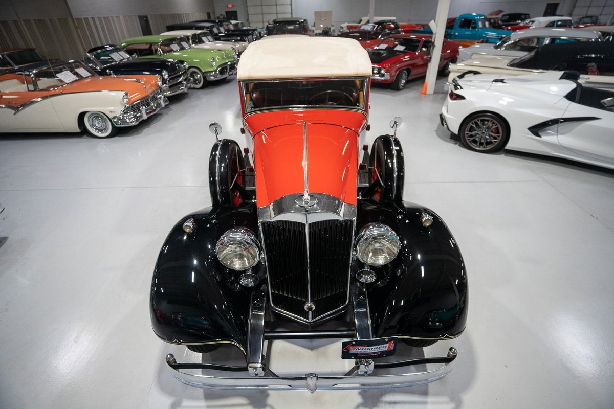 This 1934 Packard Eight Convertible Sedan is the beneficiary of an older restoration and is ready to be driven all summer long! When the first Packard was completed on November 6, 1899, the goal was to create a better automobile than a Winton motor carriage. Just a few short years later, the Packard Motor Company's slogan became "Ask the man who owns one" which would become the company famous tagline in the decades that followed. As the years went on, Packard became synonymous with luxury and quality, and the company cemented itself atop America's automotive hierarchy, alongside the likes of Cadillac, Marmon, Stutz, Auburn-Cord-Duesenberg, Peerless, and Pierce-Arrow. When the stock market crashed in the fall of 1929, the demand for luxury cars crashed too putting Peerless and Marmon out of business, Stutz, Pierce-Arrow, and Auburn-Cord-Duesenberg on the brink of failure, and immense financial pressure on those who survived, including Packard. By 1933, the market began to recover and Packard turned its first profit since the start of the Great Depression. Due to its success in '33, Packard's leadership predicted, albeit incorrectly, that the worst was behind them and the company released 55 different body styles in its 11th Series cars for the 1934 model year. Ultimately, the Packard Motor Company's sales and production figures fell in 1934 to lows not seen since the early Twenties. Nonetheless, the 1934 Packards are widely considered some of the most elegantly designed cars ever produced by the independent American automaker and therefore have been highly collectible for decades. In fact, the Classic Car Club of America considers the 1934 Packard Eight as a "True Classic" and they can participate in CCCA events. Design changes in 1934 included longer fenders, redesigned slotted bumpers, and a relocated gas filler cap located behind left rear taillight assembly. Additionally, the tilt windshield from 1933 was replaced with a fixed windshield with an angled vent wing in 1934. In total, only 5,120 Packard Eights were produced in 1934 which makes this Convertible Sedan an especially rare automobile. This particular 1934 Packard Eight comes to us from a prominent Texas collector who owned this car and oversaw its restoration a number of years ago. Under the hood on this '34 Packard Convertible is the famous Packard 320 Cubic Inch L-Head Inline 8 cylinder engine paired with a Stromberg single 2 barrel carburetor that was said to have created 145 horsepower when new. The 320 Straight 8 is backed by a 3 speed manual transmission that is shifted using a floor mounted shifter. This 1934 Packard Convertible rides on a set of wide whitewall bias-ply tires on wire wheels with Packard Eight cloisonne hubcaps that give this True Classic a truly iconic look. Braking is provided by vacuum-assisted mechanical brakes in all four corners which was quite the novelty back in 1934. A pair of side-mounted spare tires are tucked beneath decorative sidemount covers with side-view mirrors which was one of the few options available on the 11th Series Packards. Sitting atop the rear mounted luggage rack is a period-correct trunk so that you can travel with all of your belongings in style. The manually operated beige cloth convertible top is in wonderful condition and is tucked under a matching boot cover when down. All four crank up windows, and the crank up glass divider window, are in excellent condition and work great. The body on this 1934 Packard Convertible Sedan has been refinished in a beautiful period correct tri-tone paint scheme consisting of Ascot Maroon with a Black beltline with Tan accent striping and the fenders were refinished in Black with matching Tan striping. The interior on this 1934 Packard Eight Convertible is gorgeous! The front and rear bench seats have been reupholstered in Burgundy tufted leather that gives this Convertible Sedan a truly luxurious look and feel. The matching burgundy door panels with burl woodgrain accents, woodgrain dash, and steering wheel are all in wonderful shape as well and appear to be in their stock configuration. The dash is equipped with a 120 MPH speedometer, oil pressure gauge, temperature gauge, amperes gauge, gasoline gauge, clock, cigar lighter, and controls for the sensitivity control on the vacuum-assisted brake system. Whether you're buying your first CCCA True Classic or you're adding to your existing collection, this 1934 Packard Eight Convertible Sedan would make an excellent choice. Give us a call today at763-428-7337!