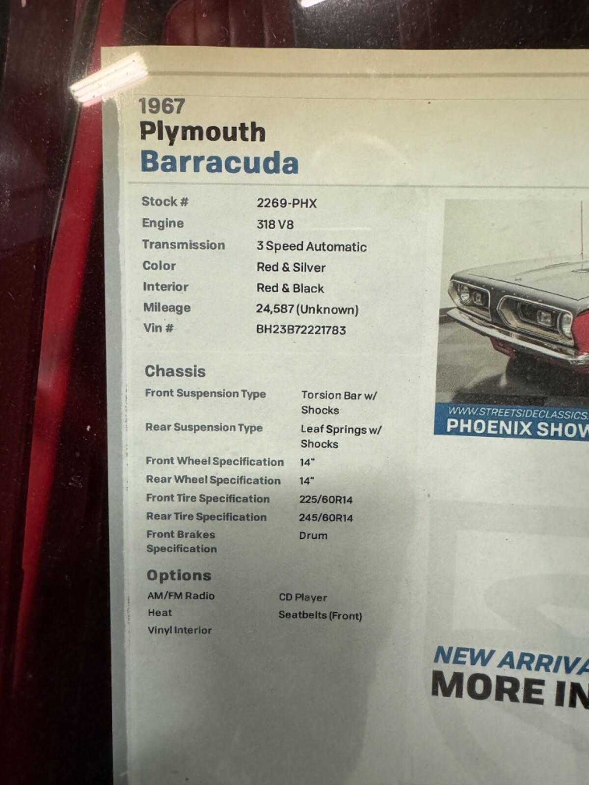 I purchased this 1967 Cuda a few years ago with the intent to resto mod the car. I realized I do not have the time to get to this project. It has been sitting in my climate controlled garage for almost 4 years without moving. It ran when I parked it brakes were very weak. No rust good clean car. Currently has 318 with MSD ignition.