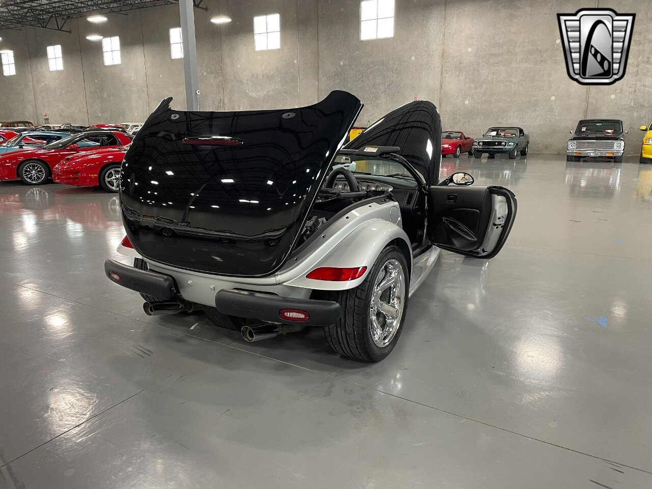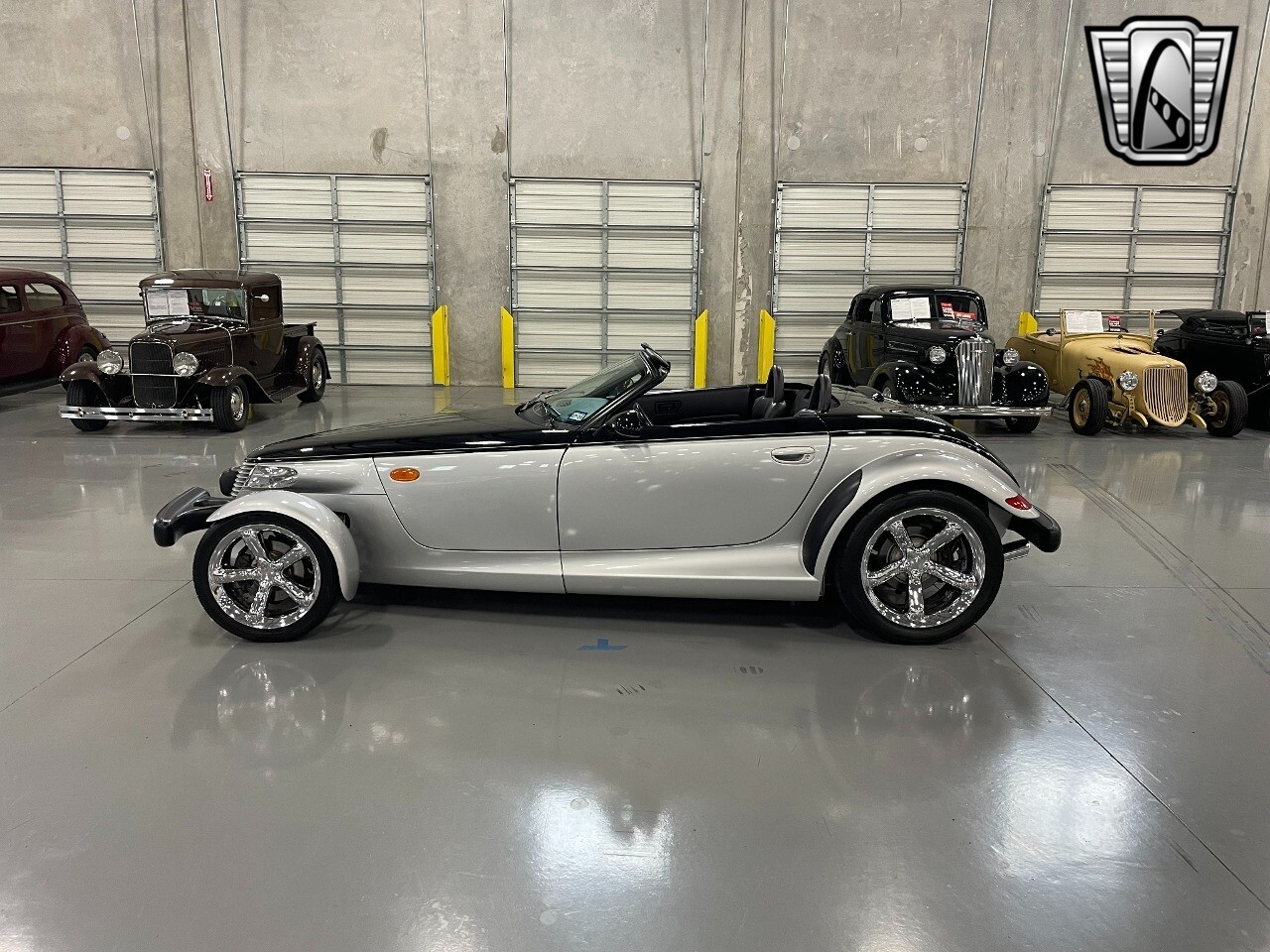 Gateway Classic Cars of San Antonio/ Austin is proud to present this Retro inspired 2000 Plymouth Prowler. When released, this car was a shock to established styling rules of the 90s. Bob Lutz was head of Chrysler at the time and the Prowler was a shout out to the cool sleek Boyd Coddington style Hot Rods of the late 80s into the 90s. Open cycle fenders and exposed font wheels bring home the look with the long hood and short deck proportions exaggerating the traditional 32 Ford look. It's not just about the looks, this Prowler is powered by Chrysler's tried and true 253 HP 3.5L V6, backed by a rear mounted, 4-speed automatic transmission. The interior of this Prowler is just as impressive as its exterior. Step inside to find a luxurious black leather interior that offers comfort and sophistication. The power seats can be adjusted for optimal comfort, while the power windows and power locks add a level of convenience to your journey. This Prowler is also equipped with a range of features designed to enhance your driving experience. Stay cool in the summer months with the air conditioning and listen to your favorite tunes with the AM/FM radio, CD player, or even a throwback cassette tape player. The manual convertible top can be lowered for an exhilarating open-air experience. It is also fitted with driver and passenger airbags, seatbelts, power brakes, and a rear defogger for enhanced visibility. The cruise control feature allows for relaxed, long-distance driving, and the tilt steering wheel can be adjusted for your comfort. If cruising in style with all eyes on you is your idea of a great time, this 2000 Plymouth Prowler is the car for you!.