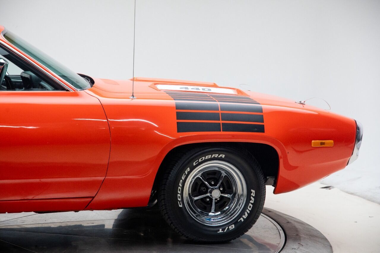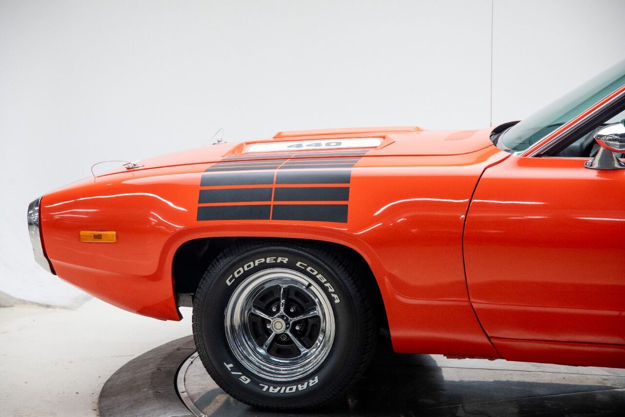 1972 Plymouth Satellite with RoadRunner trim 440 engine, Automatic transmission, Power steering Fans and aficionados of vintage Plymouths, this is a car we rarely see. We love the fuselage styling of the 72 model that gave the Road Runner a big leg-up on the competition, and the swoopy styling of this super-clean example definitely looks the part of a Mopar muscle car. This 1972 Plymouth Satellite with Roadrunner trim was a California car and has a fresh rebuilt 440 V8 4-barrel engine NOM, with less than 200 miles, A727 Torqueflite transmission with B&M floor shifter, and stock suspension, the legendary blue collar muscle car. That shiny Hemi Orange paint is in very nice shape and with the cascading Black stripes , chrome magnum 500 wheels , rear spoiler , hood pins/ lanyards, dual exhaust tips, gives us that sporty muscle car look. The wrap-around chrome bumpers that circle the front end and taillights were a defining feature, as is the blacked-out mesh front grille, and those Roadrunner badges/decals are in remarkable shape, too. Of course, it has the distinctive purple Beep-Beep horn! The interior is brand new correct pleated vinyl bench seats, the flanking door panels, new plush carpets, taut headliner, and unblemished dash are all in excellent condition showing off that pure 1970s look. A Stock steering wheel frames the original gauges ahead of it that are inside a woodgrain bezel, an aftermarket Retrosound stereo is replacing the original radio, aftermarket under dash gauges, and the mileage shows 50,638 is unknown. The big block runs great, with plenty of horsepower on tap and a healthy torque curve, with all dyno reading of 400 horsepower and 500 lbs of torque with the receipts totaling over $7000. All this that helps it get-up-and-go in a flash. An 4-barrel carb sits on top of an aluminum edelbrock intake, aided by the cold, dense air its fed through the big chrome Edelbrock air cleaner, chrome valve covers and MSD ignition wires while an aluminum radiator, modern battery. The power plant sounds great thanks to a brand new exhaust system. Factory power steering, brand new radial tires mean this Road Runner is a blast to drive, and the undercarriage is incredibly solid and clean. Call today! As always, we will consider all types of trades, and transportation is available. Why buy from us? In business since 1980, we are one of the oldest and largest midwest dealers who specializes in collector cars, modern muscle cars and imports. We normally have 50-100 collector cars in stock. All of our cars are handpicked purchases, not consignments, that have been evaluated for quality, value and checked over in our shop to assure drivability. These cars are available to look over, test drive and evaluate at our location, by appointment only, due to the extensive amount of travel it takes to find these vehicles. People frequently buy collector cars at auctions and have no idea what they are getting, often regretting the purchase due to issues of condition, driveability, paperwork, etc . We have 40+ year's experience in the automotive industry and can guide our customers through the complete purchase experience including shipping if needed. We will happily consider all types of trades including multiple trades of different types if necessary. We also will purchase restored cars and collections of cars. No projects wanted. Please do not hesitate to contact us with any questions regarding a vehicle we have for sale or a vehicle you have for sale.319-462-1129