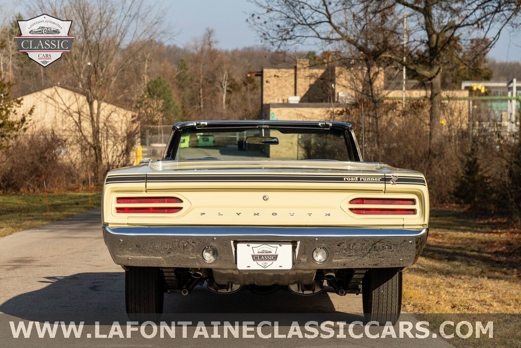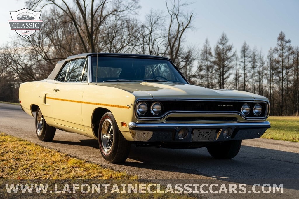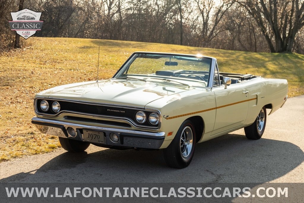 Your looking at an absolutely wonderful rotisserie restored 1970 Plymouth Roadrunner convertible. Only 429 Roadrunner convertibles were produced in 1970 with the 383 V8 and 3-speed automatic transmission. This particular example was built November 3rd, 1969 in St. Louis, received a rotisserie restoration, and has the aforementioned 383/335hp 4-barrel V8 engine mated to the A727 3-speed automatic transmission. This Roadrunner is also equipped with a (X9) Black bench seat, (A01) light package, power steering, 11' heavy-duty power drum brakes, dual exhaust, (N88) cruise control, Music Master AM radio, (V3X) black power convertible top, heavy-duty rally suspension, heavy-duty shocks, front sway bar, and more. This vehicle is a two-owner car that spent ifs entire life in DuBois, Pennsylvania. In December of 2019, this car's engine was completely disassembled and rebuilt professionally from the ground up with receipts included. Two original build sheets accompany the vehicle, along with an original 1973 registration, and engine receipts.
