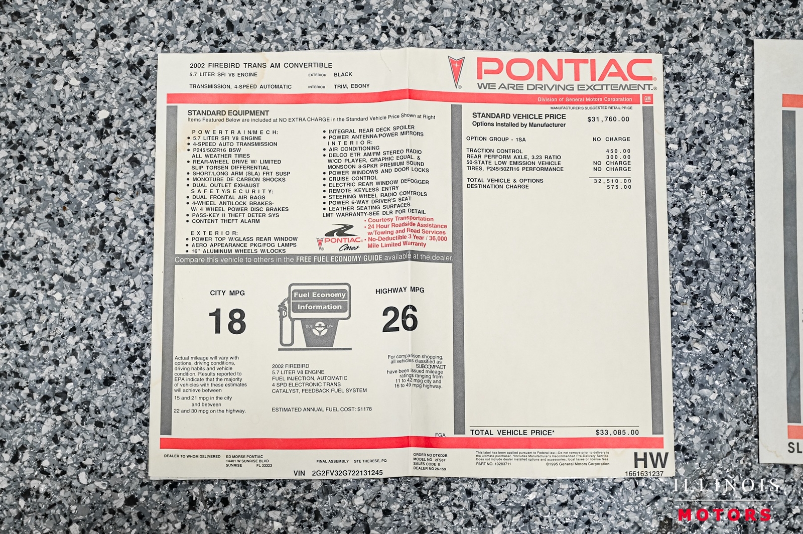 2002 Pontiac Firebird Trans Am Firehawk Convertible