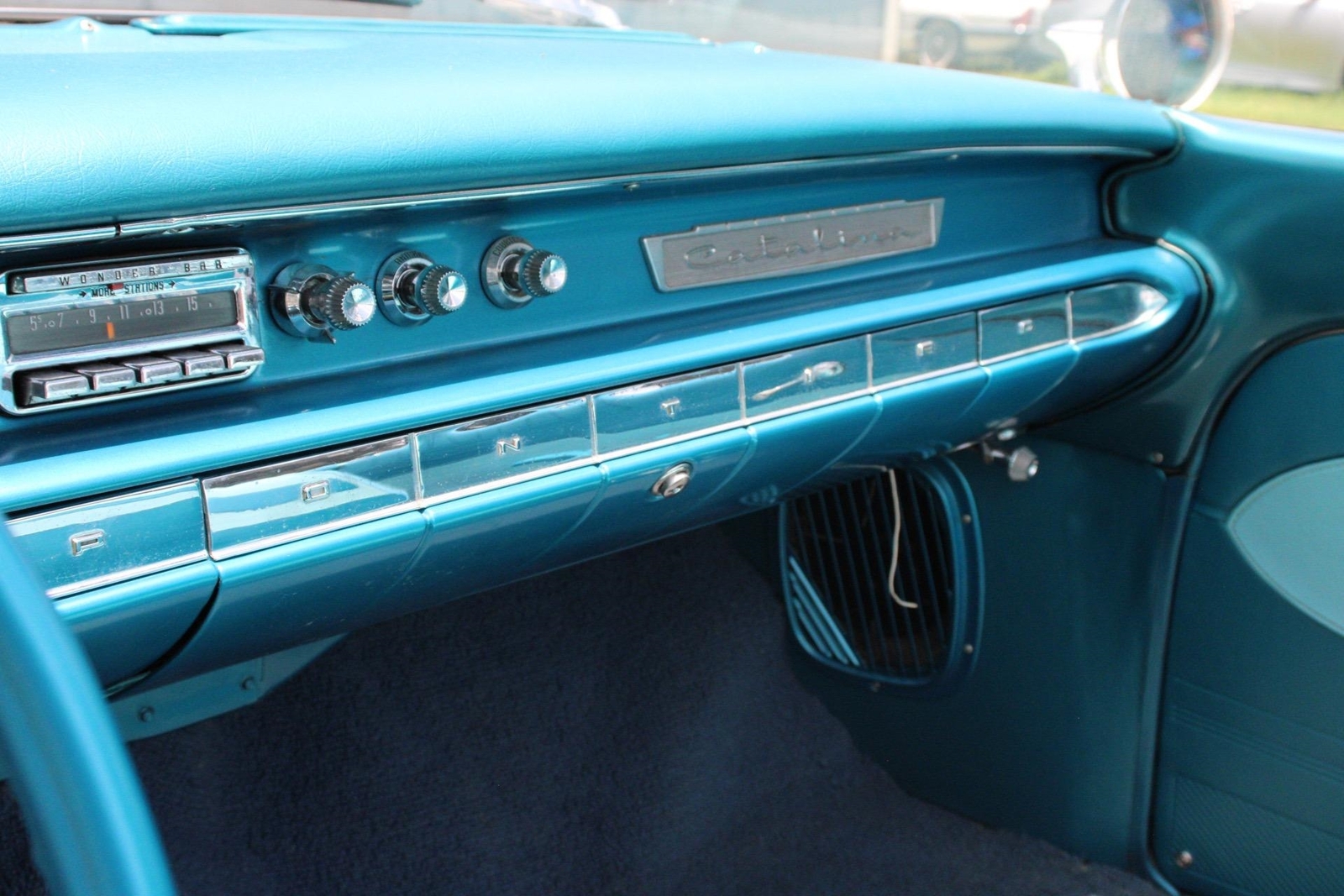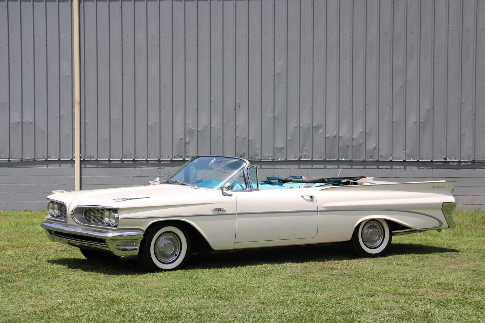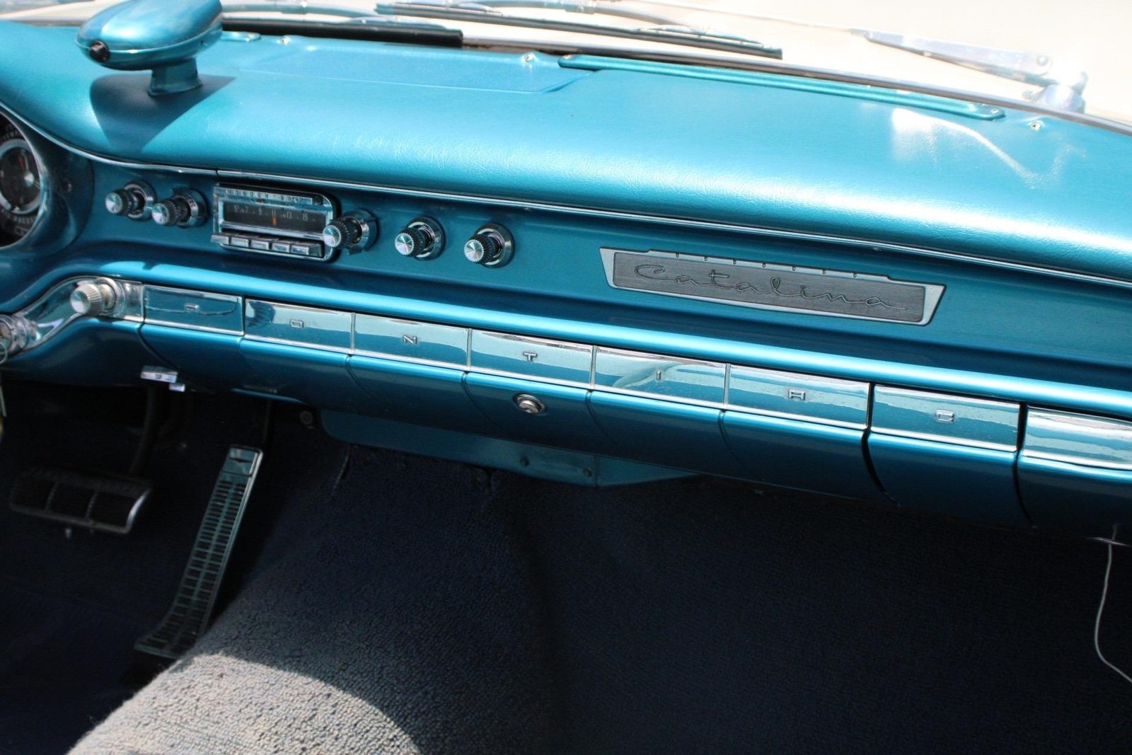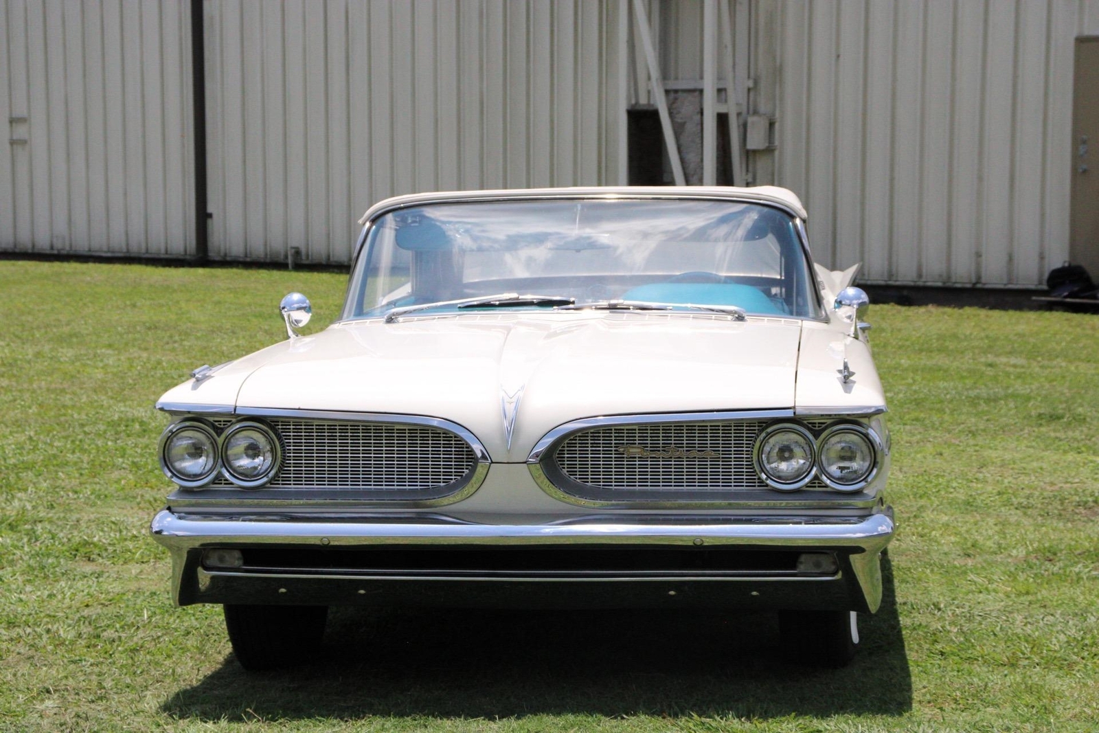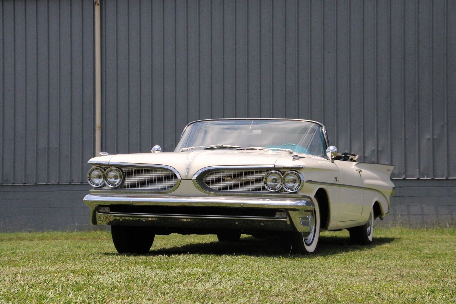 1959 Pontiac Catalina Convertible. Manufactured in 59 and 60. The Catalina, though it was priced and trimmed below the Impala due to GM's overlapping price structure formula. Catalinas had more standard amenities than Chevrolet models and included a larger and more powerful V8 engine. Also a much better automatic transmission than their Chevrolet counterparts - the four-speed Hydra-Matic - versus Chevy's two-speed Powerglide. The Catalina featured a split grill, which was one of Pontiacs many “firsts” that was carried on though many generations, including the GTO. The Catalina was Pontiac's most popular model and the base platform for many iconic, popular cars - Pontiac Grand Prix, Pontiac 2+2, Pontiac Ventura, and the Pontiac Safari station wagon. The Pontiac Tempest was introduced in 1964, lessons learned from the Catalina & Grand Prix led to the introduction of the Pontiac GTO, to include the 389 cu in (6.4 L) Pontiac V8. Though the basic Catalina started out with a full rubber mat, it could be ordered with full carpeting, glovebox and trunk lights; dual front ashtrays, cigar lighter, glove compartment snack bar (two cup indents on the glovebox door that could be opened for use at drive-in restaurants) were standard. Body shape wise, Twin tailfins in a V, like some jet fighter planes, two on each side, were new and only in 1959. Styling highlights include thin-pillar rooflines and greater use of glass for increased visibility. Paint & Body. Nice C code Cameo Ivory paint covers good sheet metal. Great lines, gaps and body fit. Very nice chrome rear bumper curves up on the ends and makes a down curving trim piece creating beautiful symmetry. In the end of each meeting of the two pieces is in elliptical brake lamp with a chrome bezel. The gas tank filler cap was offset to the passenger side of the car to allow the trunk lock to be centered. Centered across the back, chrome emblem letters spelling “Pontiac.” This side trim is a little minimalistic but the front bumper design makes up for it. The front bumper is a two piece, the top part wraps around the fenders and angles down, the lower piece curves upward creating an air gap and pleasing white space. The grill is a rectangular open rectangular grid. Classy bezels surround the dual headlights. Sitting atop each fender is a bullet with a long tail piece that tapers into a poly. Your eye naturally follows this to the Beautiful Chrome surround on the windshield. Interior is stunning Morrokide vinyl upholstery - Turquoise and sky blue 2 Tone. The dash pad is perfectly installed stretched vinyl, there is not a ripple or a crease all the way across. “Immaculate pride of work & craftsmanship is completely obvious.” Three big round gauges are centered behind a wrapped steering wheel. Heater / defroster work. Full wheel covers, deluxe steering wheel, chrome pedal trim plates - Which this Car has. The 1959 Pontiacs split grille, came about by accident when the styling studio was exploring grille design. Experimentally, a design for a conventional, full width, oval grille, containing horizontal quad headlights, was cut in two and the halves transposed. With the lights remaining at the extremities, this gave the split center, open ended look of the '59 Catalina. Along with the wider body came a 5 wider chassis in which the wheels were moved out towards the fenders. This not only improved the appearance of the car but led to improvements in ride and handling - spawning the term wide track ride and handling which Pontiac would use in its promotional efforts for many years to come. Catalinas came standard with a 235 horsepower (175 kW) version of the 389 with two-barrel carburetor and 8.6 to 1 compression mated to the three-speed manual transmission. Available as a no-cost option with the Hydramatic transmission was the 215-horsepower 389 (dubbed the Economy V8) with 8.6 to 1 compression ratio which burned cheaper regular gasoline, instead of the premium and super-premium fuels required for the high-compression engines, and capable of achieving more than 20 MPG on the highway. Optionally available at extra cost were higher-power versions of the 389 V8 with four-barrel carburetion rated at 283 horsepower (211 kW) with manual gearbox or 303 hp with Hydramatic, a 4-barrel carburetor version with a horsepower rating of 318 hp, or Tri-Power options with triple two-barrel carburetors and 330 hp or 345 hp (257 kW). Another fine example of when “cars were cars!” They had shapes and they had character. They were not concerned about being streamlined other than the design aspect not as a wind tunnel airflow gas economy issue. They, including this beauty are true works of Art. The car looks runs and handles excellent. While we do our best to provide the highest quality muscle cars with an honest and reliable description and realize the importance of transparency when selling vehicles. That being said, we have not built, modified, changed or personally owned this vehicle. Whether this vehicle is consigned or owned by Past & Present Motor Cars we do not know the vehicles complete history since new. We want to be clear and try to answer any questions our customers might have prior to purchasing. Additionally, we not only welcome but we encourage 3rd party independent inspections. Please inquire prior to purchase to make sure the advertised vehicle has not already been sold. We list our vehicles on multiple websites and a vehicle can sell at any time. If a customer chooses to purchase sight unseen (many of our customers choose this option) the customer accepts the vehicle AS IS and WHERE IS and understands we cannot address concerns after purchase. For this reason, it's important all concerns are addressed prior to purchase. We make every effort to present accurate and reliable information, but use of this information is voluntary, and should only be deemed reliable after an independent review of its accuracy, completeness, and timeliness. It is the s