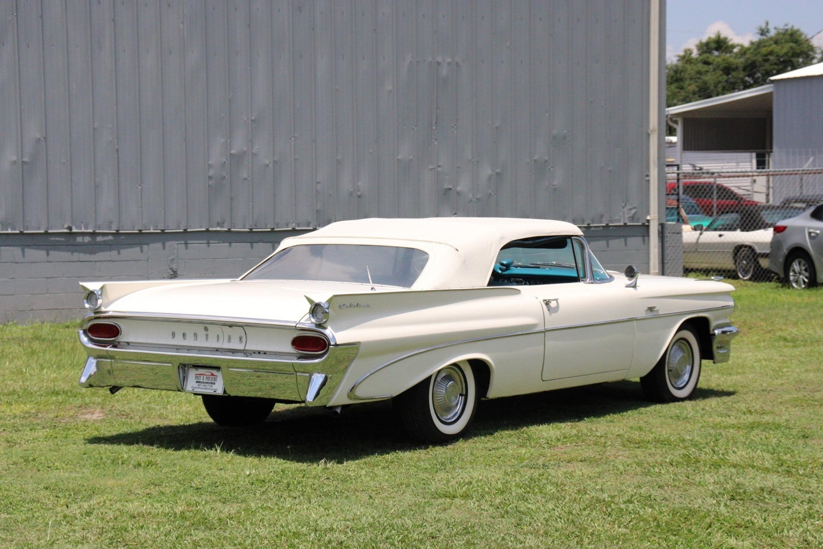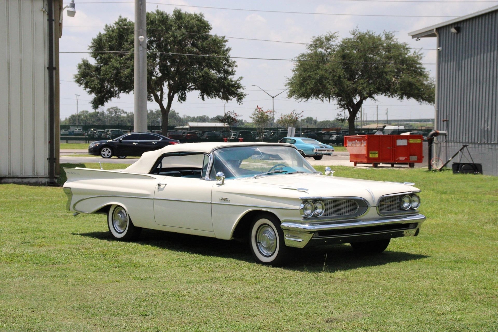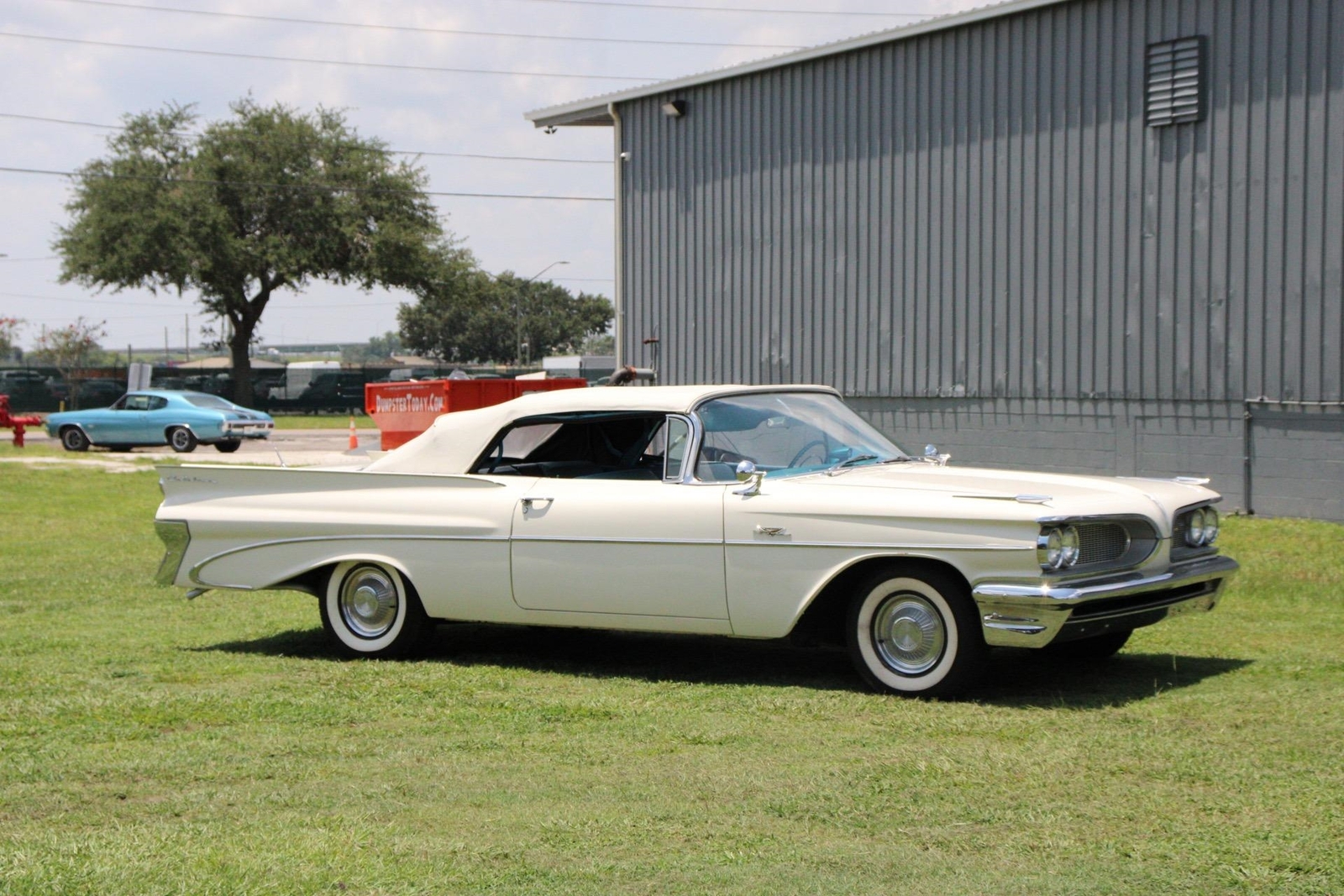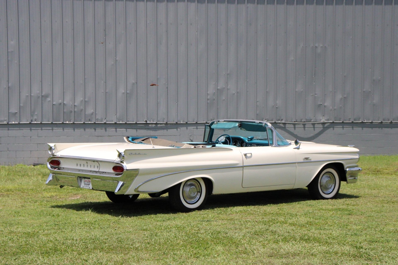 1959 Pontiac Catalina Convertible. Manufactured in 59 and 60. The Catalina, though it was priced and trimmed below the Impala due to GM's overlapping price structure formula. Catalinas had more standard amenities than Chevrolet models and included a larger and more powerful V8 engine. Also a much better automatic transmission than their Chevrolet counterparts - the four-speed Hydra-Matic - versus Chevy's two-speed Powerglide. The Catalina featured a split grill, which was one of Pontiacs many “firsts” that was carried on though many generations, including the GTO. The Catalina was Pontiac's most popular model and the base platform for many iconic, popular cars - Pontiac Grand Prix, Pontiac 2+2, Pontiac Ventura, and the Pontiac Safari station wagon. The Pontiac Tempest was introduced in 1964, lessons learned from the Catalina & Grand Prix led to the introduction of the Pontiac GTO, to include the 389 cu in (6.4 L) Pontiac V8. Though the basic Catalina started out with a full rubber mat, it could be ordered with full carpeting, glovebox and trunk lights; dual front ashtrays, cigar lighter, glove compartment snack bar (two cup indents on the glovebox door that could be opened for use at drive-in restaurants) were standard. Body shape wise, Twin tailfins in a V, like some jet fighter planes, two on each side, were new and only in 1959. Styling highlights include thin-pillar rooflines and greater use of glass for increased visibility. Paint & Body. Nice C code Cameo Ivory paint covers good sheet metal. Great lines, gaps and body fit. Very nice chrome rear bumper curves up on the ends and makes a down curving trim piece creating beautiful symmetry. In the end of each meeting of the two pieces is in elliptical brake lamp with a chrome bezel. The gas tank filler cap was offset to the passenger side of the car to allow the trunk lock to be centered. Centered across the back, chrome emblem letters spelling “Pontiac.” This side trim is a little minimalistic but the front bumper design makes up for it. The front bumper is a two piece, the top part wraps around the fenders and angles down, the lower piece curves upward creating an air gap and pleasing white space. The grill is a rectangular open rectangular grid. Classy bezels surround the dual headlights. Sitting atop each fender is a bullet with a long tail piece that tapers into a poly. Your eye naturally follows this to the Beautiful Chrome surround on the windshield. Interior is stunning Morrokide vinyl upholstery - Turquoise and sky blue 2 Tone. The dash pad is perfectly installed stretched vinyl, there is not a ripple or a crease all the way across. “Immaculate pride of work & craftsmanship is completely obvious.” Three big round gauges are centered behind a wrapped steering wheel. Heater / defroster work. Full wheel covers, deluxe steering wheel, chrome pedal trim plates - Which this Car has. The 1959 Pontiacs split grille, came about by accident when the styling studio was exploring grille design. Experimentally, a design for a conventional, full width, oval grille, containing horizontal quad headlights, was cut in two and the halves transposed. With the lights remaining at the extremities, this gave the split center, open ended look of the '59 Catalina. Along with the wider body came a 5 wider chassis in which the wheels were moved out towards the fenders. This not only improved the appearance of the car but led to improvements in ride and handling - spawning the term wide track ride and handling which Pontiac would use in its promotional efforts for many years to come. Catalinas came standard with a 235 horsepower (175 kW) version of the 389 with two-barrel carburetor and 8.6 to 1 compression mated to the three-speed manual transmission. Available as a no-cost option with the Hydramatic transmission was the 215-horsepower 389 (dubbed the Economy V8) with 8.6 to 1 compression ratio which burned cheaper regular gasoline, instead of the premium and super-premium fuels required for the high-compression engines, and capable of achieving more than 20 MPG on the highway. Optionally available at extra cost were higher-power versions of the 389 V8 with four-barrel carburetion rated at 283 horsepower (211 kW) with manual gearbox or 303 hp with Hydramatic, a 4-barrel carburetor version with a horsepower rating of 318 hp, or Tri-Power options with triple two-barrel carburetors and 330 hp or 345 hp (257 kW). Another fine example of when “cars were cars!” They had shapes and they had character. They were not concerned about being streamlined other than the design aspect not as a wind tunnel airflow gas economy issue. They, including this beauty are true works of Art. The car looks runs and handles excellent. While we do our best to provide the highest quality muscle cars with an honest and reliable description and realize the importance of transparency when selling vehicles. That being said, we have not built, modified, changed or personally owned this vehicle. Whether this vehicle is consigned or owned by Past & Present Motor Cars we do not know the vehicles complete history since new. We want to be clear and try to answer any questions our customers might have prior to purchasing. Additionally, we not only welcome but we encourage 3rd party independent inspections. Please inquire prior to purchase to make sure the advertised vehicle has not already been sold. We list our vehicles on multiple websites and a vehicle can sell at any time. If a customer chooses to purchase sight unseen (many of our customers choose this option) the customer accepts the vehicle AS IS and WHERE IS and understands we cannot address concerns after purchase. For this reason, it's important all concerns are addressed prior to purchase. We make every effort to present accurate and reliable information, but use of this information is voluntary, and should only be deemed reliable after an independent review of its accuracy, completeness, and timeliness. It is the s