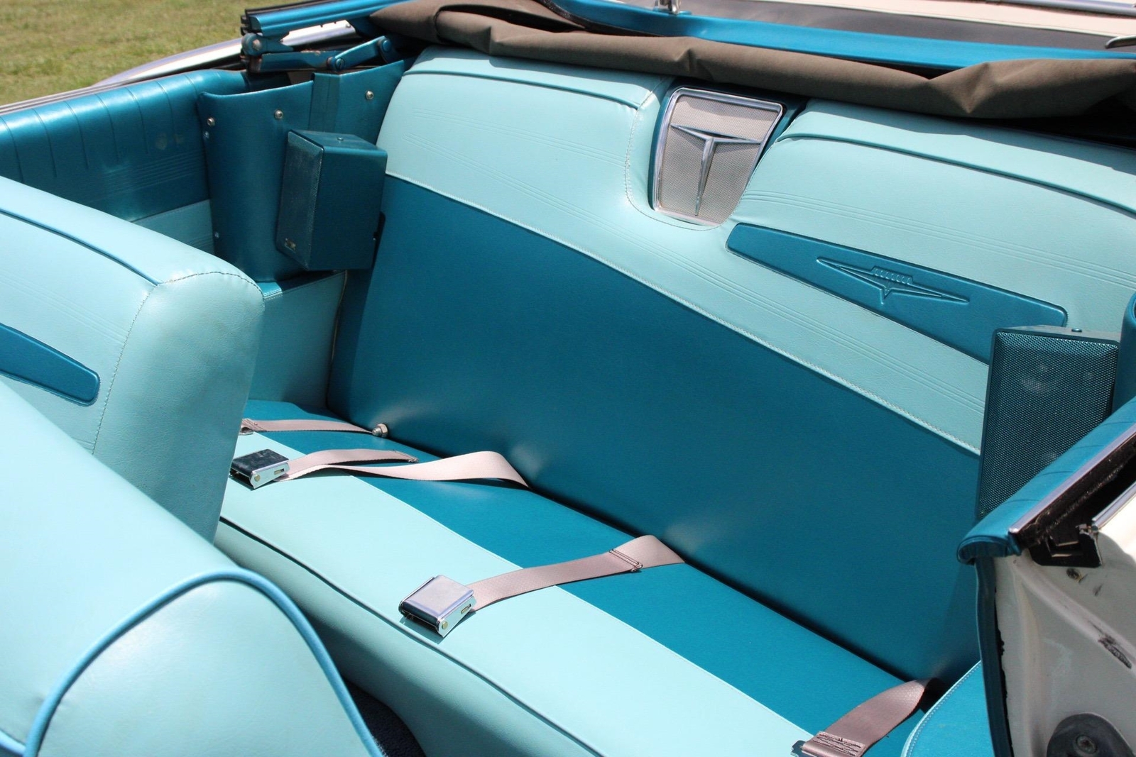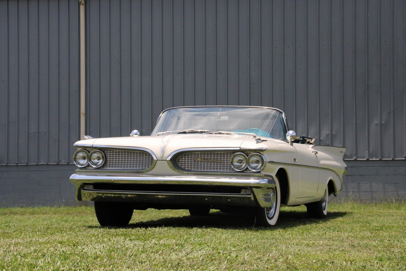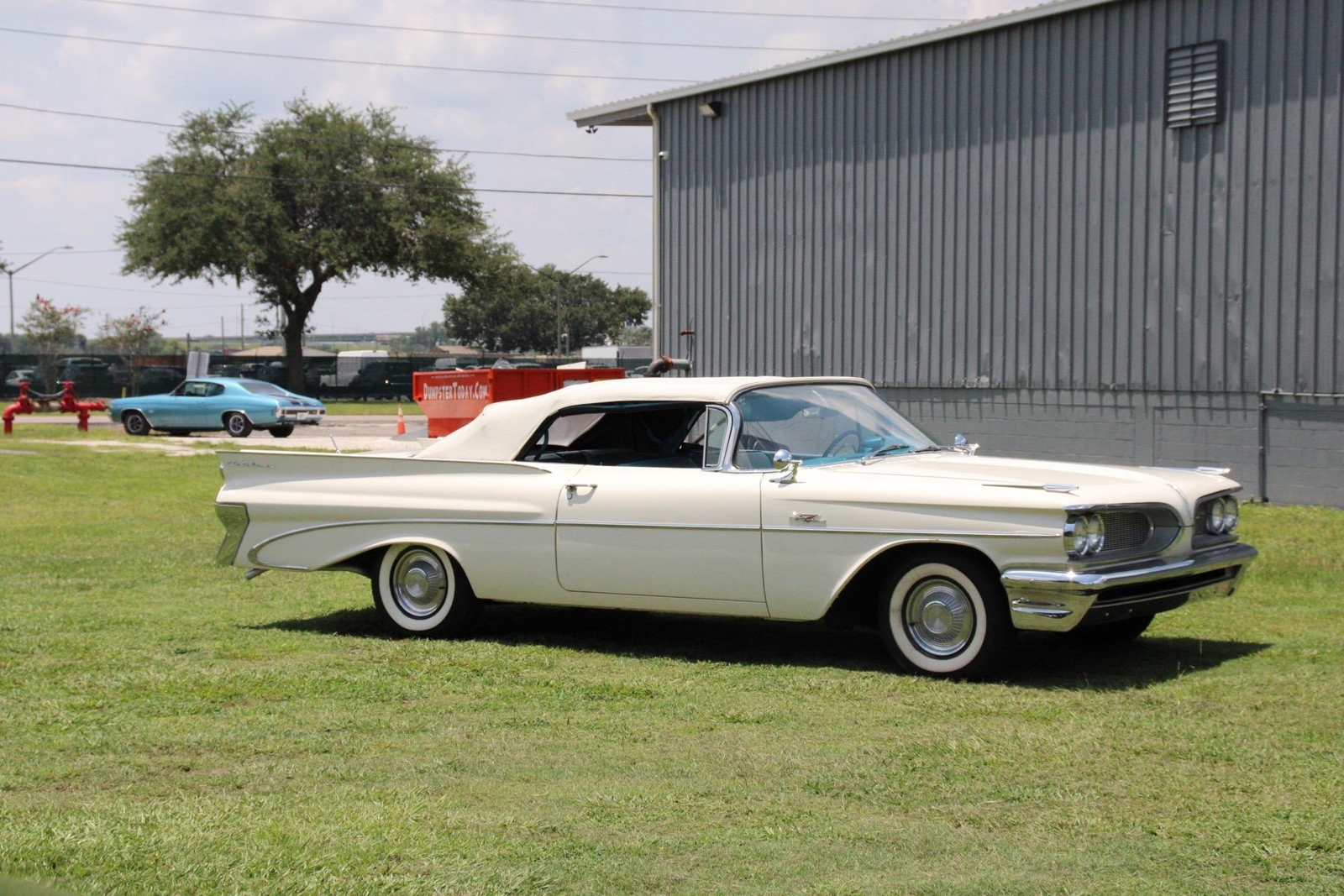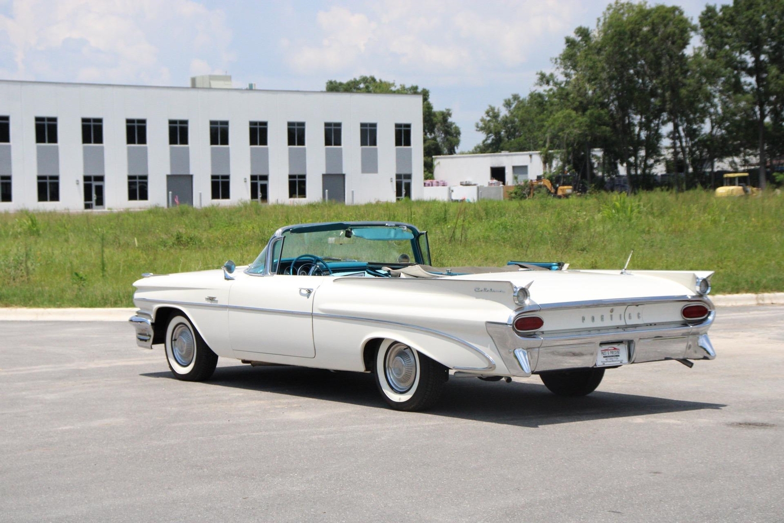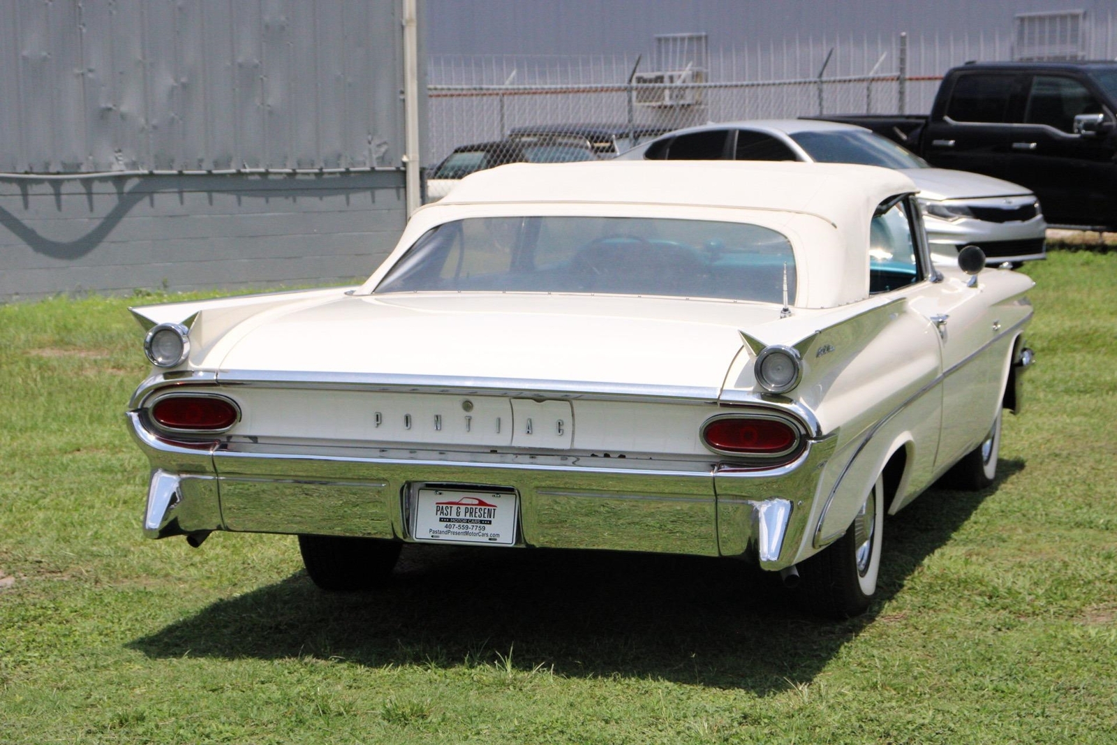 1959 Pontiac Catalina Convertible. Manufactured in 59 and 60. The Catalina, though it was priced and trimmed below the Impala due to GM's overlapping price structure formula. Catalinas had more standard amenities than Chevrolet models and included a larger and more powerful V8 engine. Also a much better automatic transmission than their Chevrolet counterparts - the four-speed Hydra-Matic - versus Chevy's two-speed Powerglide. The Catalina featured a split grill, which was one of Pontiacs many “firsts” that was carried on though many generations, including the GTO. The Catalina was Pontiac's most popular model and the base platform for many iconic, popular cars - Pontiac Grand Prix, Pontiac 2+2, Pontiac Ventura, and the Pontiac Safari station wagon. The Pontiac Tempest was introduced in 1964, lessons learned from the Catalina & Grand Prix led to the introduction of the Pontiac GTO, to include the 389 cu in (6.4 L) Pontiac V8. Though the basic Catalina started out with a full rubber mat, it could be ordered with full carpeting, glovebox and trunk lights; dual front ashtrays, cigar lighter, glove compartment snack bar (two cup indents on the glovebox door that could be opened for use at drive-in restaurants) were standard. Body shape wise, Twin tailfins in a V, like some jet fighter planes, two on each side, were new and only in 1959. Styling highlights include thin-pillar rooflines and greater use of glass for increased visibility. Paint & Body. Nice C code Cameo Ivory paint covers good sheet metal. Great lines, gaps and body fit. Very nice chrome rear bumper curves up on the ends and makes a down curving trim piece creating beautiful symmetry. In the end of each meeting of the two pieces is in elliptical brake lamp with a chrome bezel. The gas tank filler cap was offset to the passenger side of the car to allow the trunk lock to be centered. Centered across the back, chrome emblem letters spelling “Pontiac.” This side trim is a little minimalistic but the front bumper design makes up for it. The front bumper is a two piece, the top part wraps around the fenders and angles down, the lower piece curves upward creating an air gap and pleasing white space. The grill is a rectangular open rectangular grid. Classy bezels surround the dual headlights. Sitting atop each fender is a bullet with a long tail piece that tapers into a poly. Your eye naturally follows this to the Beautiful Chrome surround on the windshield. Interior is stunning Morrokide vinyl upholstery - Turquoise and sky blue 2 Tone. The dash pad is perfectly installed stretched vinyl, there is not a ripple or a crease all the way across. “Immaculate pride of work & craftsmanship is completely obvious.” Three big round gauges are centered behind a wrapped steering wheel. Heater / defroster work. Full wheel covers, deluxe steering wheel, chrome pedal trim plates - Which this Car has. The 1959 Pontiacs split grille, came about by accident when the styling studio was exploring grille design. Experimentally, a design for a conventional, full width, oval grille, containing horizontal quad headlights, was cut in two and the halves transposed. With the lights remaining at the extremities, this gave the split center, open ended look of the '59 Catalina. Along with the wider body came a 5 wider chassis in which the wheels were moved out towards the fenders. This not only improved the appearance of the car but led to improvements in ride and handling - spawning the term wide track ride and handling which Pontiac would use in its promotional efforts for many years to come. Catalinas came standard with a 235 horsepower (175 kW) version of the 389 with two-barrel carburetor and 8.6 to 1 compression mated to the three-speed manual transmission. Available as a no-cost option with the Hydramatic transmission was the 215-horsepower 389 (dubbed the Economy V8) with 8.6 to 1 compression ratio which burned cheaper regular gasoline, instead of the premium and super-premium fuels required for the high-compression engines, and capable of achieving more than 20 MPG on the highway. Optionally available at extra cost were higher-power versions of the 389 V8 with four-barrel carburetion rated at 283 horsepower (211 kW) with manual gearbox or 303 hp with Hydramatic, a 4-barrel carburetor version with a horsepower rating of 318 hp, or Tri-Power options with triple two-barrel carburetors and 330 hp or 345 hp (257 kW). Another fine example of when “cars were cars!” They had shapes and they had character. They were not concerned about being streamlined other than the design aspect not as a wind tunnel airflow gas economy issue. They, including this beauty are true works of Art. The car looks runs and handles excellent. While we do our best to provide the highest quality muscle cars with an honest and reliable description and realize the importance of transparency when selling vehicles. That being said, we have not built, modified, changed or personally owned this vehicle. Whether this vehicle is consigned or owned by Past & Present Motor Cars we do not know the vehicles complete history since new. We want to be clear and try to answer any questions our customers might have prior to purchasing. Additionally, we not only welcome but we encourage 3rd party independent inspections. Please inquire prior to purchase to make sure the advertised vehicle has not already been sold. We list our vehicles on multiple websites and a vehicle can sell at any time. If a customer chooses to purchase sight unseen (many of our customers choose this option) the customer accepts the vehicle AS IS and WHERE IS and understands we cannot address concerns after purchase. For this reason, it's important all concerns are addressed prior to purchase. We make every effort to present accurate and reliable information, but use of this information is voluntary, and should only be deemed reliable after an independent review of its accuracy, completeness, and timeliness. It is the s