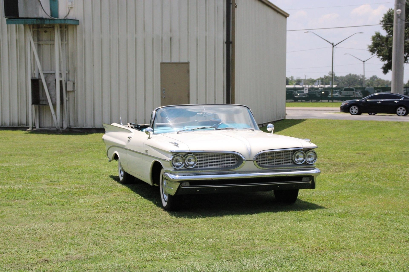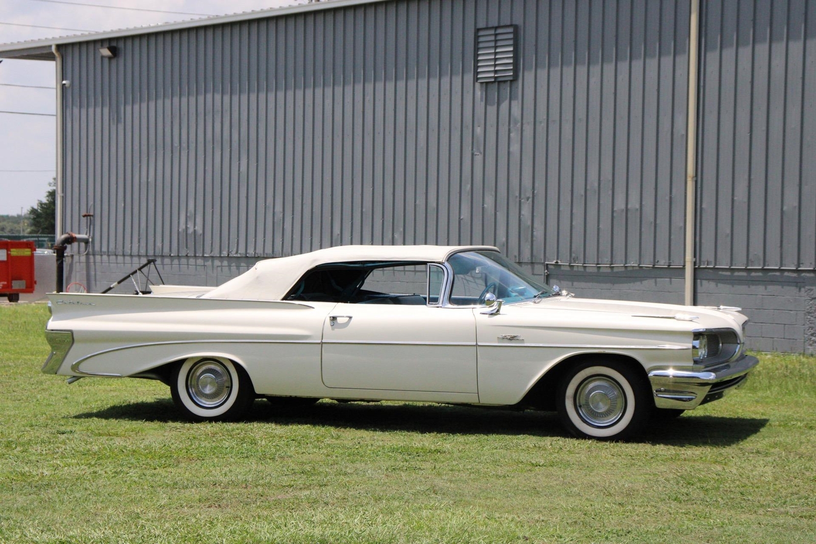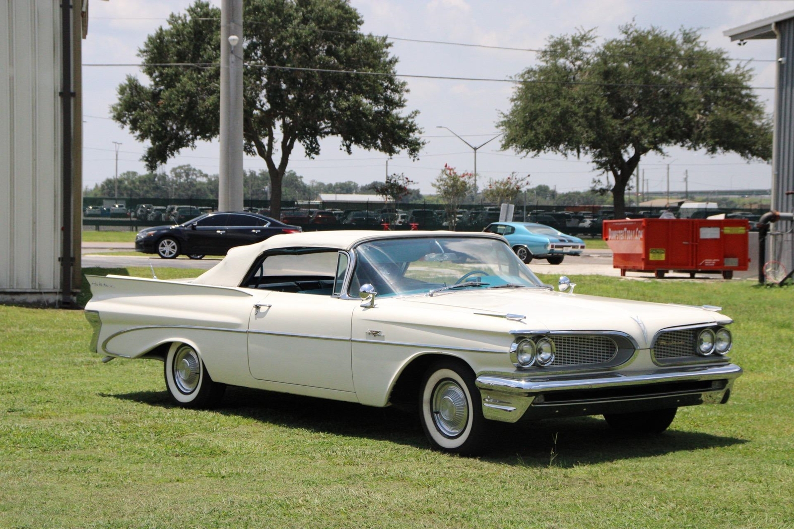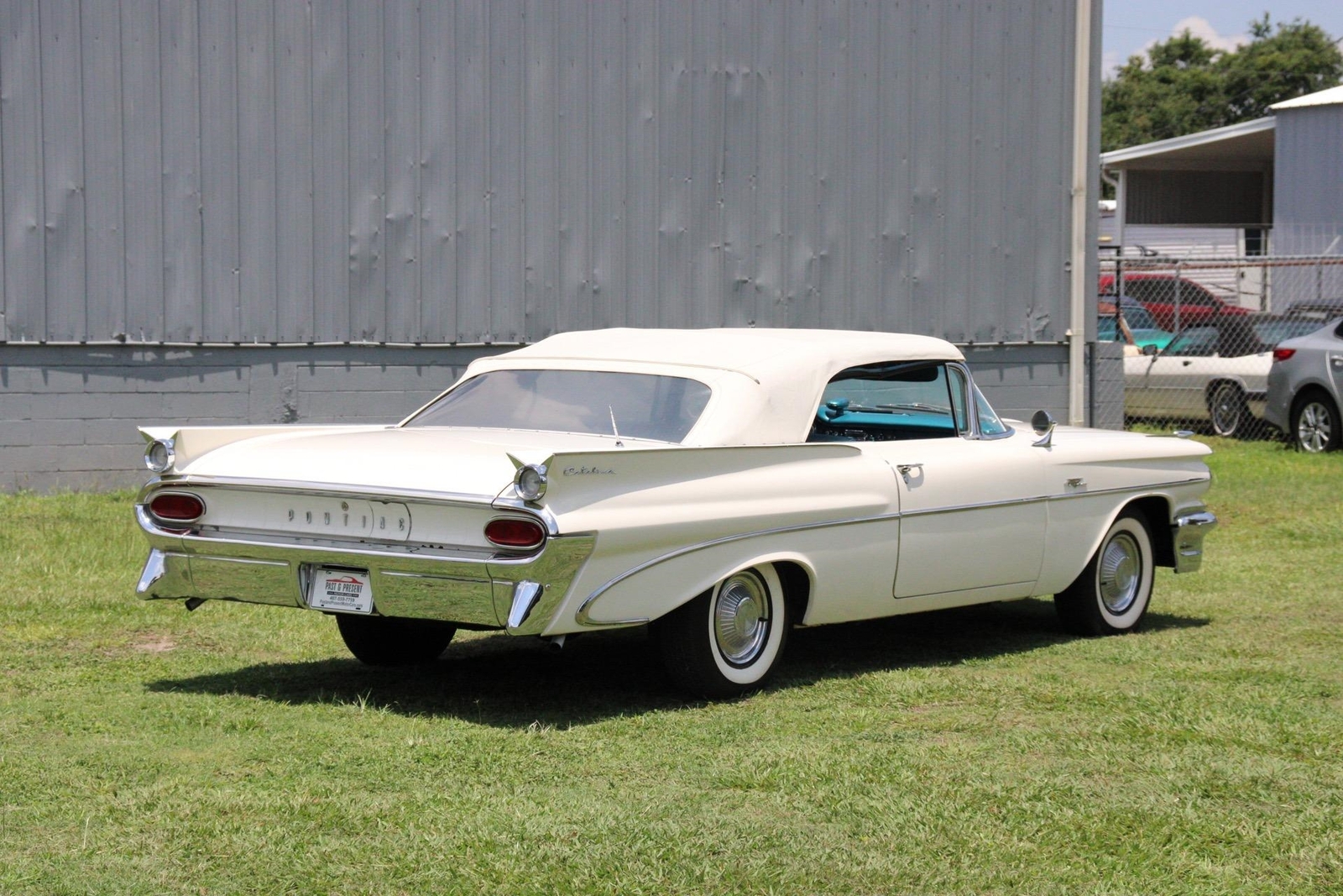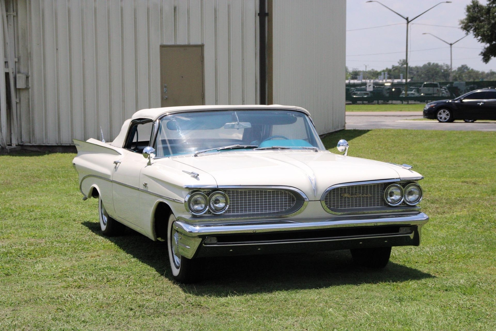 1959 Pontiac Catalina Convertible. Manufactured in 59 and 60. The Catalina, though it was priced and trimmed below the Impala due to GM's overlapping price structure formula. Catalinas had more standard amenities than Chevrolet models and included a larger and more powerful V8 engine. Also a much better automatic transmission than their Chevrolet counterparts - the four-speed Hydra-Matic - versus Chevy's two-speed Powerglide. The Catalina featured a split grill, which was one of Pontiacs many “firsts” that was carried on though many generations, including the GTO. The Catalina was Pontiac's most popular model and the base platform for many iconic, popular cars - Pontiac Grand Prix, Pontiac 2+2, Pontiac Ventura, and the Pontiac Safari station wagon. The Pontiac Tempest was introduced in 1964, lessons learned from the Catalina & Grand Prix led to the introduction of the Pontiac GTO, to include the 389 cu in (6.4 L) Pontiac V8. Though the basic Catalina started out with a full rubber mat, it could be ordered with full carpeting, glovebox and trunk lights; dual front ashtrays, cigar lighter, glove compartment snack bar (two cup indents on the glovebox door that could be opened for use at drive-in restaurants) were standard. Body shape wise, Twin tailfins in a V, like some jet fighter planes, two on each side, were new and only in 1959. Styling highlights include thin-pillar rooflines and greater use of glass for increased visibility. Paint & Body. Nice C code Cameo Ivory paint covers good sheet metal. Great lines, gaps and body fit. Very nice chrome rear bumper curves up on the ends and makes a down curving trim piece creating beautiful symmetry. In the end of each meeting of the two pieces is in elliptical brake lamp with a chrome bezel. The gas tank filler cap was offset to the passenger side of the car to allow the trunk lock to be centered. Centered across the back, chrome emblem letters spelling “Pontiac.” This side trim is a little minimalistic but the front bumper design makes up for it. The front bumper is a two piece, the top part wraps around the fenders and angles down, the lower piece curves upward creating an air gap and pleasing white space. The grill is a rectangular open rectangular grid. Classy bezels surround the dual headlights. Sitting atop each fender is a bullet with a long tail piece that tapers into a poly. Your eye naturally follows this to the Beautiful Chrome surround on the windshield. Interior is stunning Morrokide vinyl upholstery - Turquoise and sky blue 2 Tone. The dash pad is perfectly installed stretched vinyl, there is not a ripple or a crease all the way across. “Immaculate pride of work & craftsmanship is completely obvious.” Three big round gauges are centered behind a wrapped steering wheel. Heater / defroster work. Full wheel covers, deluxe steering wheel, chrome pedal trim plates - Which this Car has. The 1959 Pontiacs split grille, came about by accident when the styling studio was exploring grille design. Experimentally, a design for a conventional, full width, oval grille, containing horizontal quad headlights, was cut in two and the halves transposed. With the lights remaining at the extremities, this gave the split center, open ended look of the '59 Catalina. Along with the wider body came a 5 wider chassis in which the wheels were moved out towards the fenders. This not only improved the appearance of the car but led to improvements in ride and handling - spawning the term wide track ride and handling which Pontiac would use in its promotional efforts for many years to come. Catalinas came standard with a 235 horsepower (175 kW) version of the 389 with two-barrel carburetor and 8.6 to 1 compression mated to the three-speed manual transmission. Available as a no-cost option with the Hydramatic transmission was the 215-horsepower 389 (dubbed the Economy V8) with 8.6 to 1 compression ratio which burned cheaper regular gasoline, instead of the premium and super-premium fuels required for the high-compression engines, and capable of achieving more than 20 MPG on the highway. Optionally available at extra cost were higher-power versions of the 389 V8 with four-barrel carburetion rated at 283 horsepower (211 kW) with manual gearbox or 303 hp with Hydramatic, a 4-barrel carburetor version with a horsepower rating of 318 hp, or Tri-Power options with triple two-barrel carburetors and 330 hp or 345 hp (257 kW). Another fine example of when “cars were cars!” They had shapes and they had character. They were not concerned about being streamlined other than the design aspect not as a wind tunnel airflow gas economy issue. They, including this beauty are true works of Art. The car looks runs and handles excellent. While we do our best to provide the highest quality muscle cars with an honest and reliable description and realize the importance of transparency when selling vehicles. That being said, we have not built, modified, changed or personally owned this vehicle. Whether this vehicle is consigned or owned by Past & Present Motor Cars we do not know the vehicles complete history since new. We want to be clear and try to answer any questions our customers might have prior to purchasing. Additionally, we not only welcome but we encourage 3rd party independent inspections. Please inquire prior to purchase to make sure the advertised vehicle has not already been sold. We list our vehicles on multiple websites and a vehicle can sell at any time. If a customer chooses to purchase sight unseen (many of our customers choose this option) the customer accepts the vehicle AS IS and WHERE IS and understands we cannot address concerns after purchase. For this reason, it's important all concerns are addressed prior to purchase. We make every effort to present accurate and reliable information, but use of this information is voluntary, and should only be deemed reliable after an independent review of its accuracy, completeness, and timeliness. It is the s