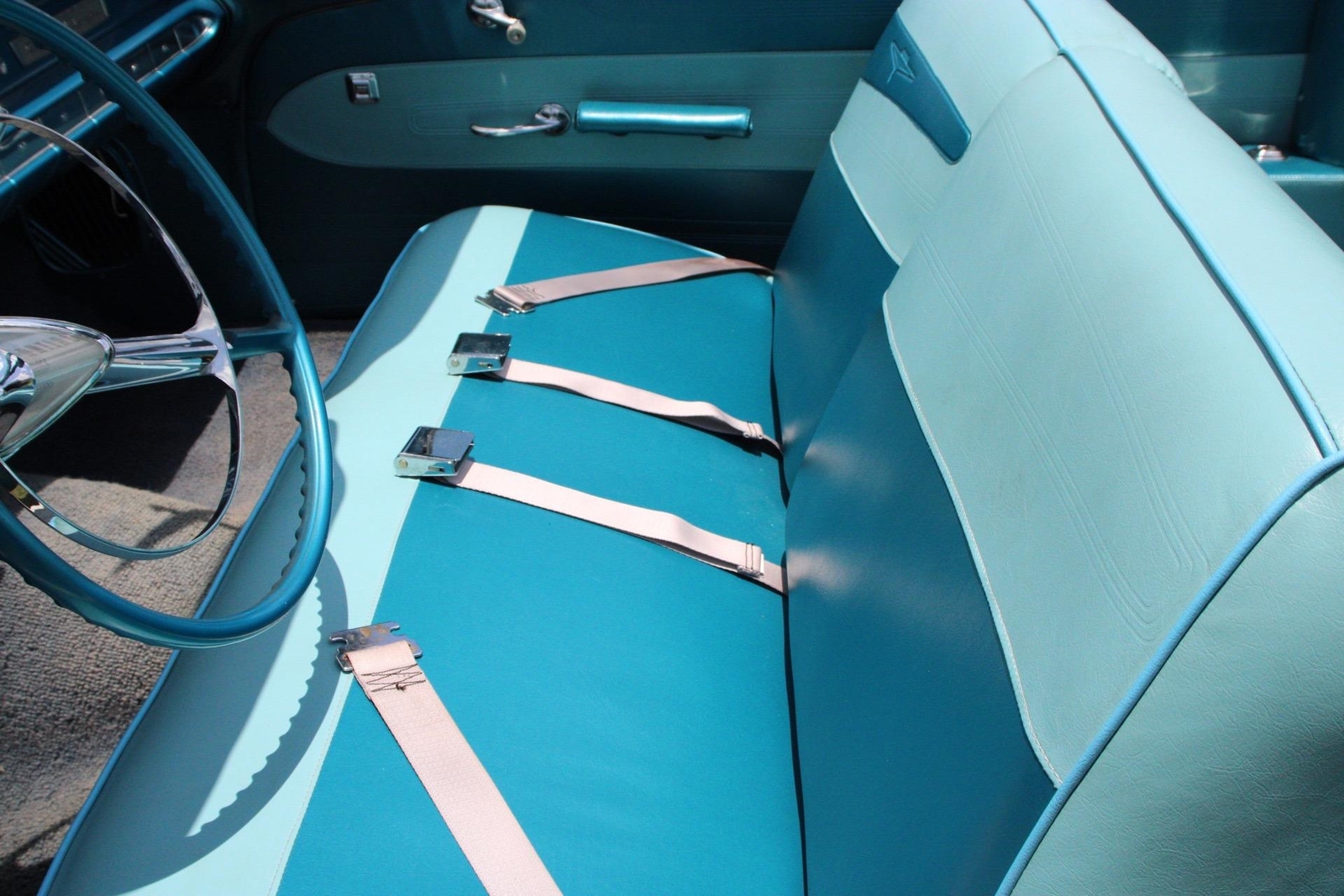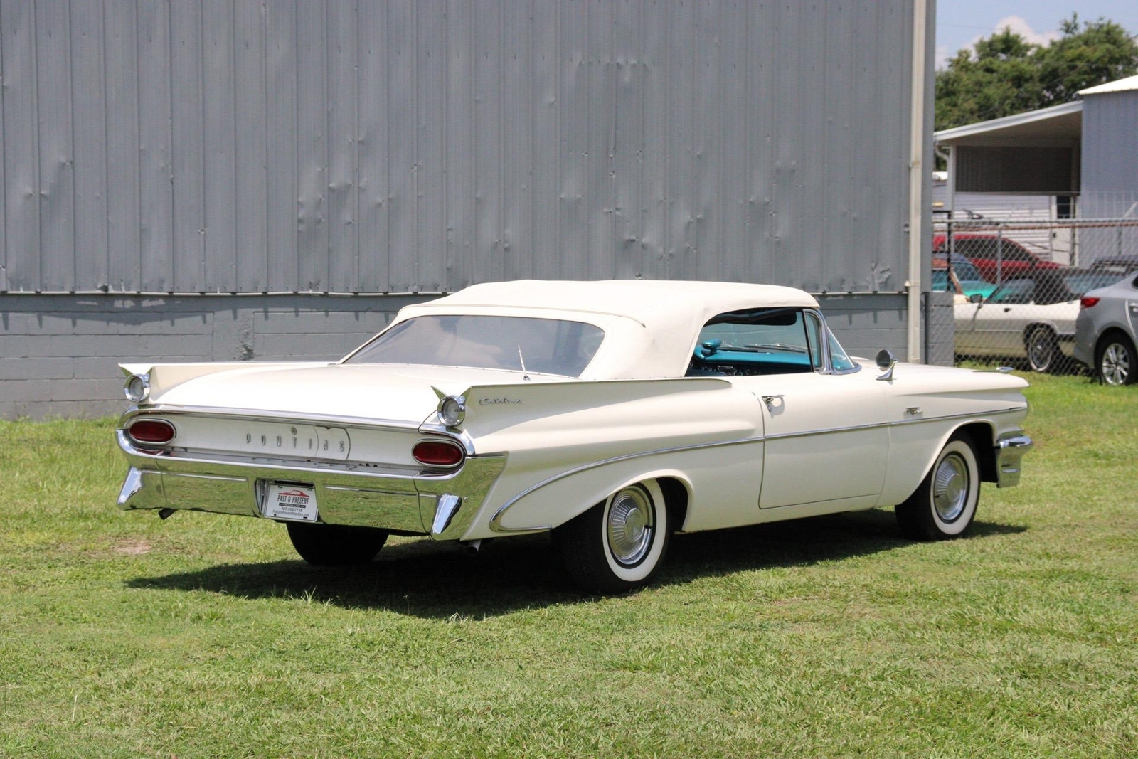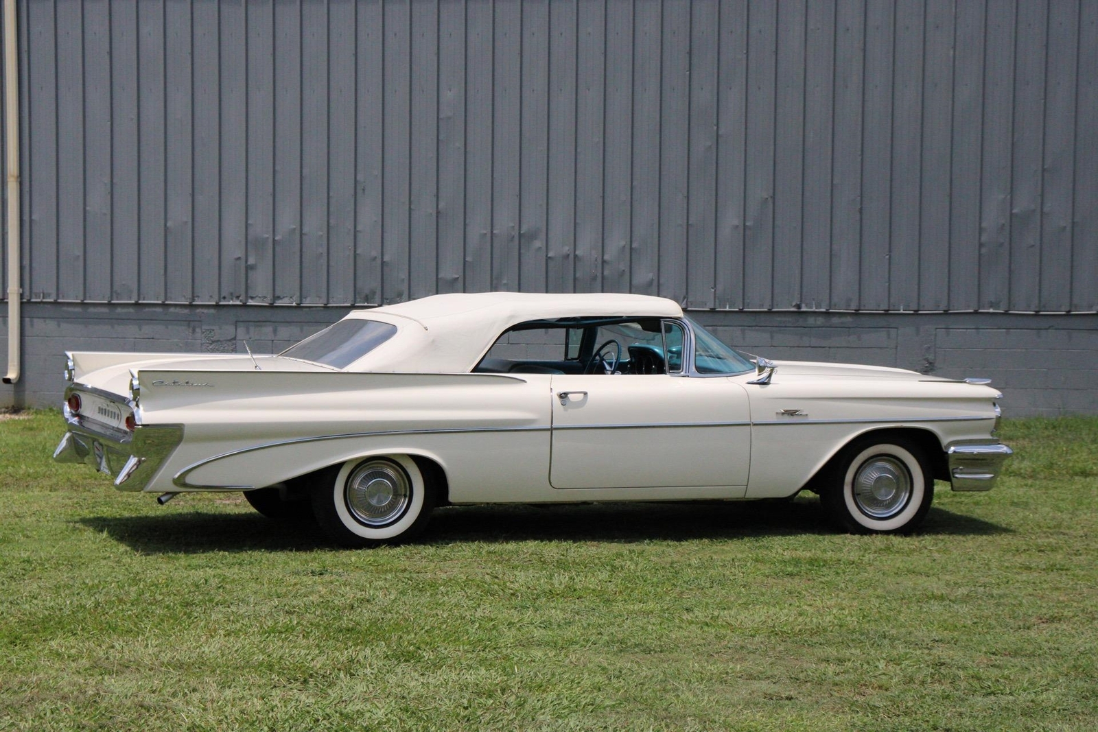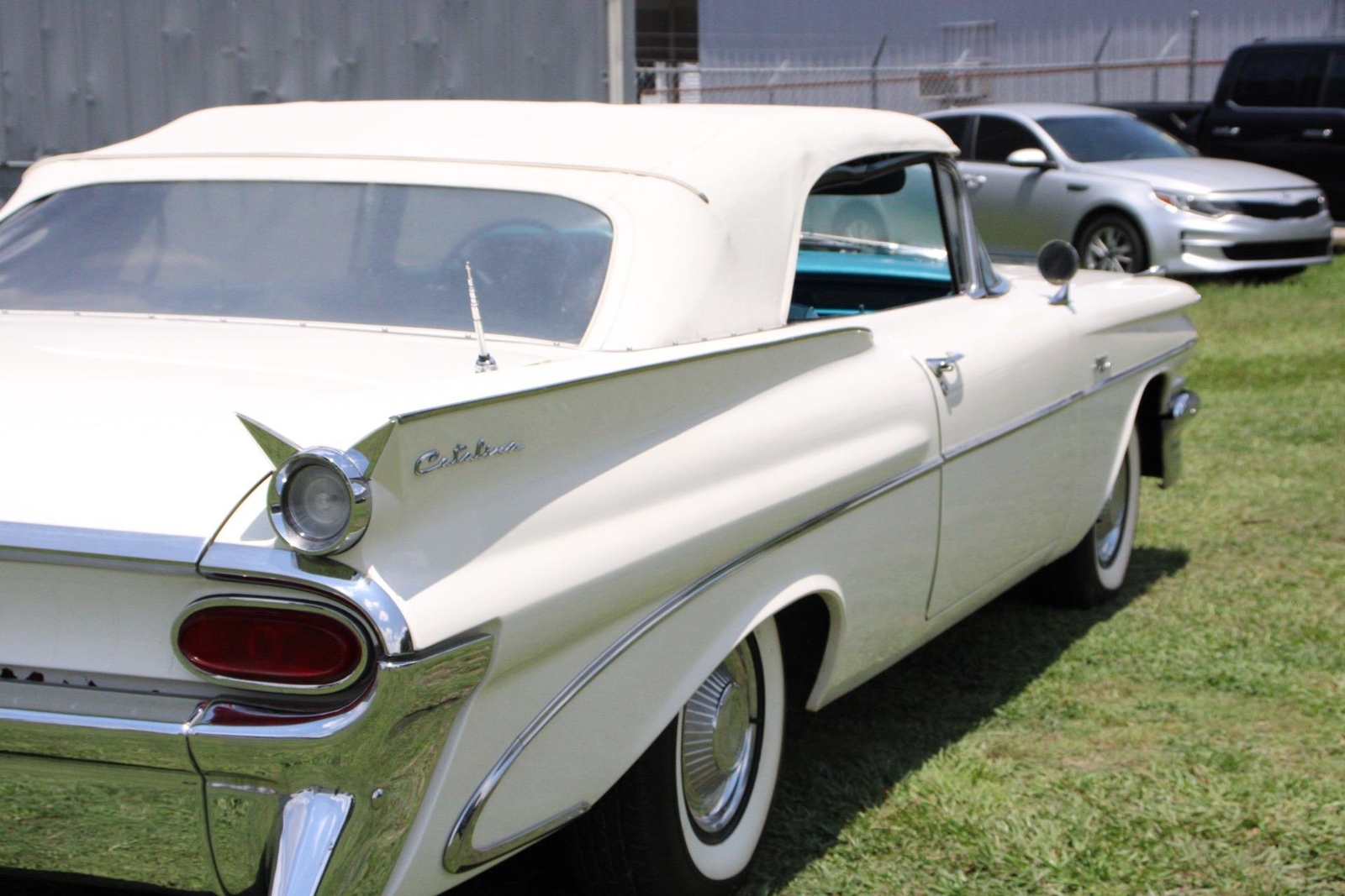1959 Pontiac Catalina Convertible. Manufactured in 59 and 60. The Catalina, though it was priced and trimmed below the Impala due to GM's overlapping price structure formula. Catalinas had more standard amenities than Chevrolet models and included a larger and more powerful V8 engine. Also a much better automatic transmission than their Chevrolet counterparts - the four-speed Hydra-Matic - versus Chevy's two-speed Powerglide. The Catalina featured a split grill, which was one of Pontiacs many “firsts” that was carried on though many generations, including the GTO. The Catalina was Pontiac's most popular model and the base platform for many iconic, popular cars - Pontiac Grand Prix, Pontiac 2+2, Pontiac Ventura, and the Pontiac Safari station wagon. The Pontiac Tempest was introduced in 1964, lessons learned from the Catalina & Grand Prix led to the introduction of the Pontiac GTO, to include the 389 cu in (6.4 L) Pontiac V8. Though the basic Catalina started out with a full rubber mat, it could be ordered with full carpeting, glovebox and trunk lights; dual front ashtrays, cigar lighter, glove compartment snack bar (two cup indents on the glovebox door that could be opened for use at drive-in restaurants) were standard. Body shape wise, Twin tailfins in a V, like some jet fighter planes, two on each side, were new and only in 1959. Styling highlights include thin-pillar rooflines and greater use of glass for increased visibility. Paint & Body. Nice C code Cameo Ivory paint covers good sheet metal. Great lines, gaps and body fit. Very nice chrome rear bumper curves up on the ends and makes a down curving trim piece creating beautiful symmetry. In the end of each meeting of the two pieces is in elliptical brake lamp with a chrome bezel. The gas tank filler cap was offset to the passenger side of the car to allow the trunk lock to be centered. Centered across the back, chrome emblem letters spelling “Pontiac.” This side trim is a little minimalistic but the front bumper design makes up for it. The front bumper is a two piece, the top part wraps around the fenders and angles down, the lower piece curves upward creating an air gap and pleasing white space. The grill is a rectangular open rectangular grid. Classy bezels surround the dual headlights. Sitting atop each fender is a bullet with a long tail piece that tapers into a poly. Your eye naturally follows this to the Beautiful Chrome surround on the windshield. Interior is stunning Morrokide vinyl upholstery - Turquoise and sky blue 2 Tone. The dash pad is perfectly installed stretched vinyl, there is not a ripple or a crease all the way across. “Immaculate pride of work & craftsmanship is completely obvious.” Three big round gauges are centered behind a wrapped steering wheel. Heater / defroster work. Full wheel covers, deluxe steering wheel, chrome pedal trim plates - Which this Car has. The 1959 Pontiacs split grille, came about by accident when the styling studio was exploring grille design. Experimentally, a design for a conventional, full width, oval grille, containing horizontal quad headlights, was cut in two and the halves transposed. With the lights remaining at the extremities, this gave the split center, open ended look of the '59 Catalina. Along with the wider body came a 5 wider chassis in which the wheels were moved out towards the fenders. This not only improved the appearance of the car but led to improvements in ride and handling - spawning the term wide track ride and handling which Pontiac would use in its promotional efforts for many years to come. Catalinas came standard with a 235 horsepower (175 kW) version of the 389 with two-barrel carburetor and 8.6 to 1 compression mated to the three-speed manual transmission. Available as a no-cost option with the Hydramatic transmission was the 215-horsepower 389 (dubbed the Economy V8) with 8.6 to 1 compression ratio which burned cheaper regular gasoline, instead of the premium and super-premium fuels required for the high-compression engines, and capable of achieving more than 20 MPG on the highway. Optionally available at extra cost were higher-power versions of the 389 V8 with four-barrel carburetion rated at 283 horsepower (211 kW) with manual gearbox or 303 hp with Hydramatic, a 4-barrel carburetor version with a horsepower rating of 318 hp, or Tri-Power options with triple two-barrel carburetors and 330 hp or 345 hp (257 kW). Another fine example of when “cars were cars!” They had shapes and they had character. They were not concerned about being streamlined other than the design aspect not as a wind tunnel airflow gas economy issue. They, including this beauty are true works of Art. The car looks runs and handles excellent. While we do our best to provide the highest quality muscle cars with an honest and reliable description and realize the importance of transparency when selling vehicles. That being said, we have not built, modified, changed or personally owned this vehicle. Whether this vehicle is consigned or owned by Past & Present Motor Cars we do not know the vehicles complete history since new. We want to be clear and try to answer any questions our customers might have prior to purchasing. Additionally, we not only welcome but we encourage 3rd party independent inspections. Please inquire prior to purchase to make sure the advertised vehicle has not already been sold. We list our vehicles on multiple websites and a vehicle can sell at any time. If a customer chooses to purchase sight unseen (many of our customers choose this option) the customer accepts the vehicle AS IS and WHERE IS and understands we cannot address concerns after purchase. For this reason, it's important all concerns are addressed prior to purchase. We make every effort to present accurate and reliable information, but use of this information is voluntary, and should only be deemed reliable after an independent review of its accuracy, completeness, and timeliness. It is the s