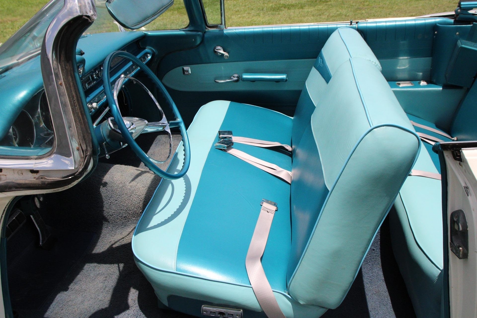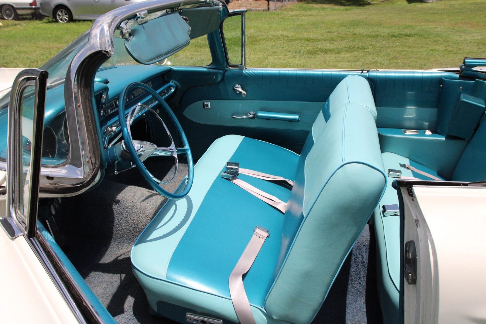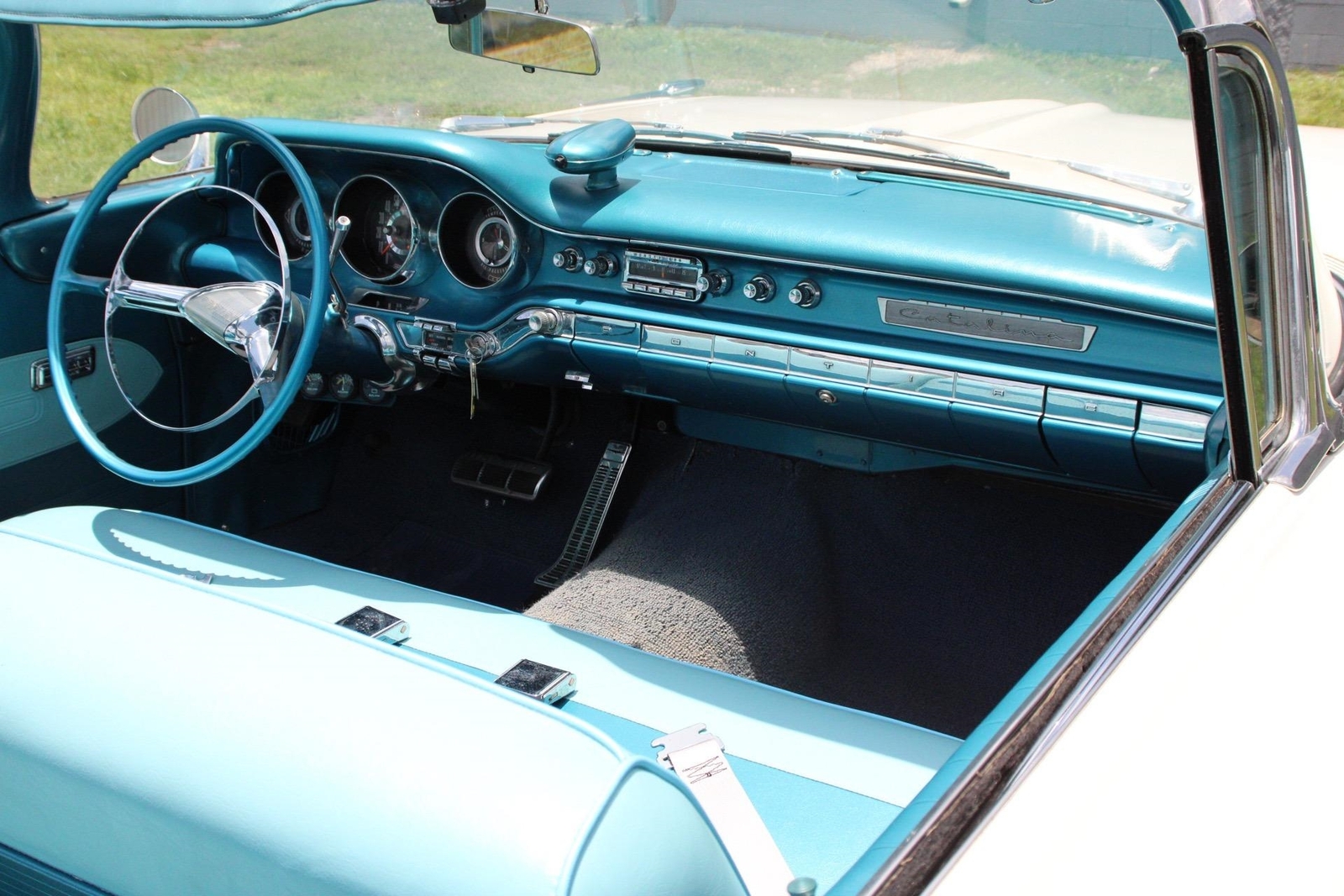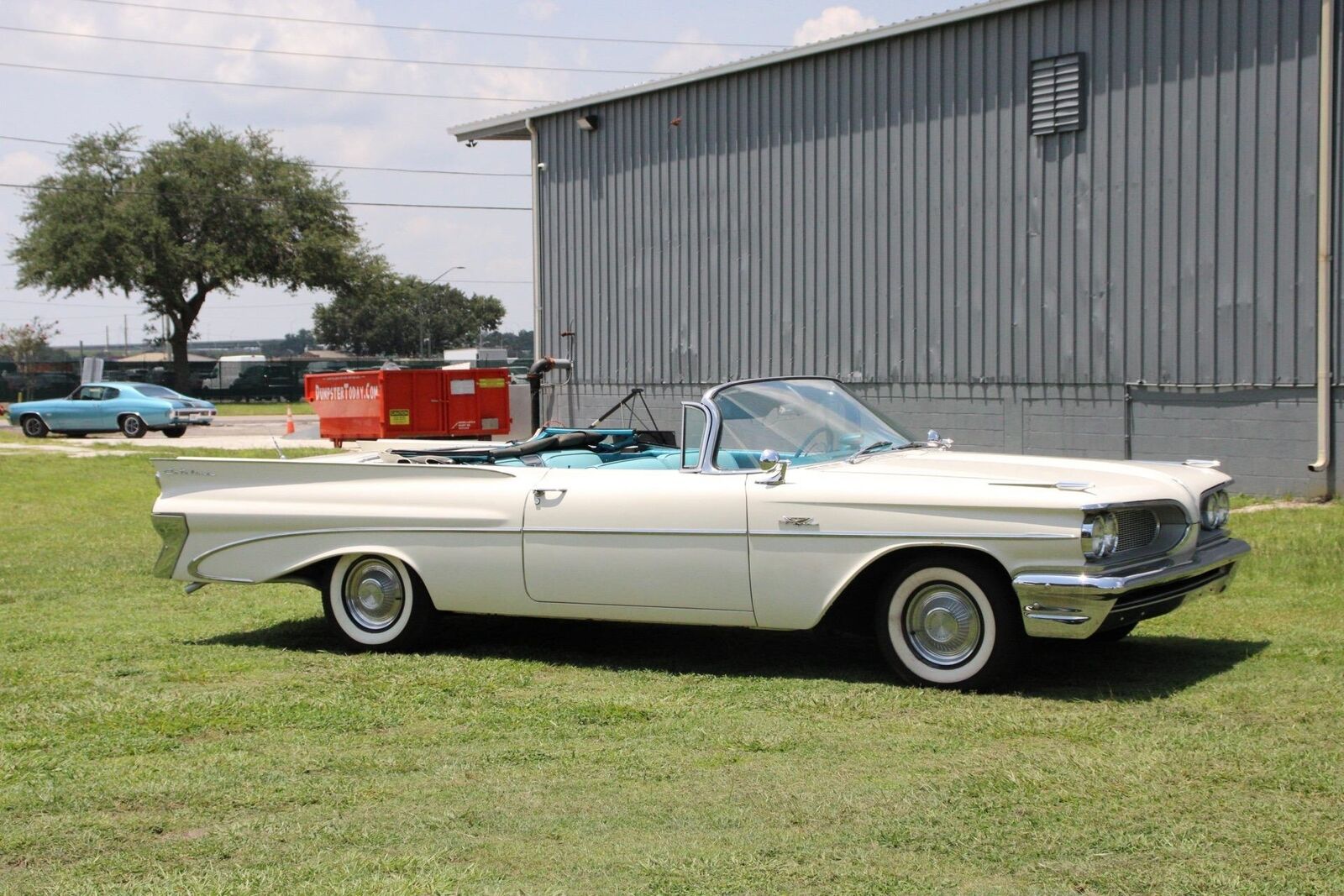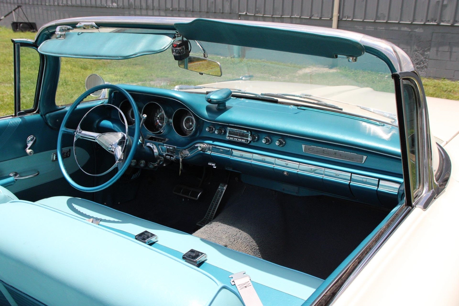 1959 Pontiac Catalina Convertible. Manufactured in 59 and 60. The Catalina, though it was priced and trimmed below the Impala due to GM's overlapping price structure formula. Catalinas had more standard amenities than Chevrolet models and included a larger and more powerful V8 engine. Also a much better automatic transmission than their Chevrolet counterparts - the four-speed Hydra-Matic - versus Chevy's two-speed Powerglide. The Catalina featured a split grill, which was one of Pontiacs many “firsts” that was carried on though many generations, including the GTO. The Catalina was Pontiac's most popular model and the base platform for many iconic, popular cars - Pontiac Grand Prix, Pontiac 2+2, Pontiac Ventura, and the Pontiac Safari station wagon. The Pontiac Tempest was introduced in 1964, lessons learned from the Catalina & Grand Prix led to the introduction of the Pontiac GTO, to include the 389 cu in (6.4 L) Pontiac V8. Though the basic Catalina started out with a full rubber mat, it could be ordered with full carpeting, glovebox and trunk lights; dual front ashtrays, cigar lighter, glove compartment snack bar (two cup indents on the glovebox door that could be opened for use at drive-in restaurants) were standard. Body shape wise, Twin tailfins in a V, like some jet fighter planes, two on each side, were new and only in 1959. Styling highlights include thin-pillar rooflines and greater use of glass for increased visibility. Paint & Body. Nice C code Cameo Ivory paint covers good sheet metal. Great lines, gaps and body fit. Very nice chrome rear bumper curves up on the ends and makes a down curving trim piece creating beautiful symmetry. In the end of each meeting of the two pieces is in elliptical brake lamp with a chrome bezel. The gas tank filler cap was offset to the passenger side of the car to allow the trunk lock to be centered. Centered across the back, chrome emblem letters spelling “Pontiac.” This side trim is a little minimalistic but the front bumper design makes up for it. The front bumper is a two piece, the top part wraps around the fenders and angles down, the lower piece curves upward creating an air gap and pleasing white space. The grill is a rectangular open rectangular grid. Classy bezels surround the dual headlights. Sitting atop each fender is a bullet with a long tail piece that tapers into a poly. Your eye naturally follows this to the Beautiful Chrome surround on the windshield. Interior is stunning Morrokide vinyl upholstery - Turquoise and sky blue 2 Tone. The dash pad is perfectly installed stretched vinyl, there is not a ripple or a crease all the way across. “Immaculate pride of work & craftsmanship is completely obvious.” Three big round gauges are centered behind a wrapped steering wheel. Heater / defroster work. Full wheel covers, deluxe steering wheel, chrome pedal trim plates - Which this Car has. The 1959 Pontiacs split grille, came about by accident when the styling studio was exploring grille design. Experimentally, a design for a conventional, full width, oval grille, containing horizontal quad headlights, was cut in two and the halves transposed. With the lights remaining at the extremities, this gave the split center, open ended look of the '59 Catalina. Along with the wider body came a 5 wider chassis in which the wheels were moved out towards the fenders. This not only improved the appearance of the car but led to improvements in ride and handling - spawning the term wide track ride and handling which Pontiac would use in its promotional efforts for many years to come. Catalinas came standard with a 235 horsepower (175 kW) version of the 389 with two-barrel carburetor and 8.6 to 1 compression mated to the three-speed manual transmission. Available as a no-cost option with the Hydramatic transmission was the 215-horsepower 389 (dubbed the Economy V8) with 8.6 to 1 compression ratio which burned cheaper regular gasoline, instead of the premium and super-premium fuels required for the high-compression engines, and capable of achieving more than 20 MPG on the highway. Optionally available at extra cost were higher-power versions of the 389 V8 with four-barrel carburetion rated at 283 horsepower (211 kW) with manual gearbox or 303 hp with Hydramatic, a 4-barrel carburetor version with a horsepower rating of 318 hp, or Tri-Power options with triple two-barrel carburetors and 330 hp or 345 hp (257 kW). Another fine example of when “cars were cars!” They had shapes and they had character. They were not concerned about being streamlined other than the design aspect not as a wind tunnel airflow gas economy issue. They, including this beauty are true works of Art. The car looks runs and handles excellent. While we do our best to provide the highest quality muscle cars with an honest and reliable description and realize the importance of transparency when selling vehicles. That being said, we have not built, modified, changed or personally owned this vehicle. Whether this vehicle is consigned or owned by Past & Present Motor Cars we do not know the vehicles complete history since new. We want to be clear and try to answer any questions our customers might have prior to purchasing. Additionally, we not only welcome but we encourage 3rd party independent inspections. Please inquire prior to purchase to make sure the advertised vehicle has not already been sold. We list our vehicles on multiple websites and a vehicle can sell at any time. If a customer chooses to purchase sight unseen (many of our customers choose this option) the customer accepts the vehicle AS IS and WHERE IS and understands we cannot address concerns after purchase. For this reason, it's important all concerns are addressed prior to purchase. We make every effort to present accurate and reliable information, but use of this information is voluntary, and should only be deemed reliable after an independent review of its accuracy, completeness, and timeliness. It is the s