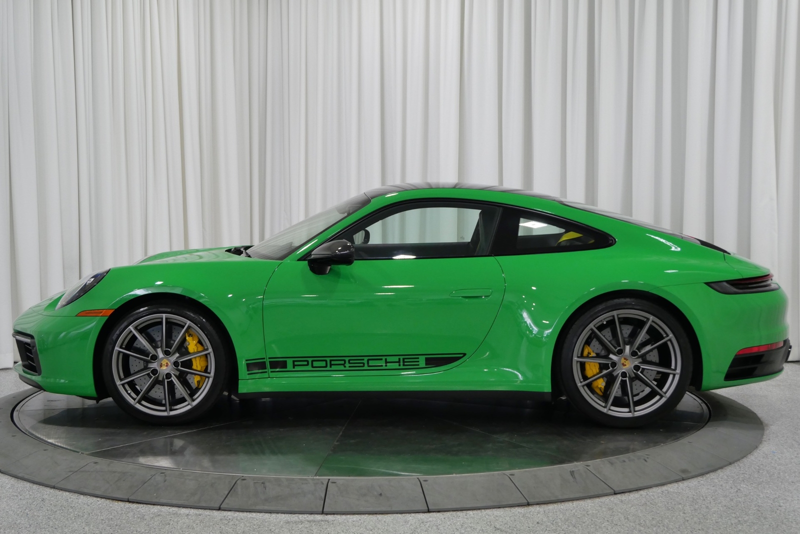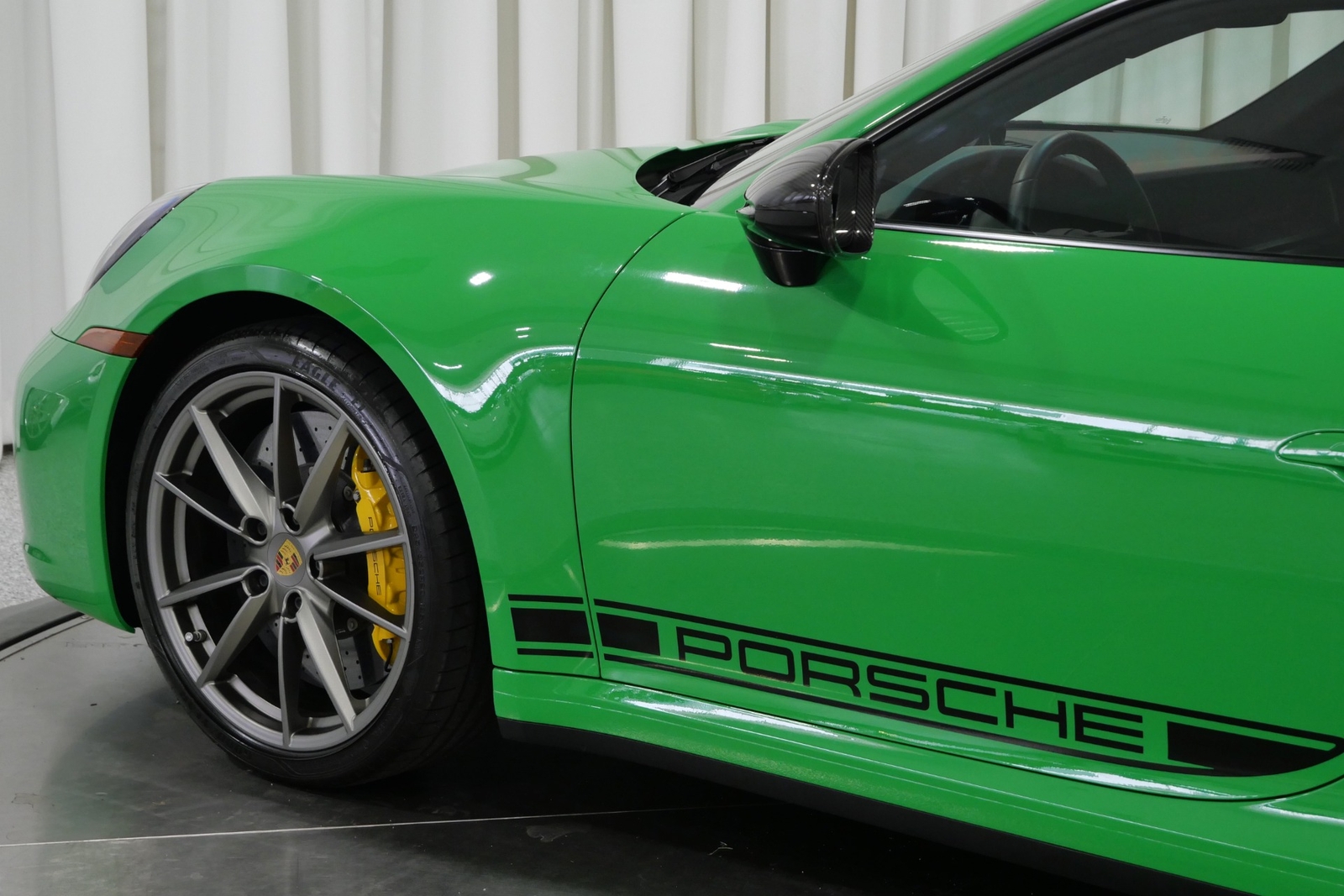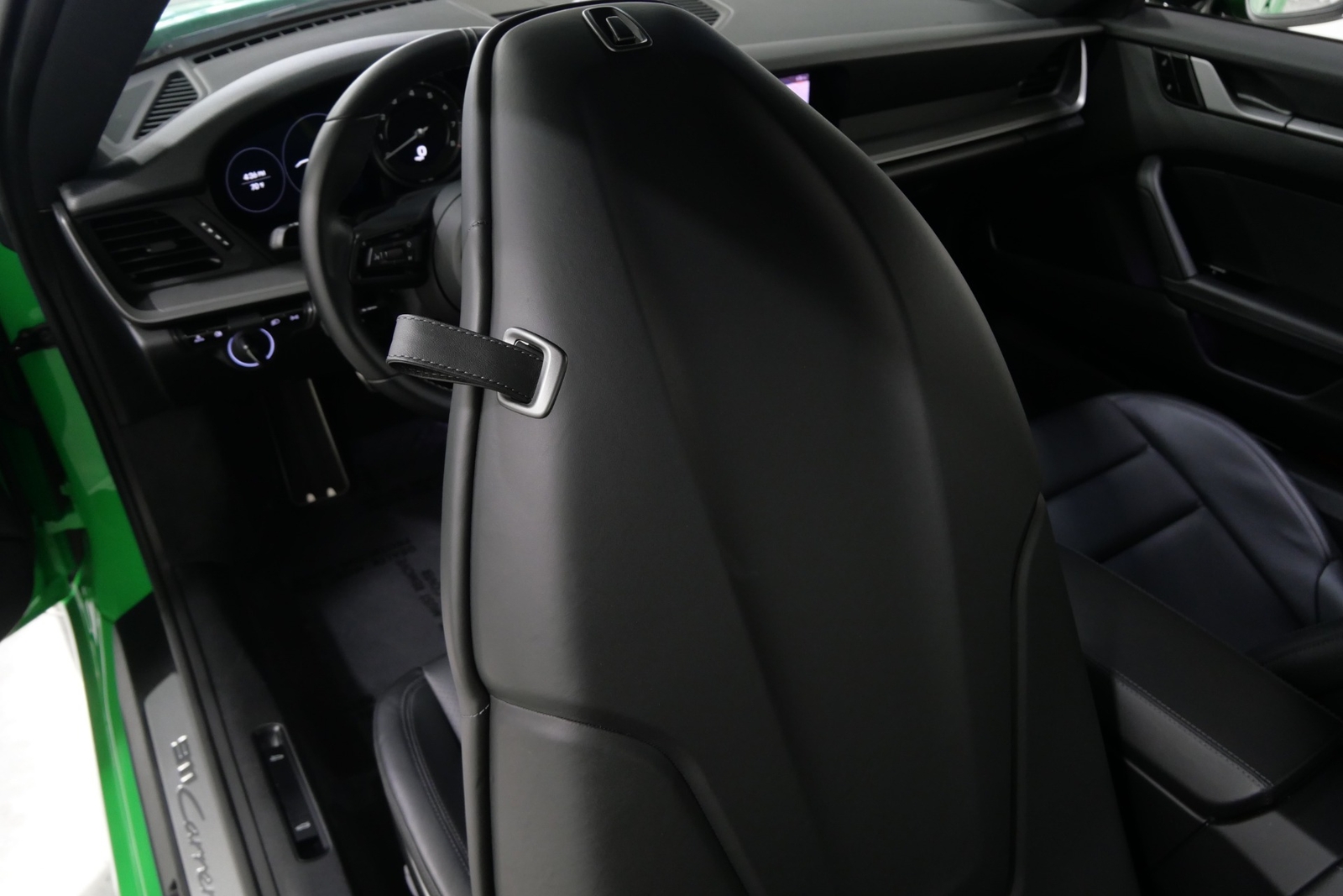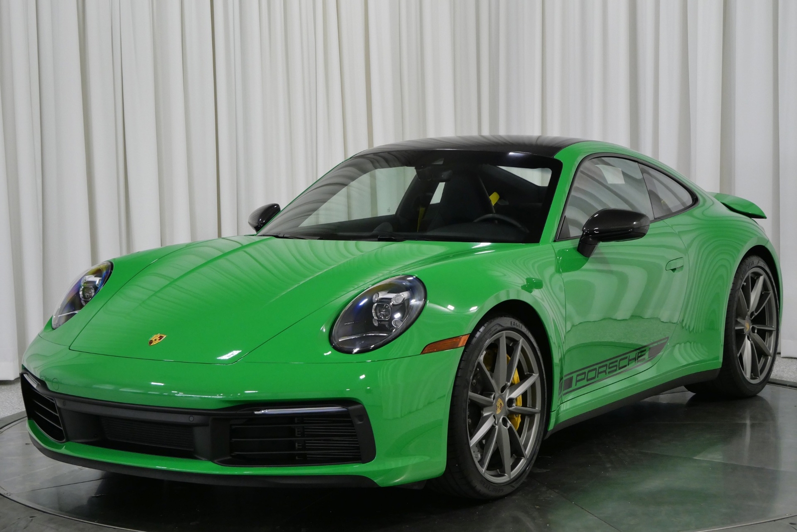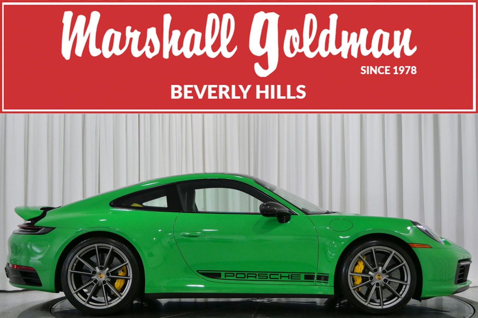 We have just added to our extensive exotic car inventory a beautiful 2021 Porsche 911 Carrera S in Python Green over Black with only 9,282 miles. This Carrera S is loaded with: 3.0 Liter twin turbo H6, 7 speed manual transmission, 20/21 inch satin platinum finish wheels, carbon ceramic brakes with yellow calipers, wheel caps with Porsche crests, Porsche side graphics in black, sport chrono package, sport exhaust system with black tailpipes, heated seats, carbon fiber roof, carbon fiber side mirrors, power folding side mirrors, GT Sport steering wheel, yellow seat belts, Porsche crests embossed in headrests, ambient lighting, lightweight and noise insulating glass, floor mats and much more.