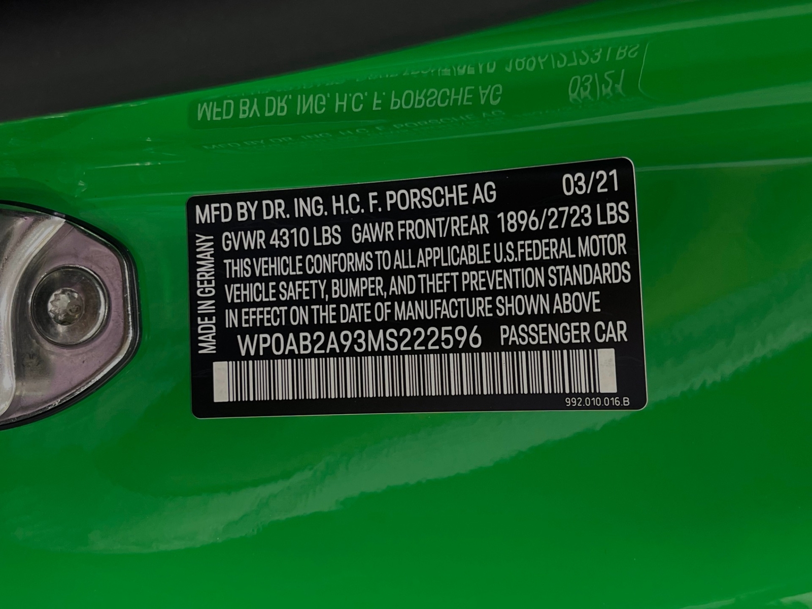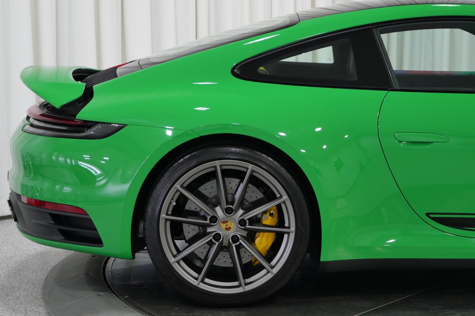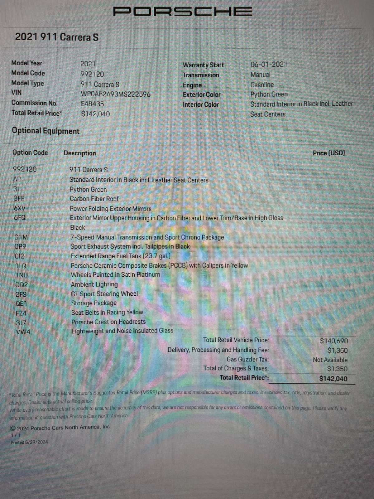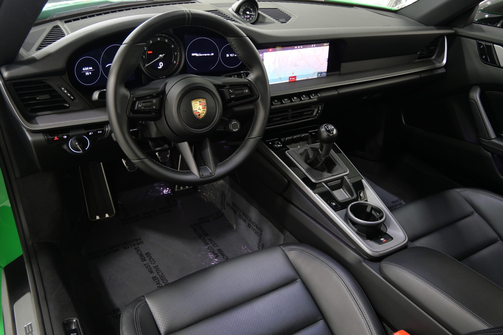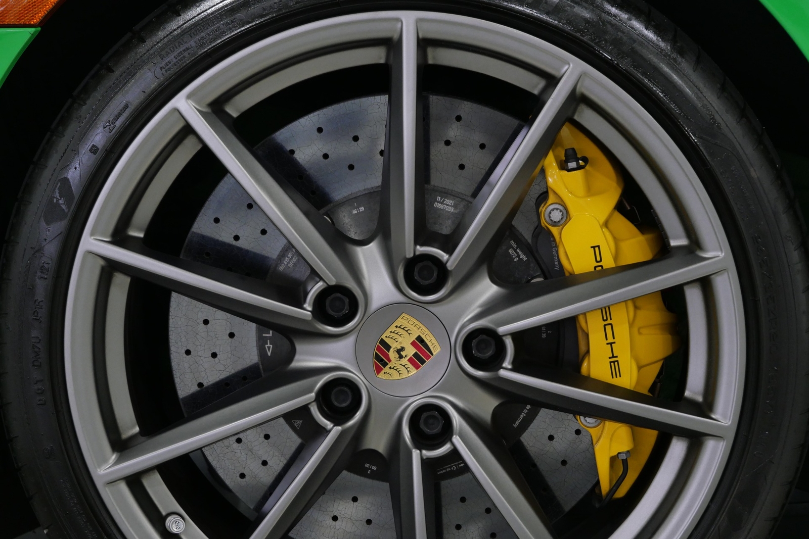 We have just added to our extensive exotic car inventory a beautiful 2021 Porsche 911 Carrera S in Python Green over Black with only 9,282 miles. This Carrera S is loaded with: 3.0 Liter twin turbo H6, 7 speed manual transmission, 20/21 inch satin platinum finish wheels, carbon ceramic brakes with yellow calipers, wheel caps with Porsche crests, Porsche side graphics in black, sport chrono package, sport exhaust system with black tailpipes, heated seats, carbon fiber roof, carbon fiber side mirrors, power folding side mirrors, GT Sport steering wheel, yellow seat belts, Porsche crests embossed in headrests, ambient lighting, lightweight and noise insulating glass, floor mats and much more.