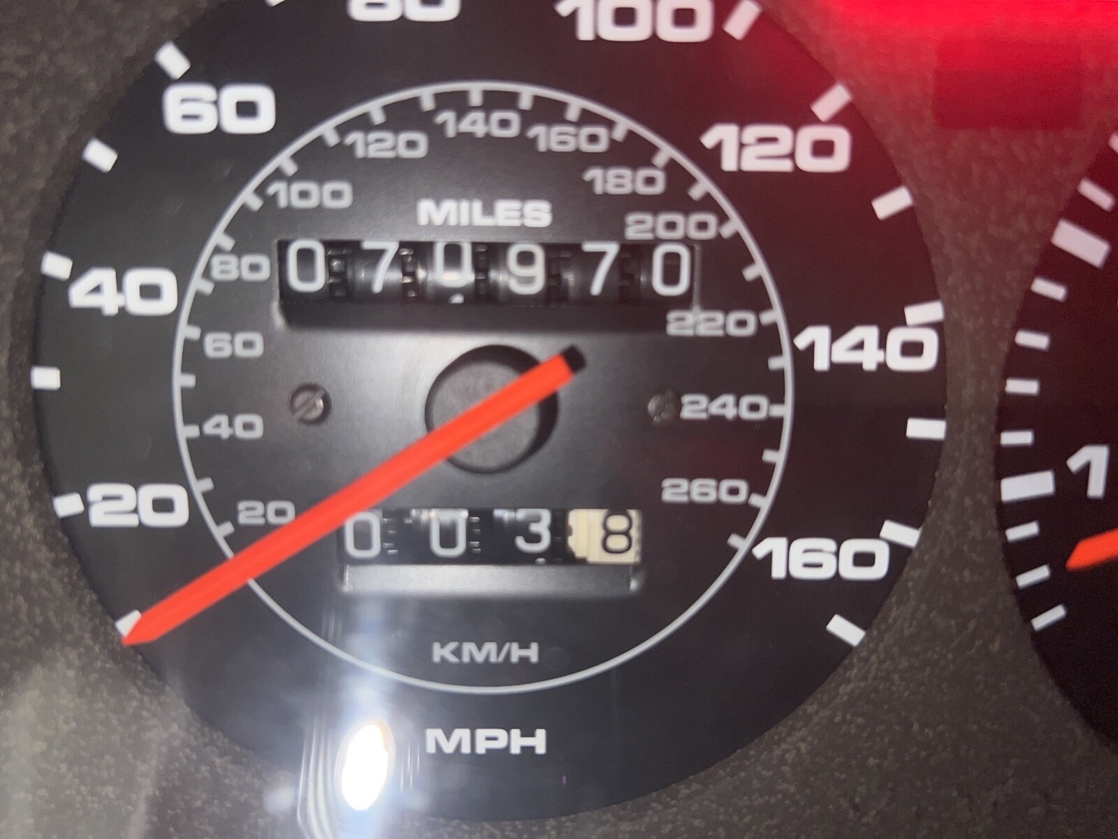 The exterior of the car is in excellent condition, reflecting its careful ownership and minimal use. The bodywork is clean and straight, with no significant dings, dents, 1 scratch on the front bumper and right passenger door. The original paintwork still retains its deep, glossy finish, indicative of proper care and storage. All trims, badges, and glass elements are intact and well-preserved. The signature pop-up headlights function flawlessly, adding to the vehicle's distinctive look.