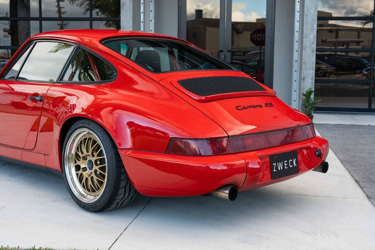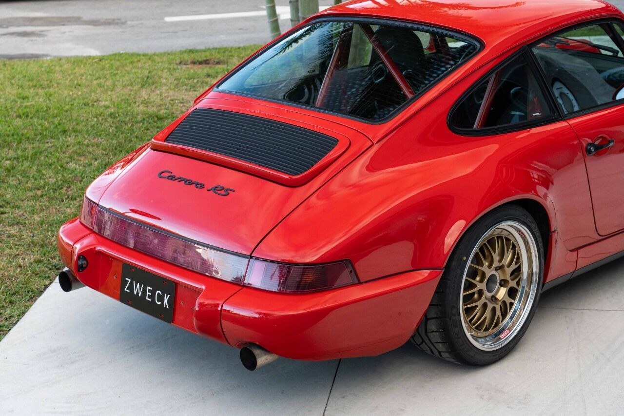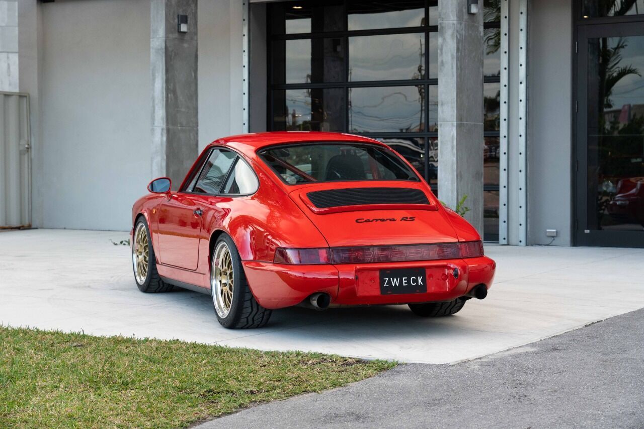 1992 964 RS - 37K miles (59K km) - rebuilt and upgraded 3.8L engine - complete header-back Cargraphic exhaust system - bolt-in roll cage. This Guards Red 964RS recently benefitted from a major maintenance service including valve cover gaskets, spark plugs, oil change, fan belt, brake fluid flush, and more. The engine features a 3.8L piston/cylinder set and sport cams, rebuilt by UK Porsche specialist Neil Bainbridge in 2017. The gearbox has been previously rebuilt as well. Imported to the US in September of 2023, this 3.8-powered RS is one of the strongest 964s we’ve encountered, and is ready for its next owner to enjoy immediately.