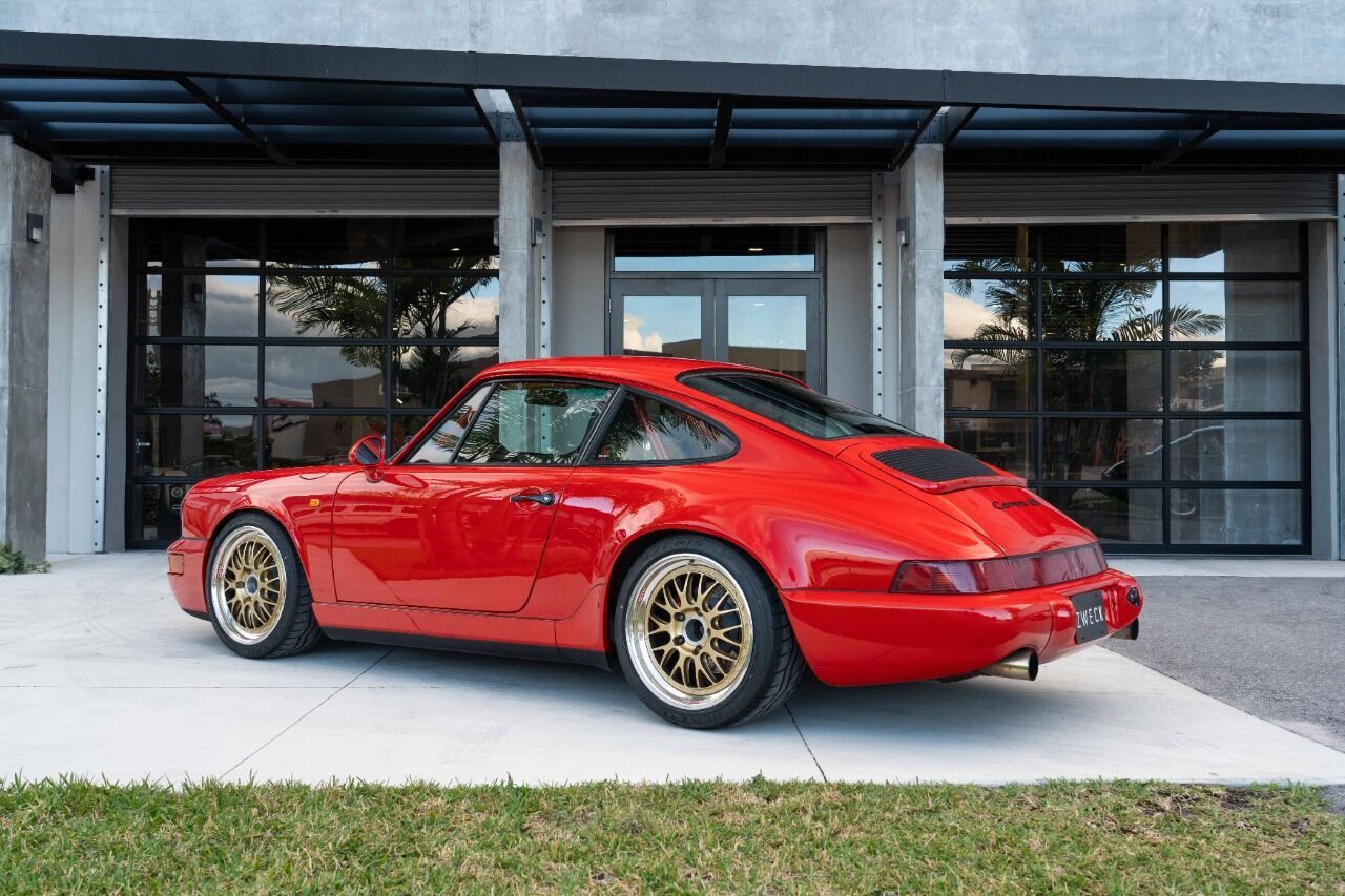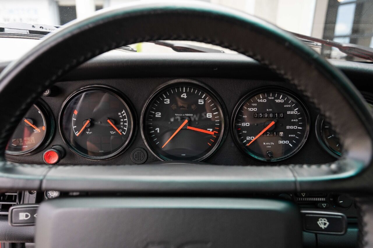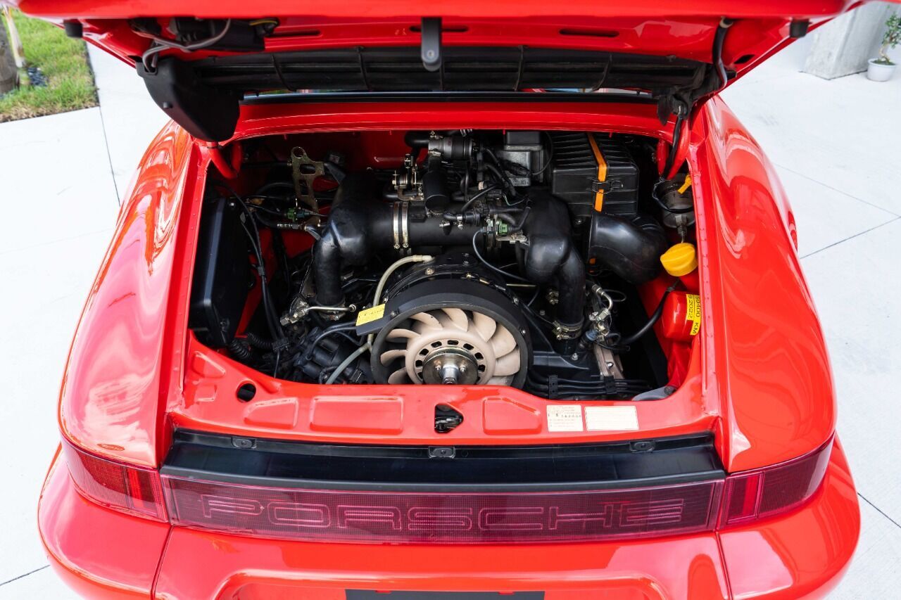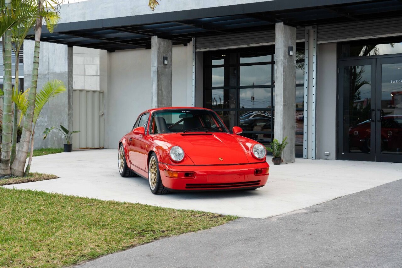 1992 964 RS - 37K miles (59K km) - rebuilt and upgraded 3.8L engine - complete header-back Cargraphic exhaust system - bolt-in roll cage. This Guards Red 964RS recently benefitted from a major maintenance service including valve cover gaskets, spark plugs, oil change, fan belt, brake fluid flush, and more. The engine features a 3.8L piston/cylinder set and sport cams, rebuilt by UK Porsche specialist Neil Bainbridge in 2017. The gearbox has been previously rebuilt as well. Imported to the US in September of 2023, this 3.8-powered RS is one of the strongest 964s we’ve encountered, and is ready for its next owner to enjoy immediately.