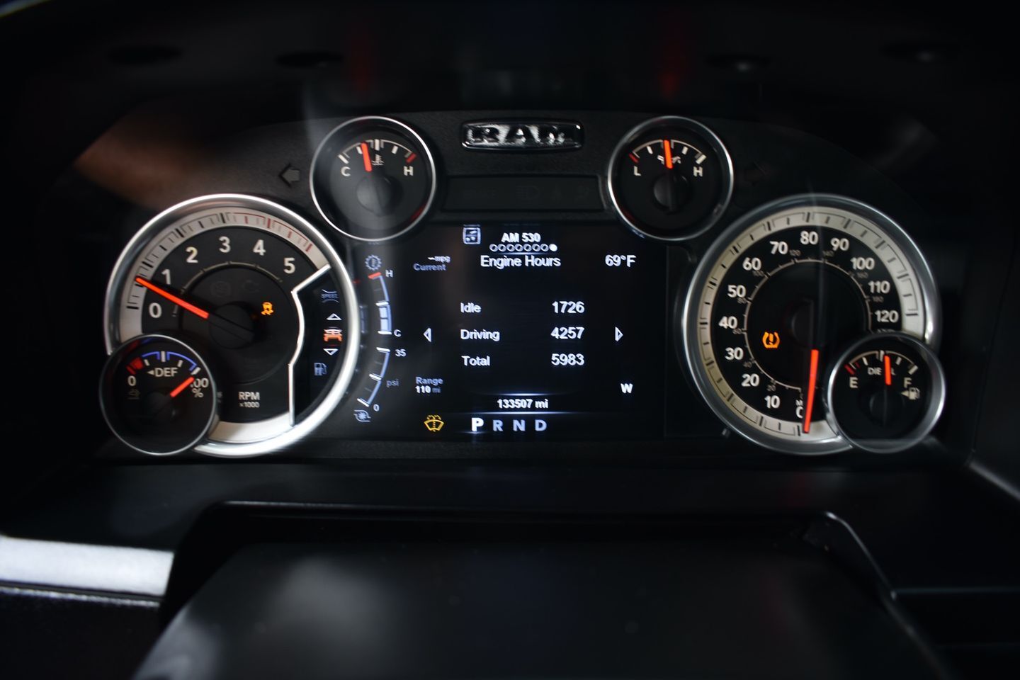You are looking at a 2015 Dodge Ram 2500 Crew Cab Laramie 4X4. It is powered with a 6.7L Cummins Diesel I-6 and six speed automatic transmission. It is equipped with dual power leather heated/ cooled seats,power trailer mirrors, power windows, power locks, tilt, cruise, spray in bed liner, factory gooseneck hitch mounts,receiver hitch,and factory navigation. Also included are the owner's manuals and one keyless remote.