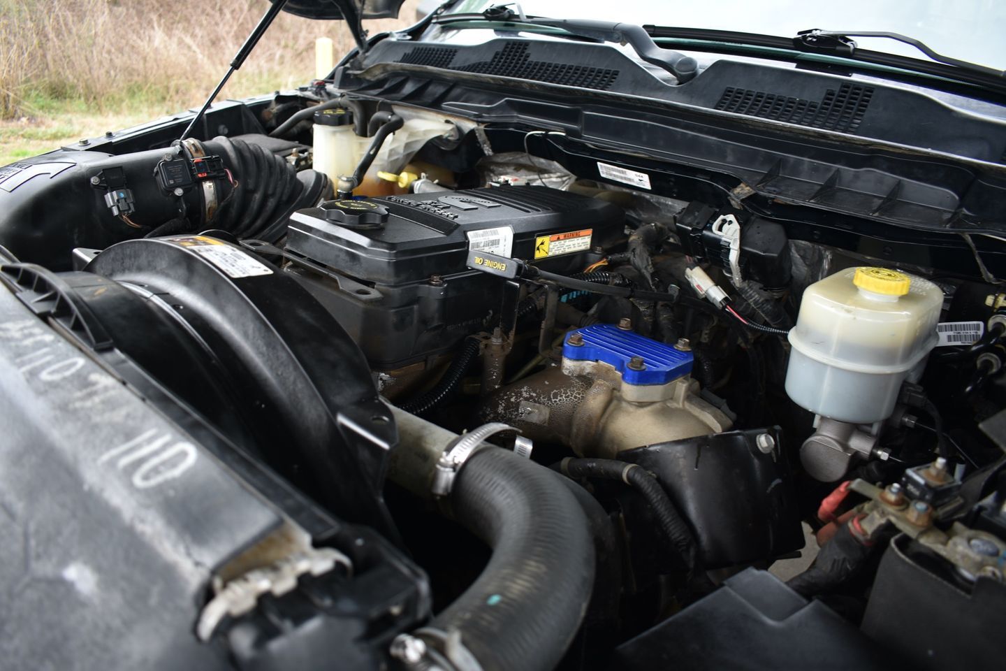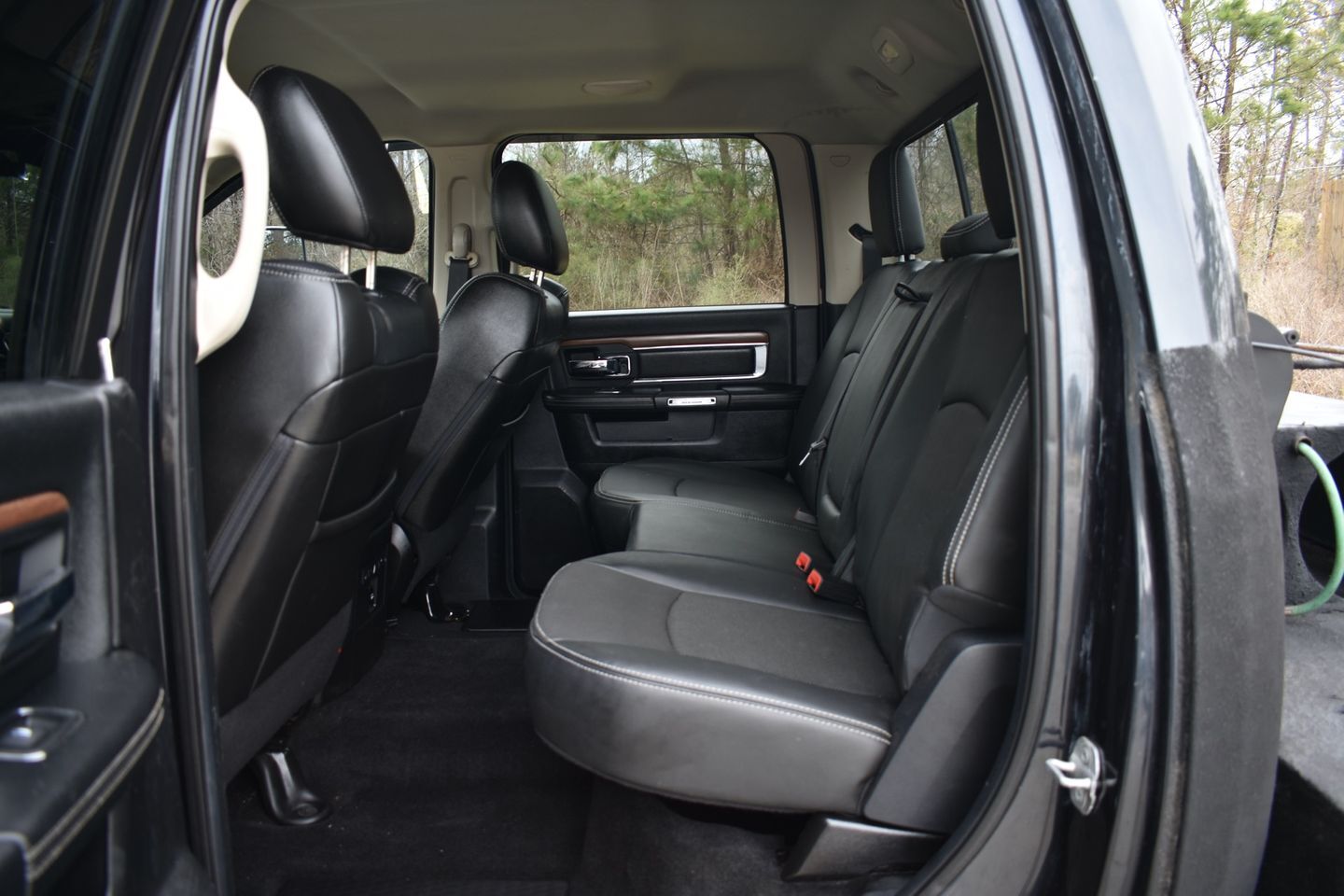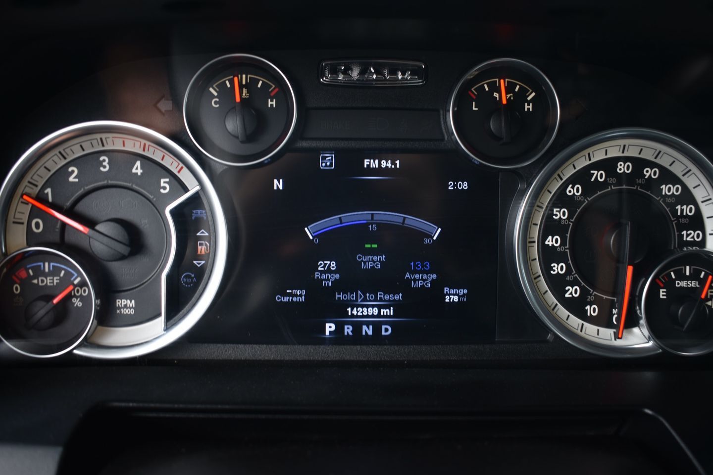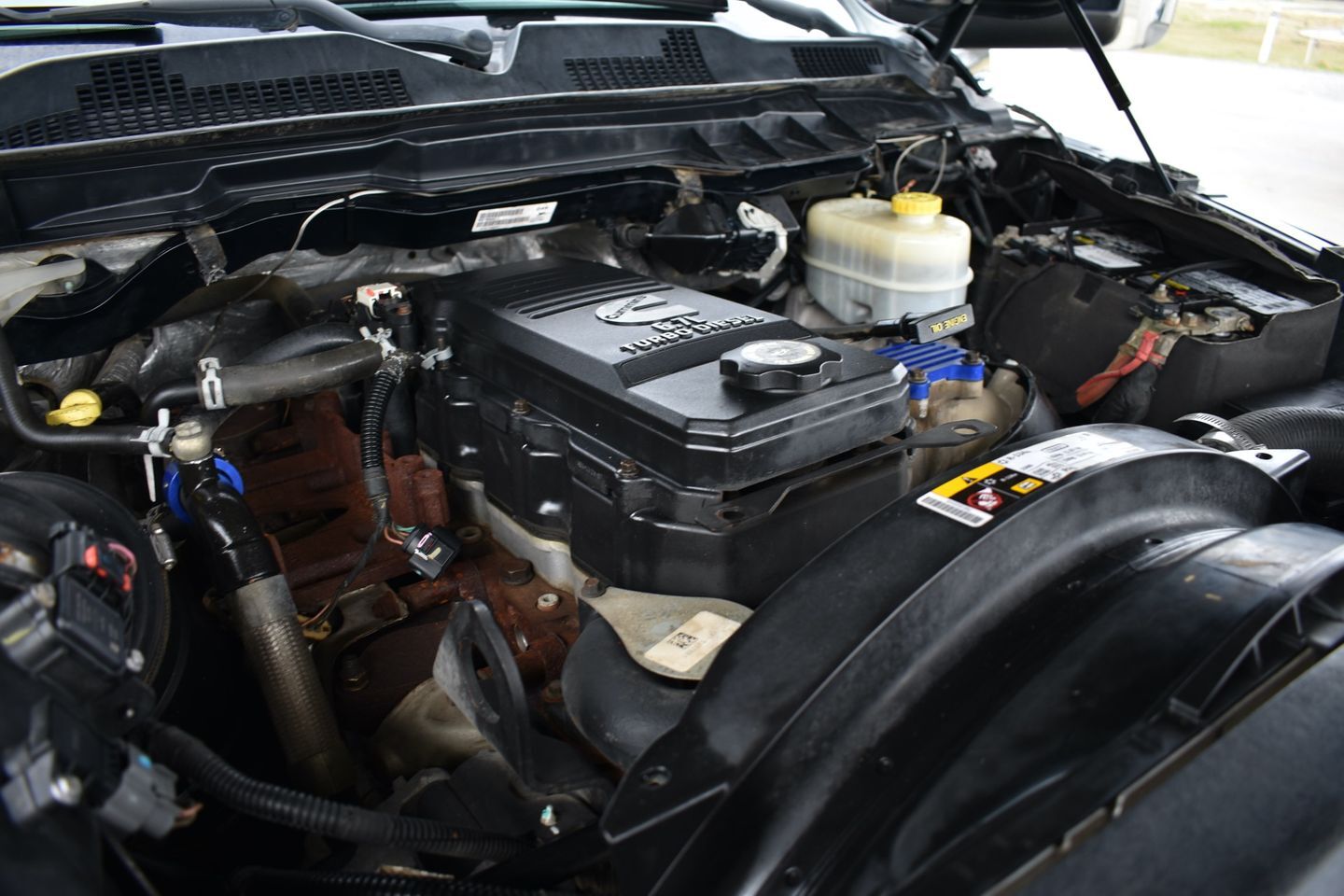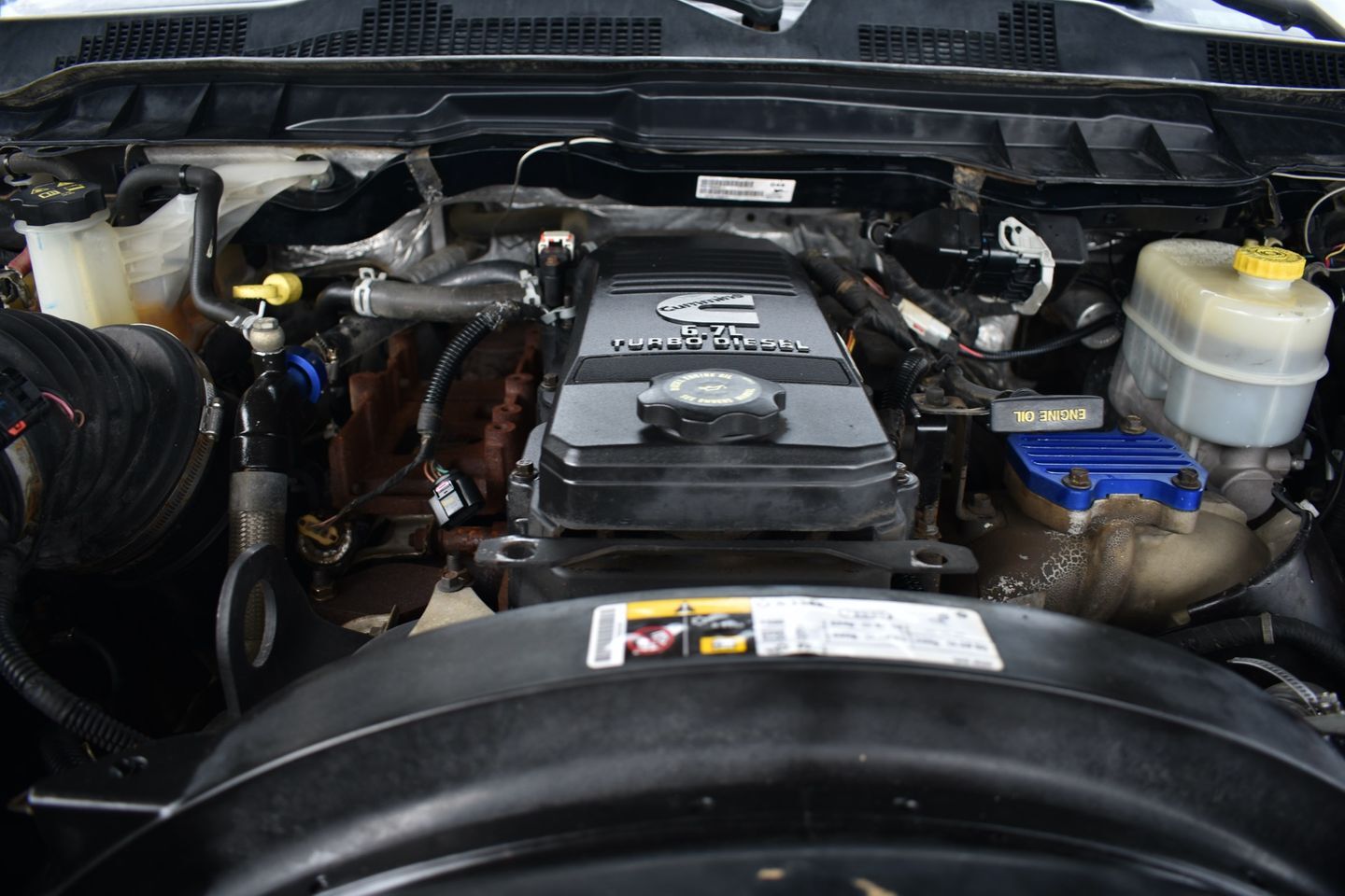 You are looking at a 2014 Dodge Ram 3500 Crew Cab Laramie 4X4. It is powered with a 6.7L Cummins Diesel I-6 and six speed automatic transmission. It is equipped with dual power leather heated/ cooled seats,power trailer mirrors, power windows, power locks, tilt, cruise, receiver hitch, and factory navigation. Also included are the owner's manuals and one keyless remote.