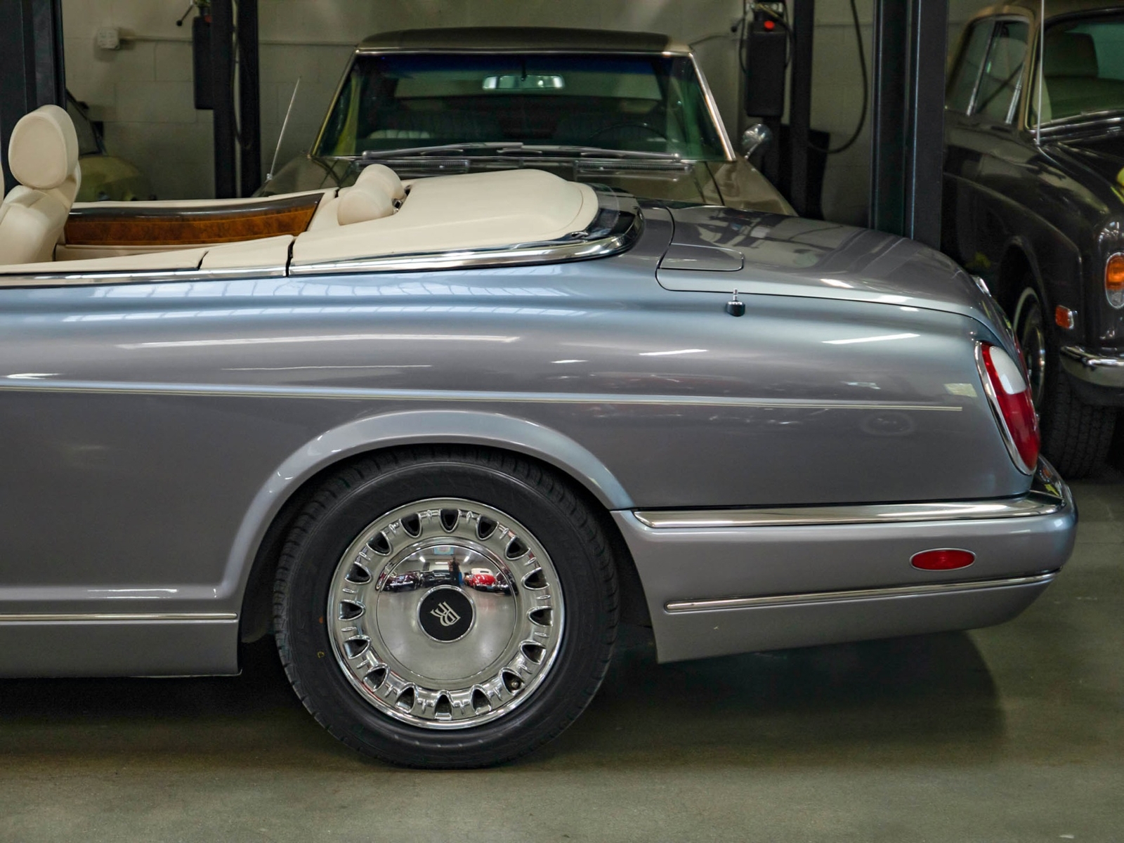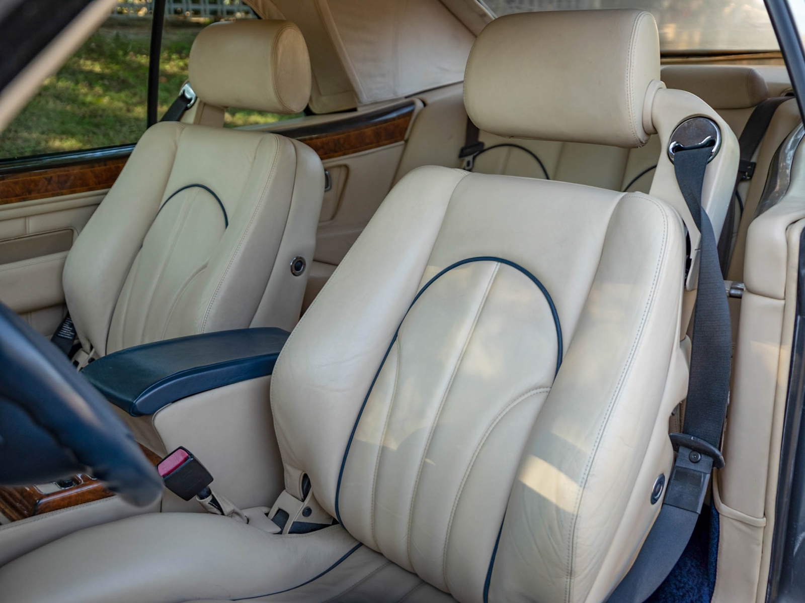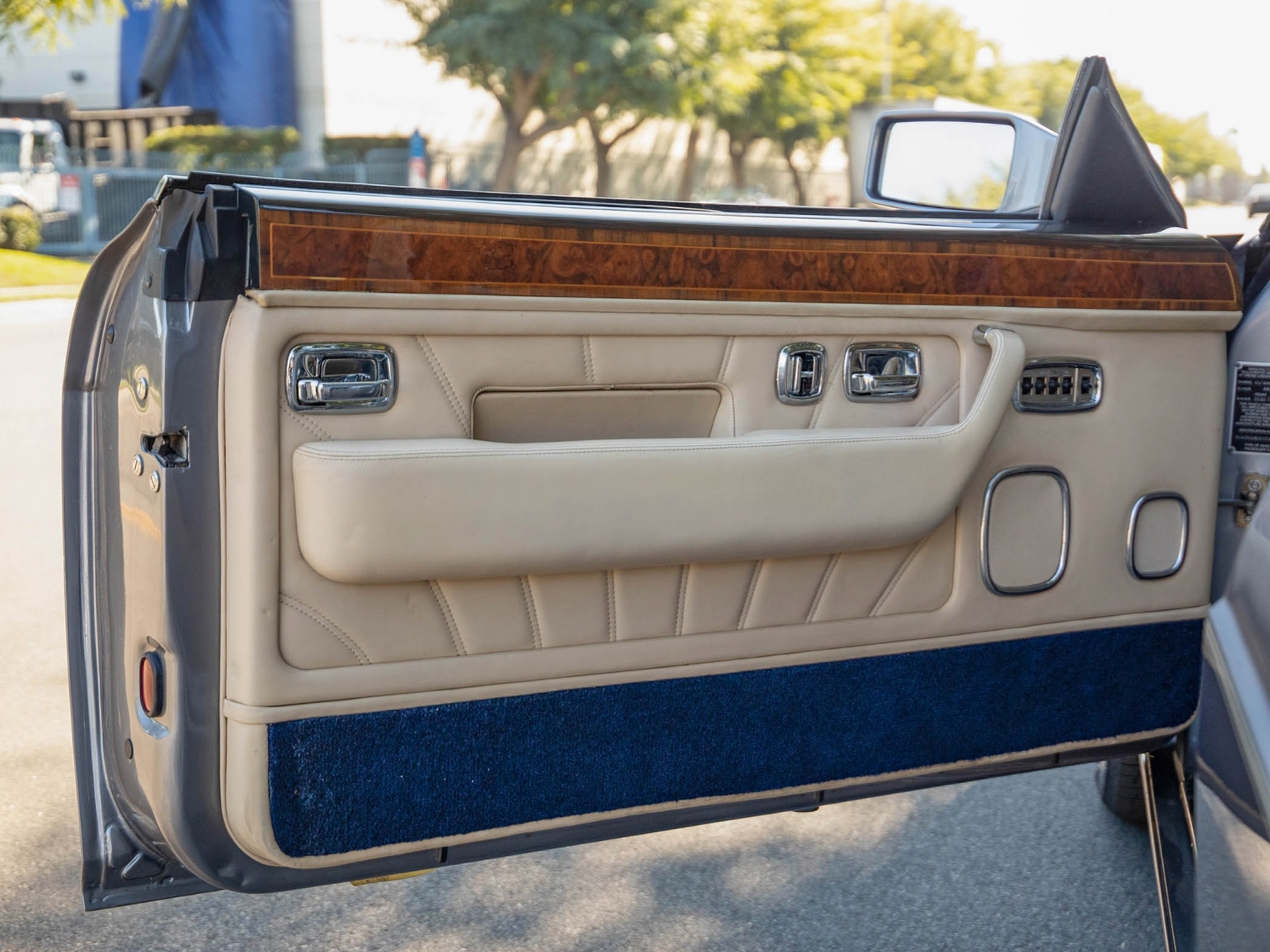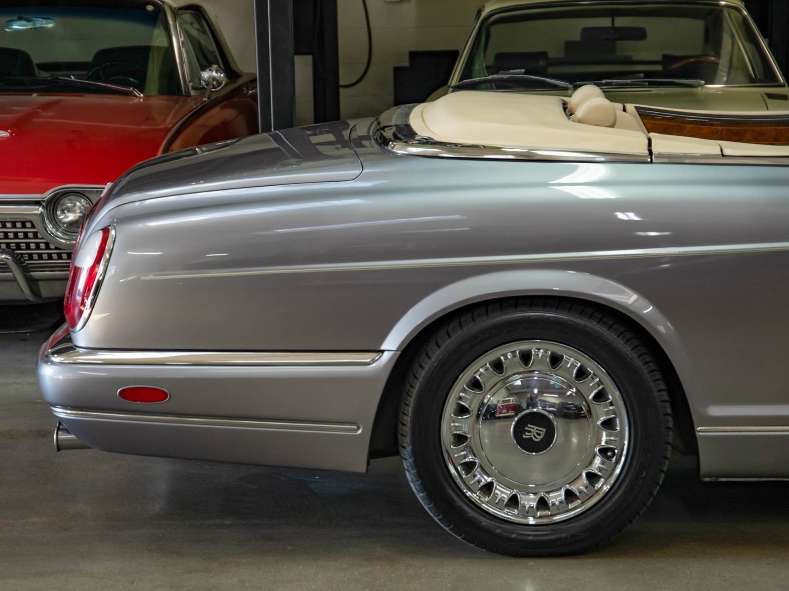 This particular example is superbly striking in its original and very rare and unique factory 'Silver Pearl Metallic' color with a beautiful matching and very striking convertible top and a gorgeous 'Ivory with Navy Blue Piping' leather interior with matching 'Wilton' wool carpeting and trunk and burled walnut dash with 17" factory chrome wheels. This is an obviously always garaged and covered example since new with only 17K original miles and with a clean CARFAX report showing extensive preventive maintenance and scheduled service history over the years, primarily at 'Symbolic Motor Car Co' of La Jolla, CA in the early years and in recent years at 'Bentley High Point' of High Point, NC. It was obviously owned by only very careful and meticulous drivers since new - never abused!