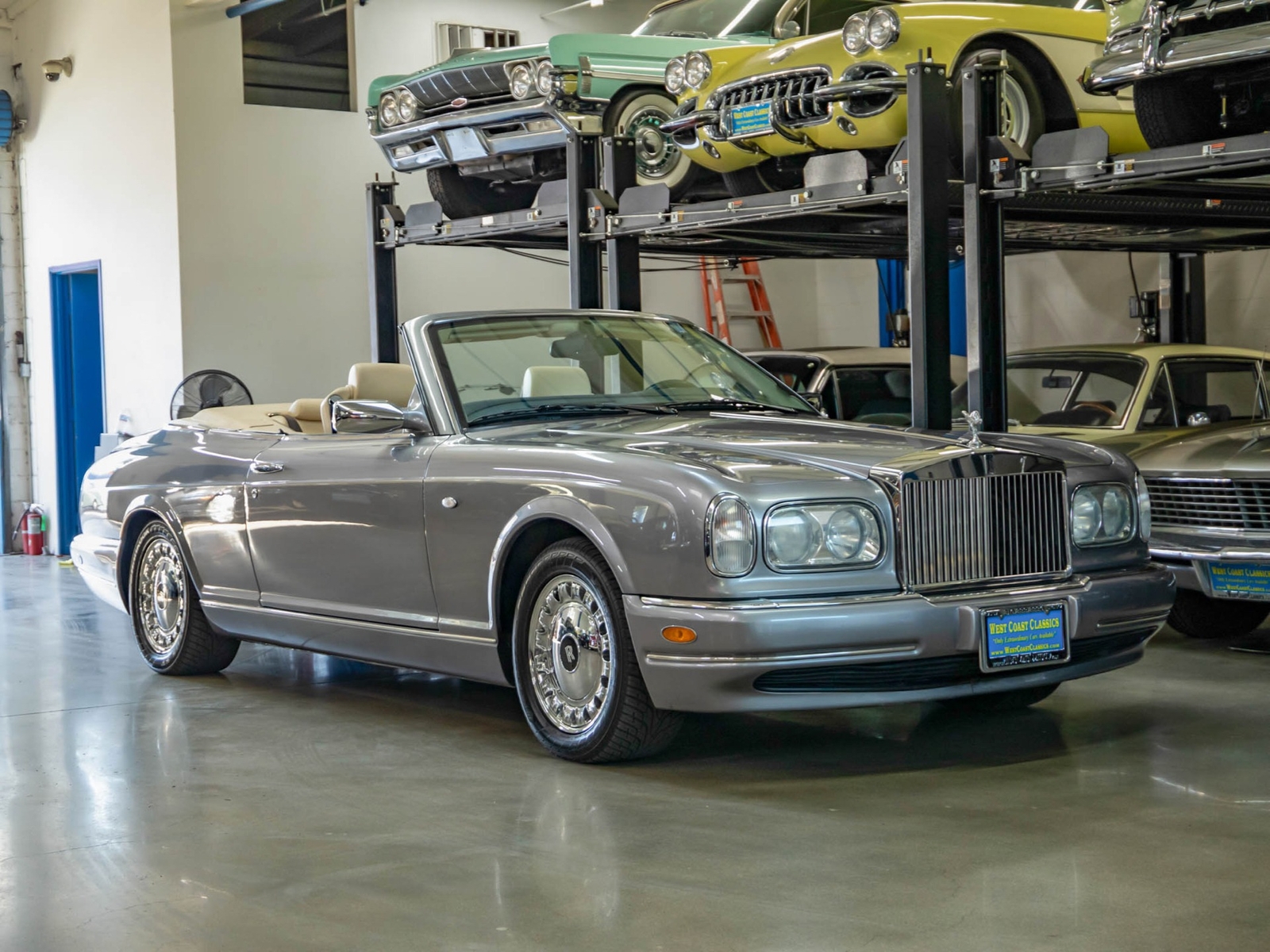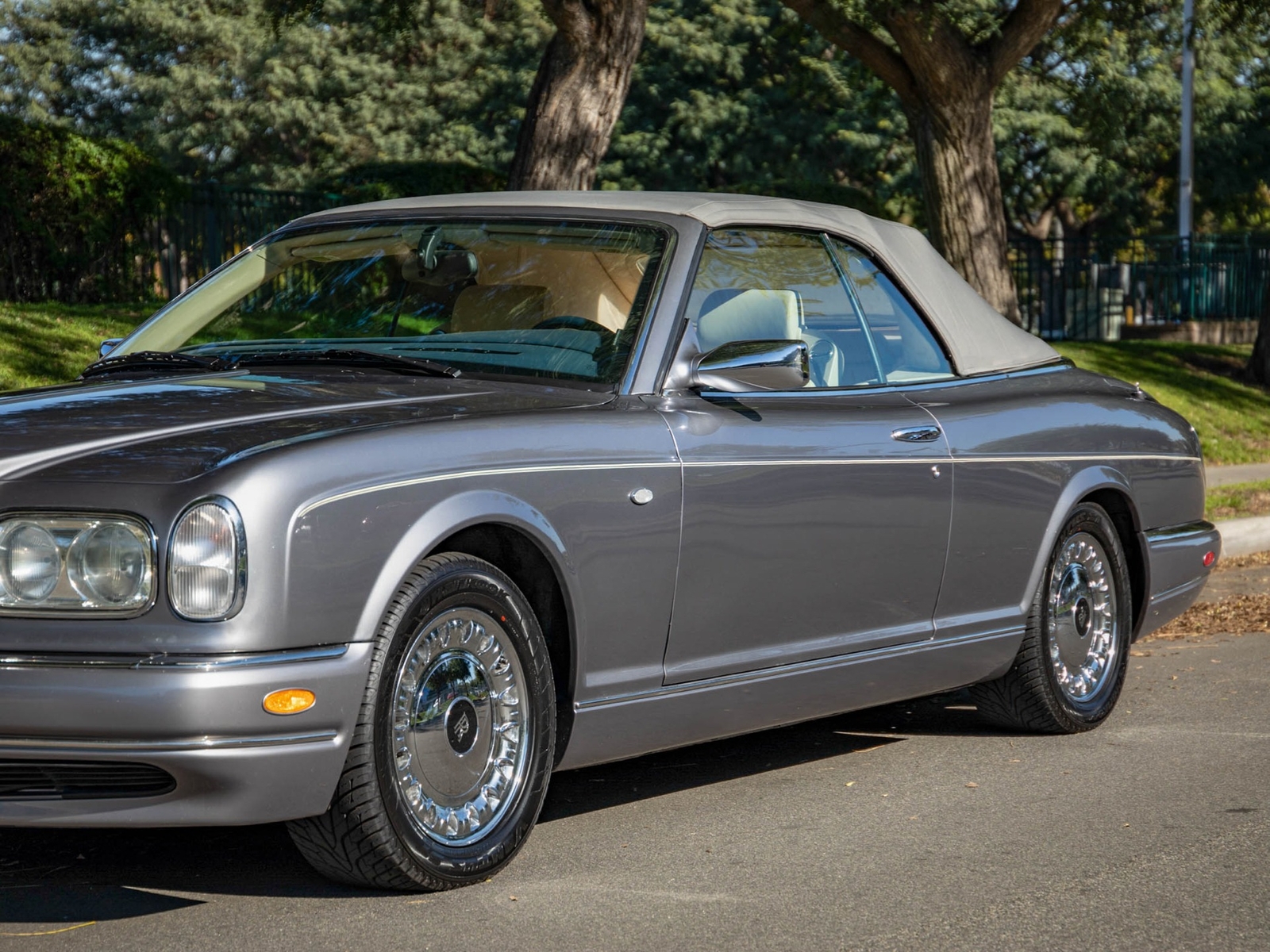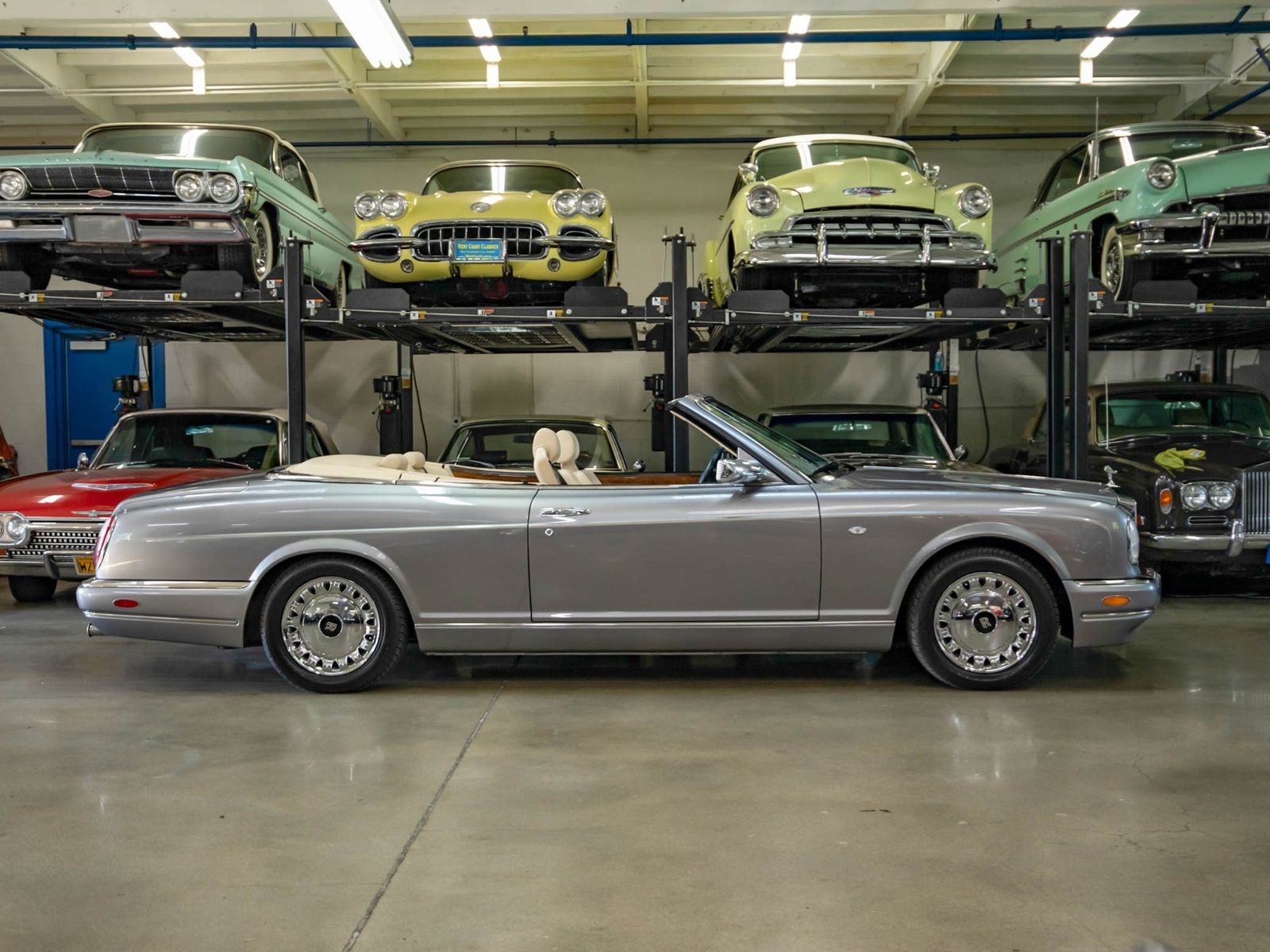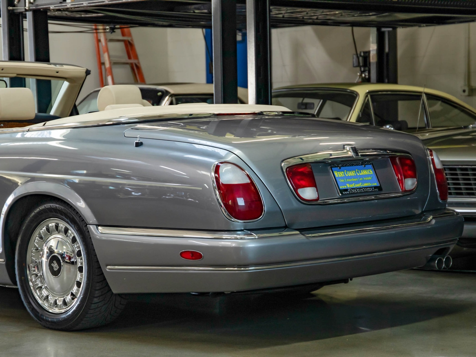 This particular example is superbly striking in its original and very rare and unique factory 'Silver Pearl Metallic' color with a beautiful matching and very striking convertible top and a gorgeous 'Ivory with Navy Blue Piping' leather interior with matching 'Wilton' wool carpeting and trunk and burled walnut dash with 17" factory chrome wheels. This is an obviously always garaged and covered example since new with only 17K original miles and with a clean CARFAX report showing extensive preventive maintenance and scheduled service history over the years, primarily at 'Symbolic Motor Car Co' of La Jolla, CA in the early years and in recent years at 'Bentley High Point' of High Point, NC. It was obviously owned by only very careful and meticulous drivers since new - never abused!