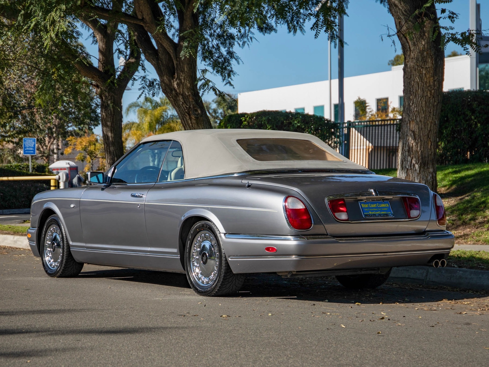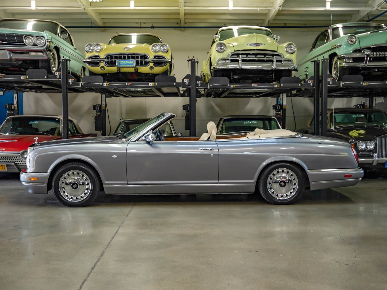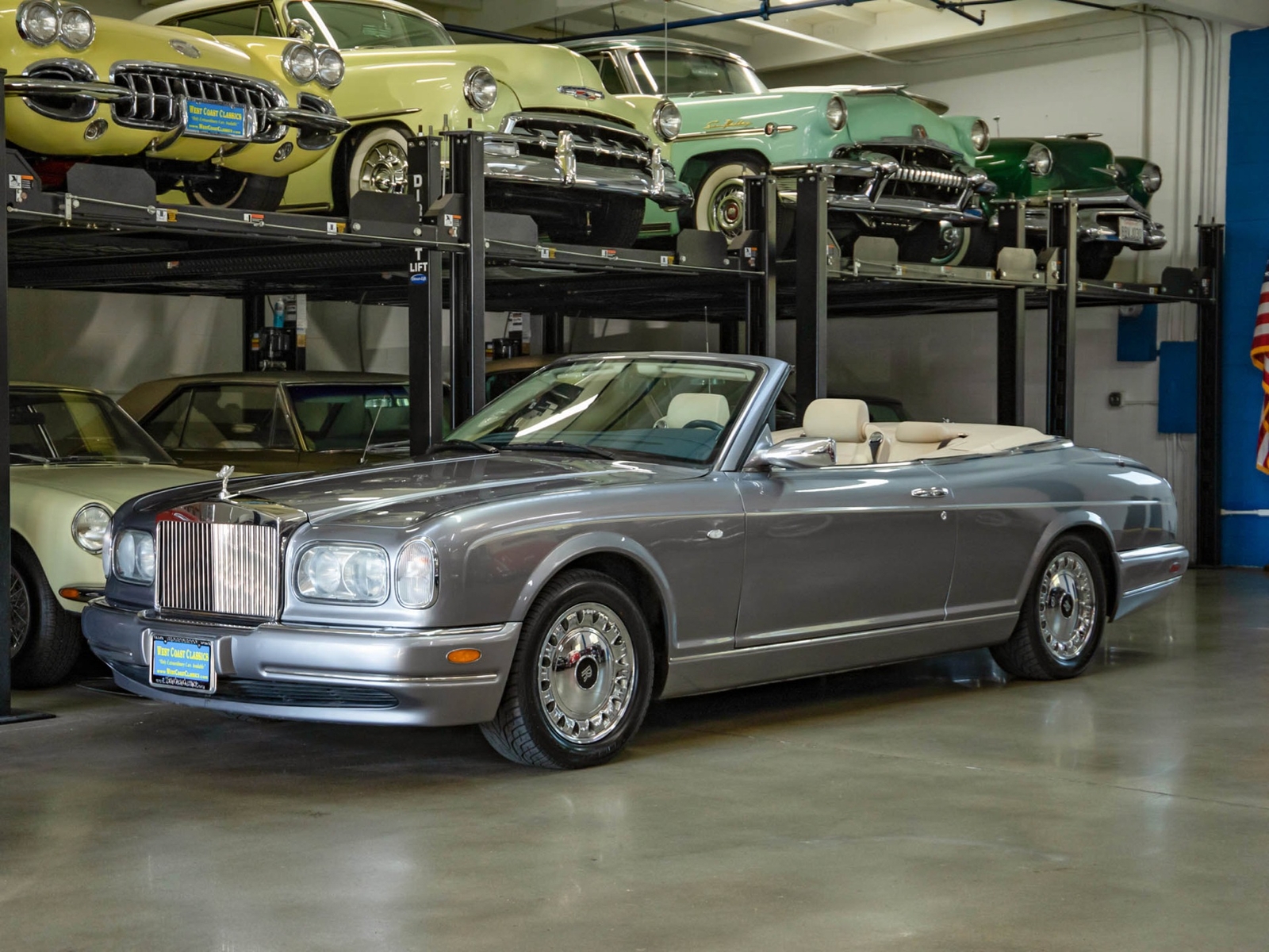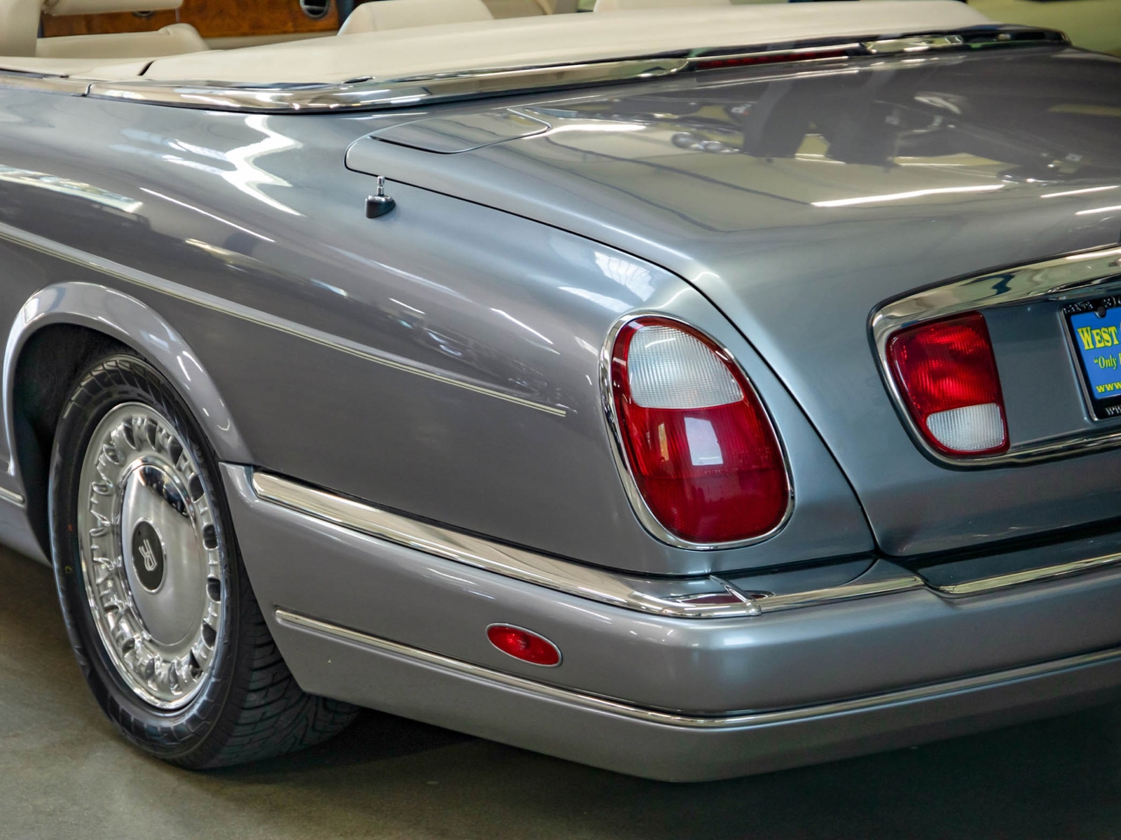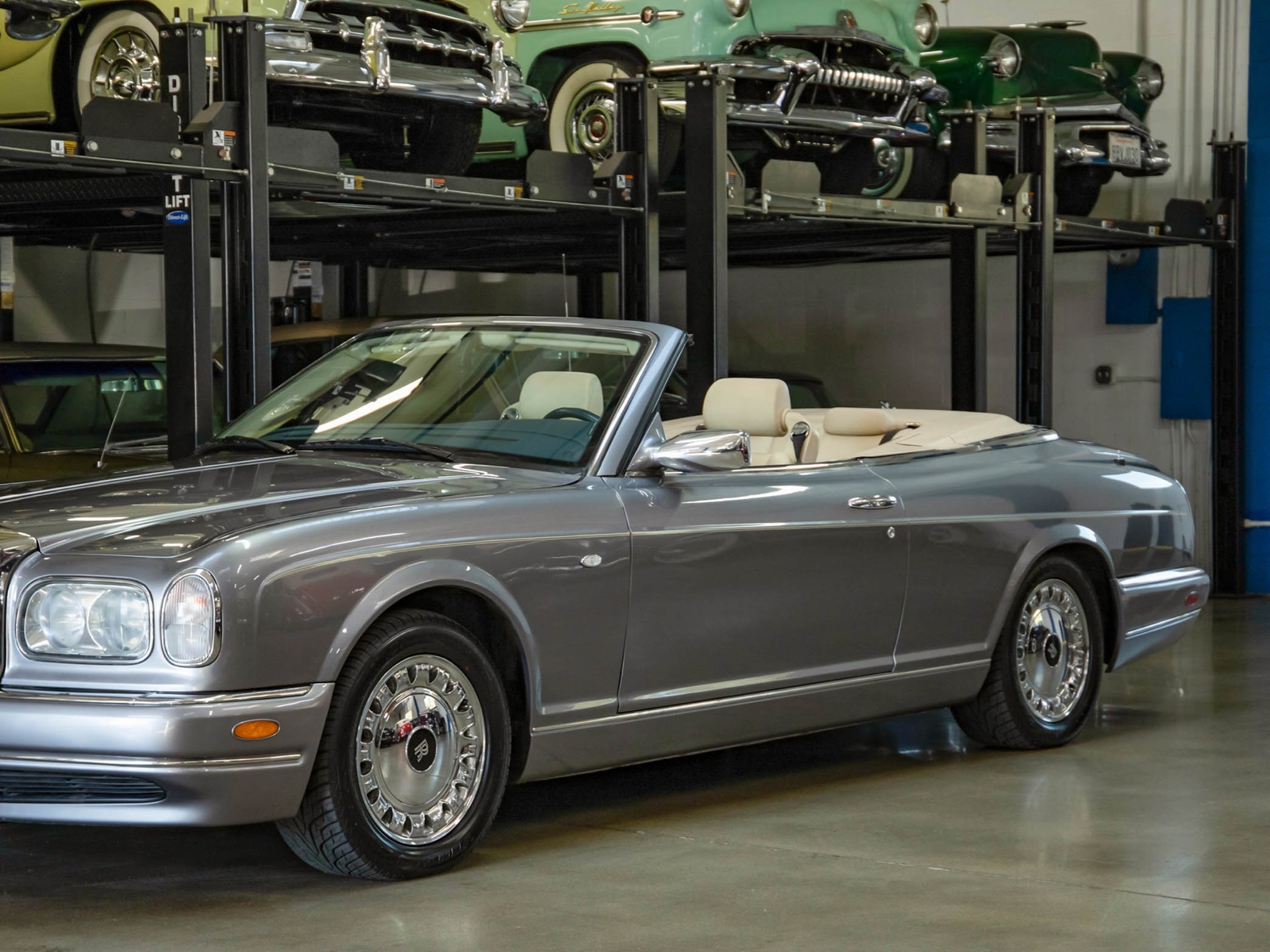 This particular example is superbly striking in its original and very rare and unique factory 'Silver Pearl Metallic' color with a beautiful matching and very striking convertible top and a gorgeous 'Ivory with Navy Blue Piping' leather interior with matching 'Wilton' wool carpeting and trunk and burled walnut dash with 17" factory chrome wheels. This is an obviously always garaged and covered example since new with only 17K original miles and with a clean CARFAX report showing extensive preventive maintenance and scheduled service history over the years, primarily at 'Symbolic Motor Car Co' of La Jolla, CA in the early years and in recent years at 'Bentley High Point' of High Point, NC. It was obviously owned by only very careful and meticulous drivers since new - never abused!