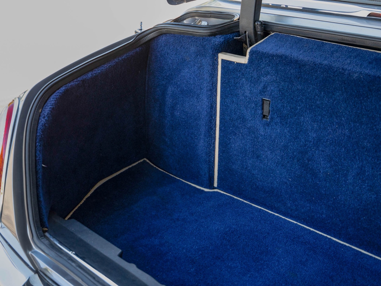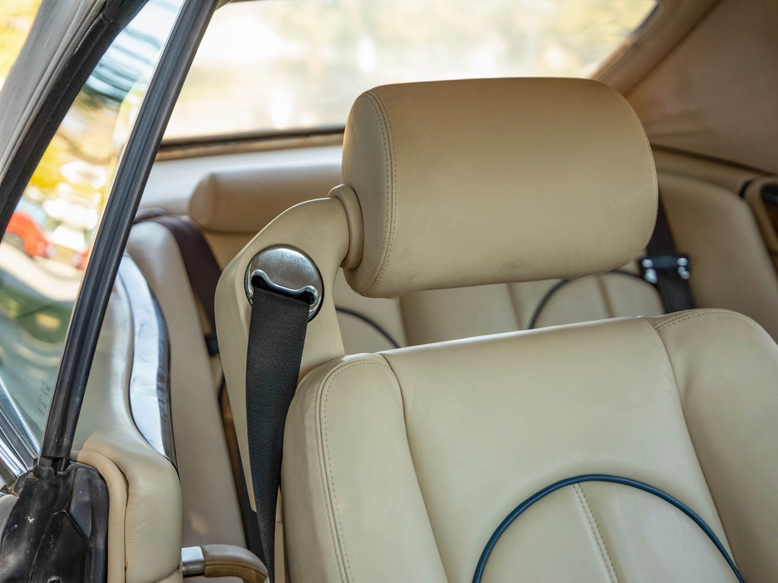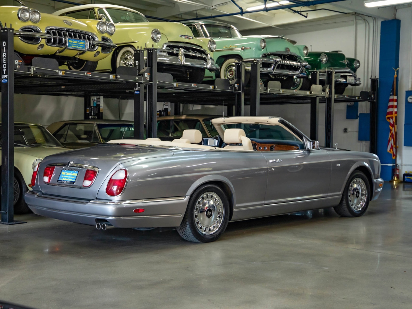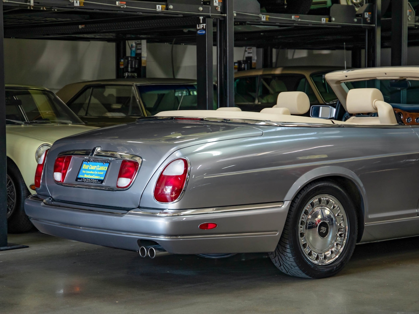 This particular example is superbly striking in its original and very rare and unique factory 'Silver Pearl Metallic' color with a beautiful matching and very striking convertible top and a gorgeous 'Ivory with Navy Blue Piping' leather interior with matching 'Wilton' wool carpeting and trunk and burled walnut dash with 17" factory chrome wheels. This is an obviously always garaged and covered example since new with only 17K original miles and with a clean CARFAX report showing extensive preventive maintenance and scheduled service history over the years, primarily at 'Symbolic Motor Car Co' of La Jolla, CA in the early years and in recent years at 'Bentley High Point' of High Point, NC. It was obviously owned by only very careful and meticulous drivers since new - never abused!