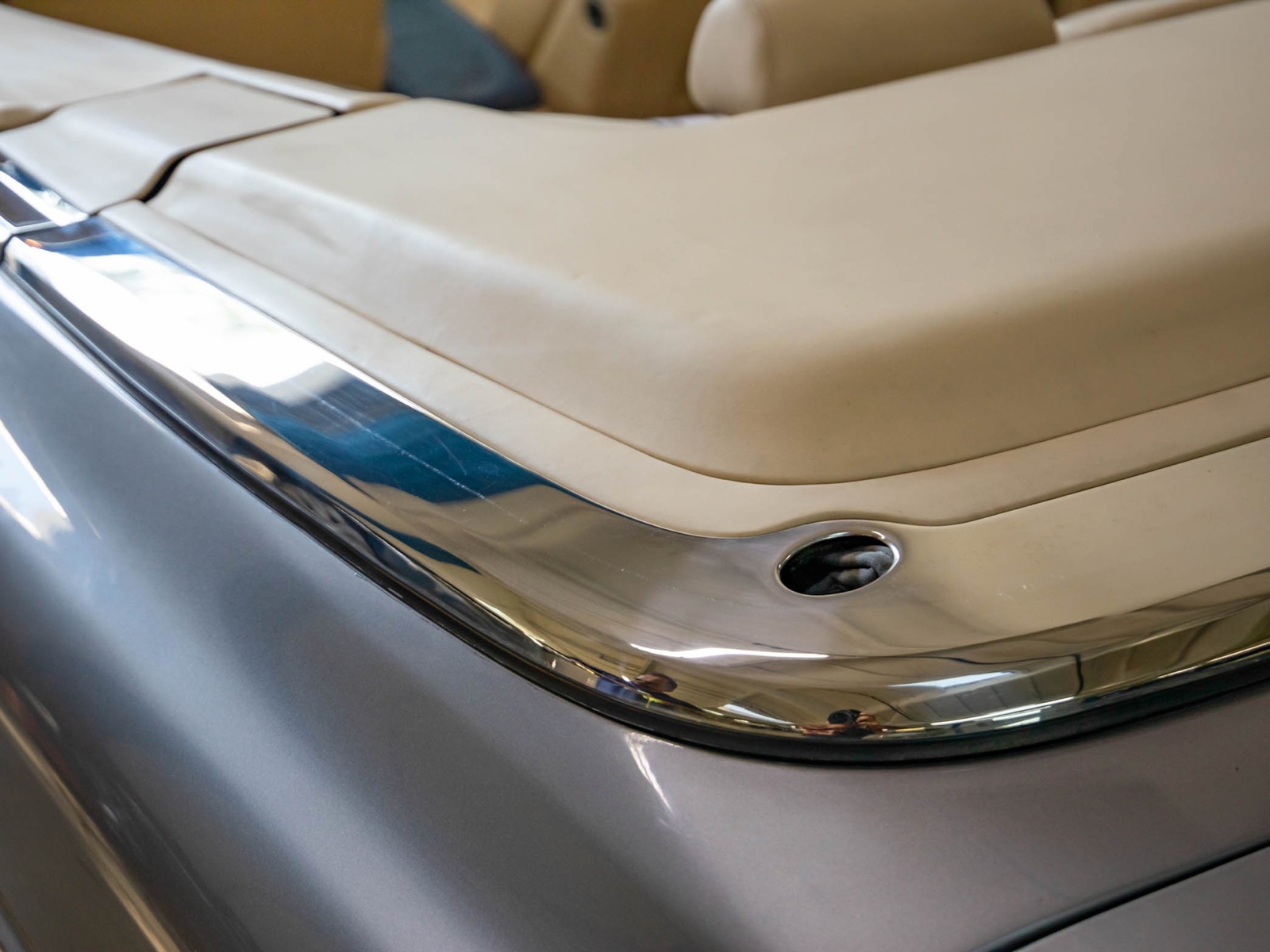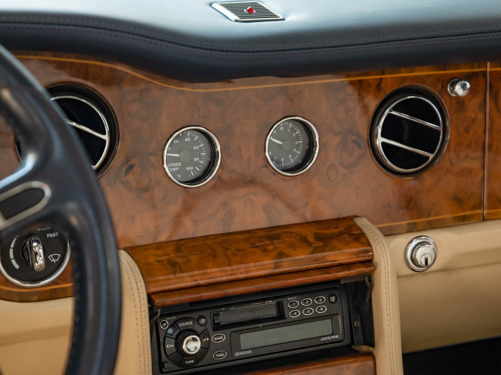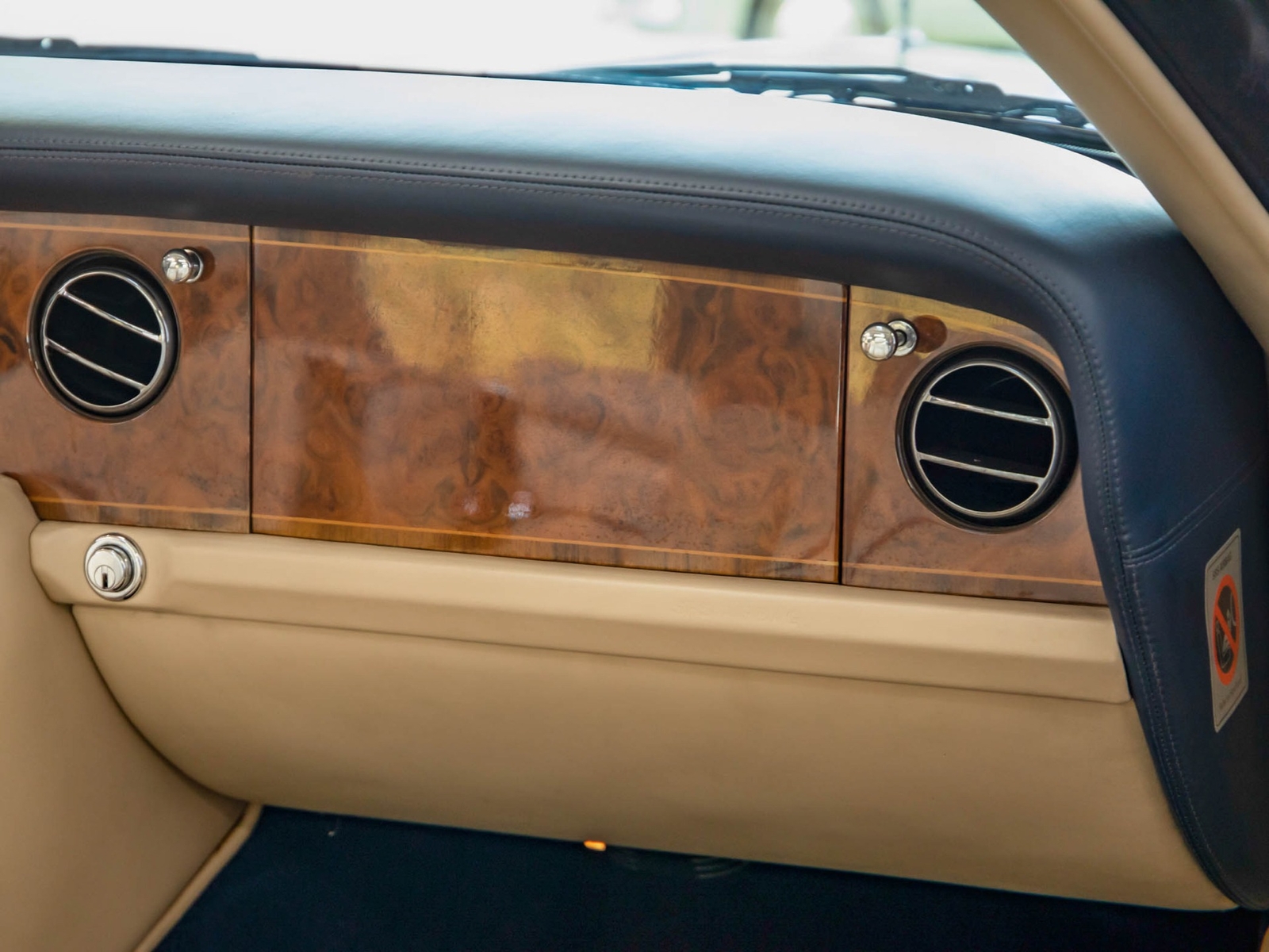 For the Corniche V styling cues were taken from the Rolls Royce Silver Seraph sedan, but it shares little mechanically with that BMW engined car. Instead, the Corniche's body was set onto the older platform used for the similarly-styled Bentley Azure making it the first and only Rolls-Royce developed from a Bentley rather than the other way around. The 2000-2002 Corniche V is powered by a 6.75 L 325HP turbocharged V8 and came outfitted with every luxury and refinement characteristic of a Rolls-Royce with Connolly leather interior, Wilton wool carpets, chrome gauges and a wide choice of exotic wood trims. Dual automatic temperature control, a six-disc CD changer, automatic headlamps and automatic ride control are standard and all Corniches were completely hand-built and to most enthusiasts the car was considered an even more exclusive car than the by now completely VW owned Azure. The very last Rolls-Royce Corniche rolled off the assembly line on August 30, 2002 and this was the very last Rolls-Royce to be made at the Crewe plant before it was turned over entirely to the production of Bentley models now owned by VW. Only 374 fifth-generation Corniches were ever built.