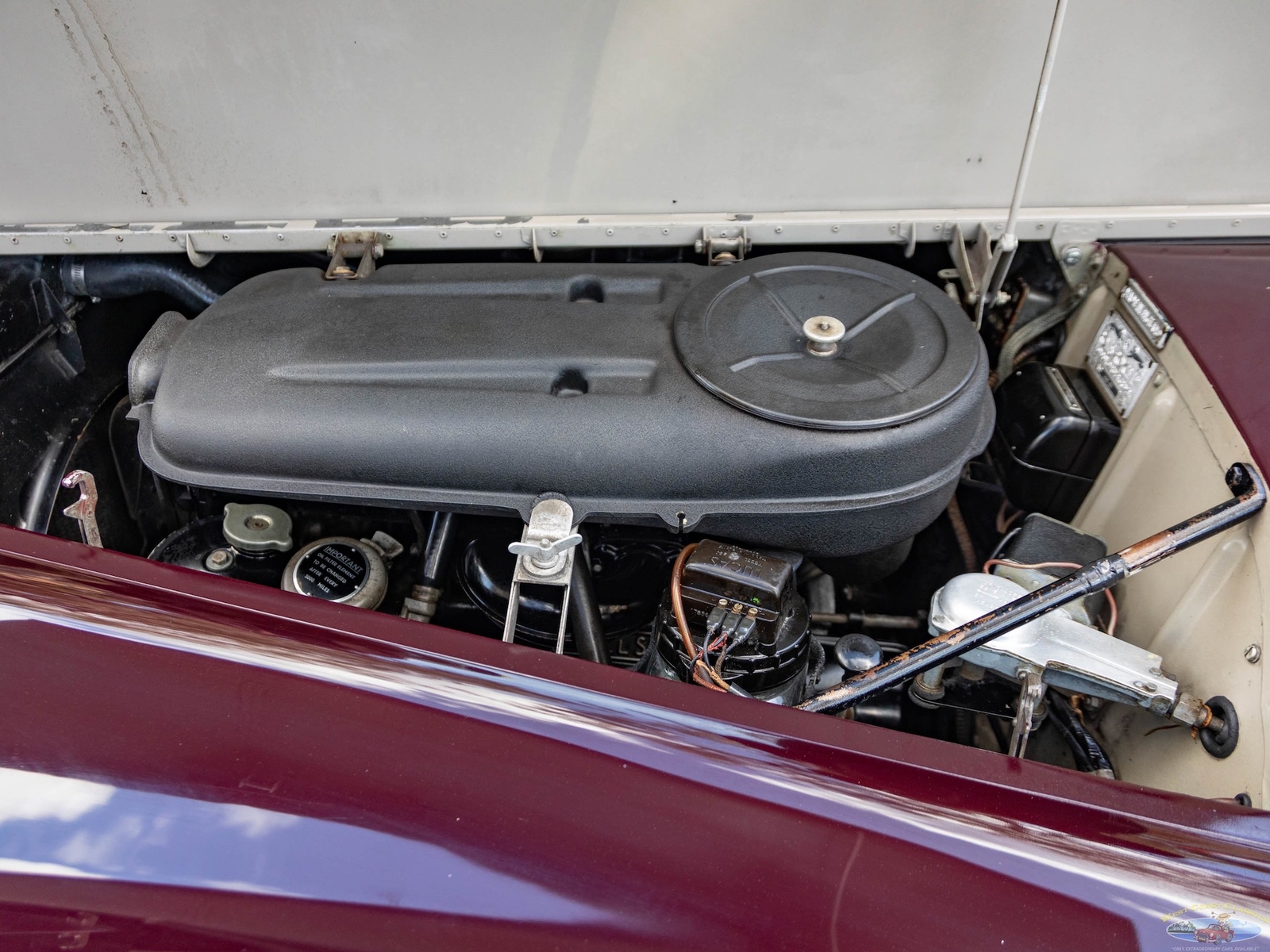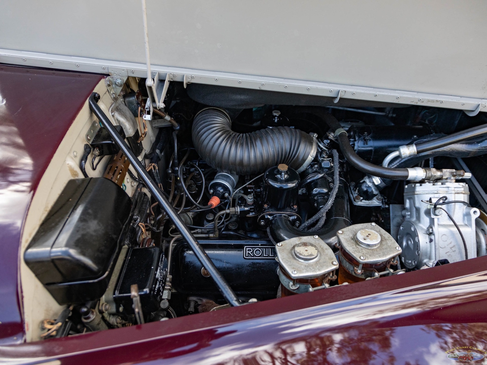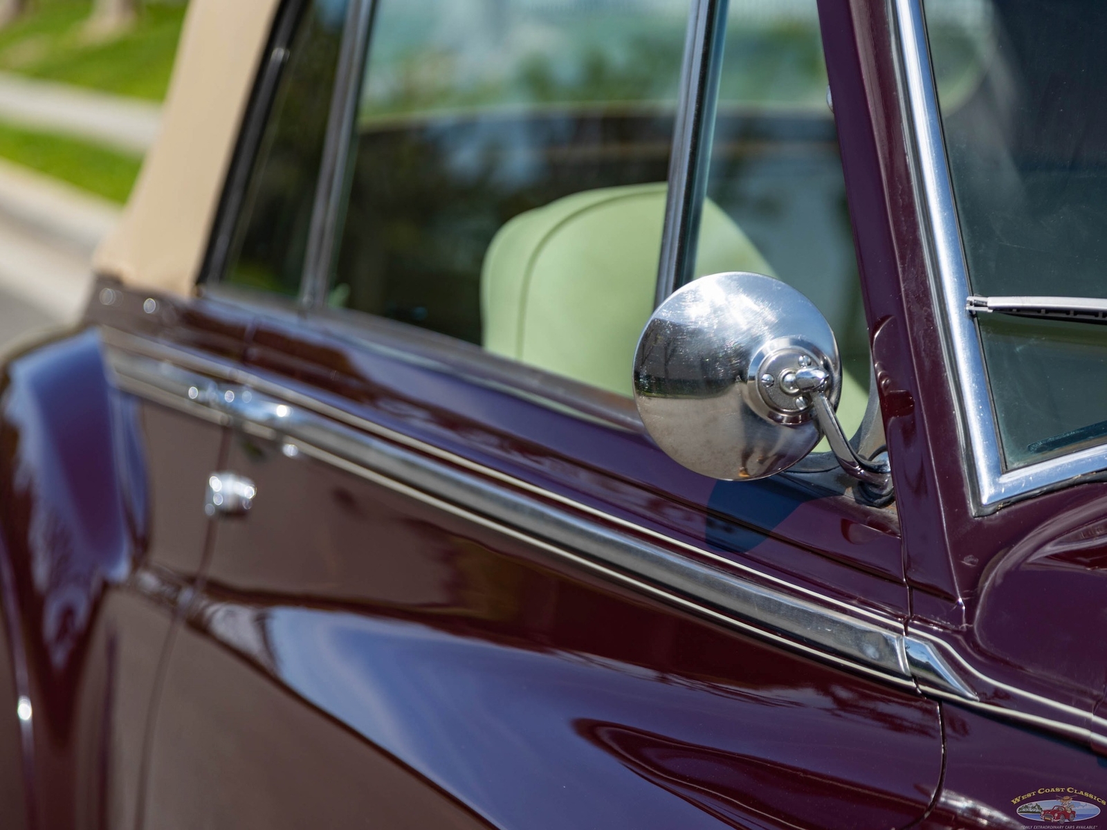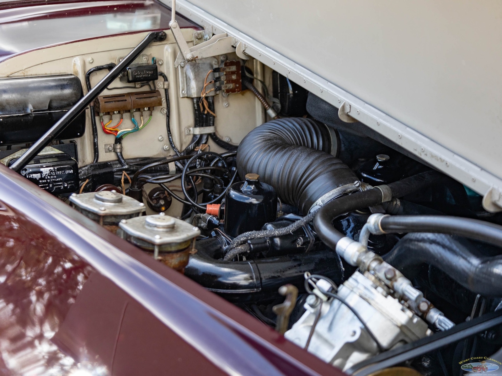 In a striking 'Regal Royal Burgundy' color with all new reupholstered leather interior - 32K original miles & equipped with factory power windows & original air conditioning equipment & rare altimeter & dashboard mounted tachometer by Mulliner to replace the left side cubby box, original AM radio, rear folding picnic tables, white wall tires and rare 'Kneeling Lady' mascot.