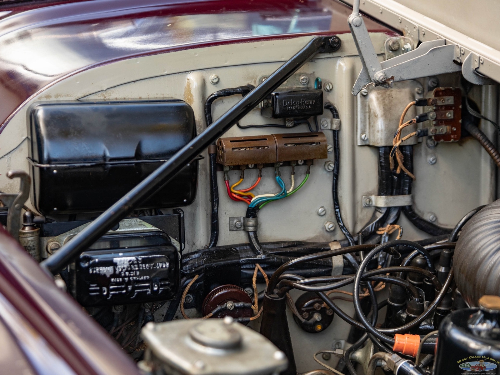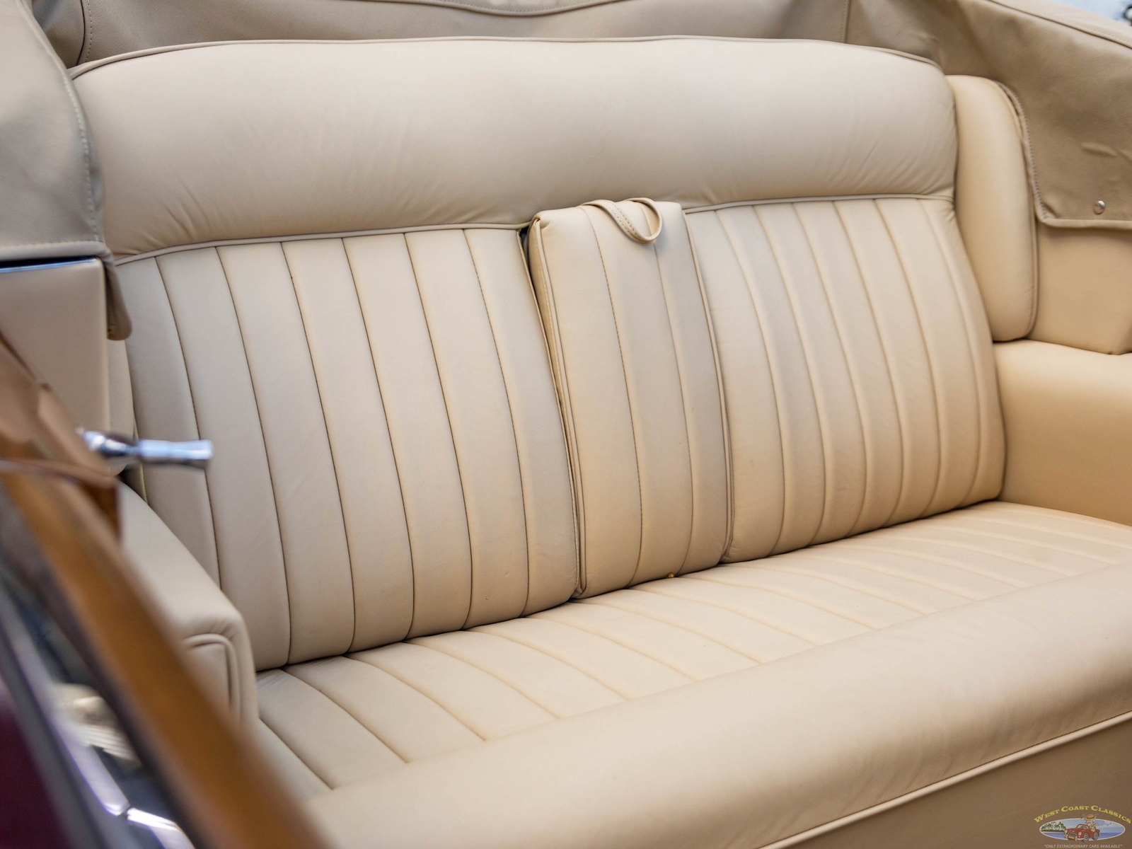 This car boasts many surprisingly still all original components which are a testament to its low mileage and fastidiously kept and obviously climate controlled storage and garaging. The features still intact include its original leather wrapped rear leaf springs, small tool box and spare wheel with all it's original heavy tools; inspection lamp, spare wheel inflation trap & clamp, tire pump, wheel brace & jack, still unused and in their rightful place in the trunk.