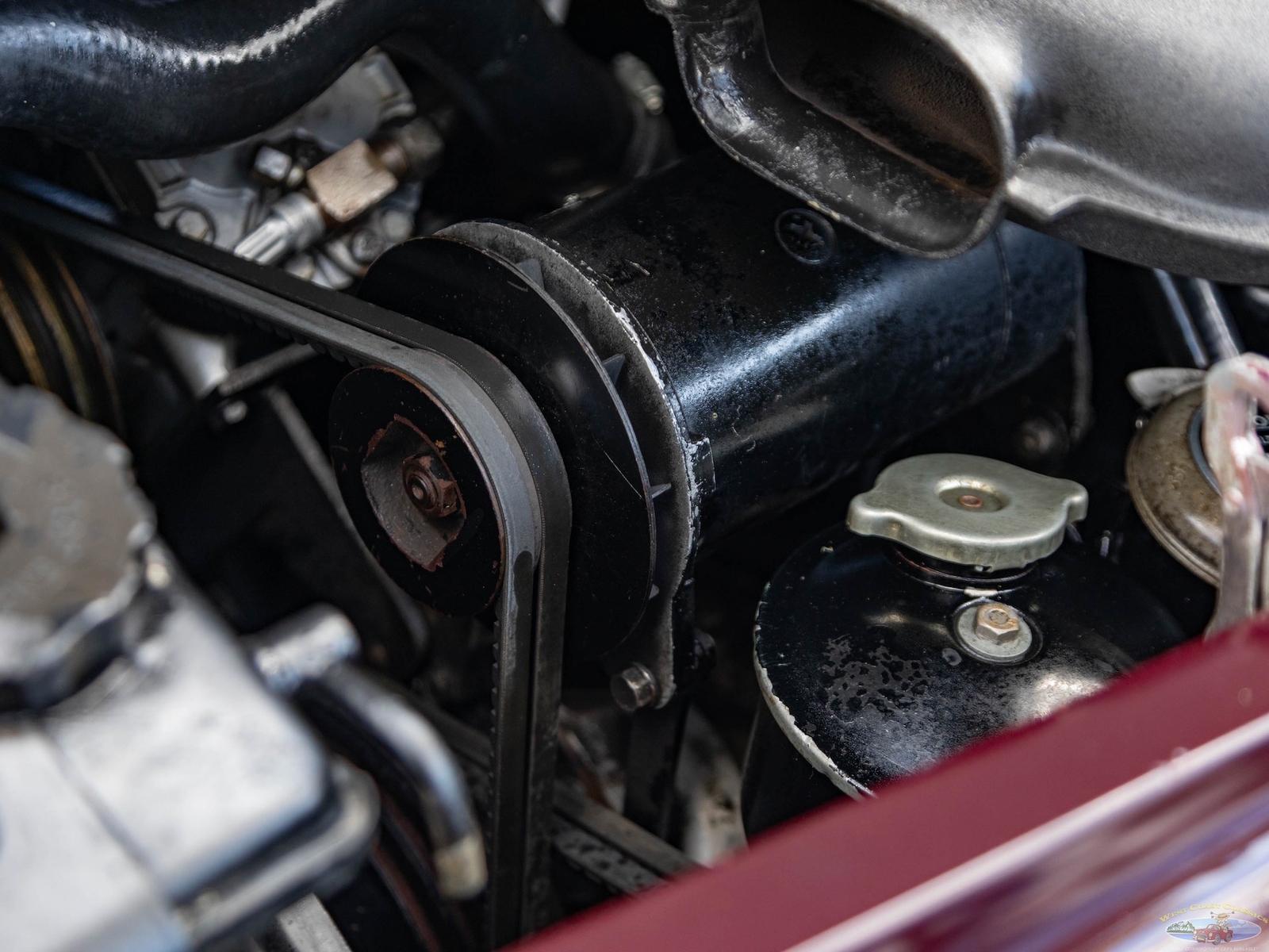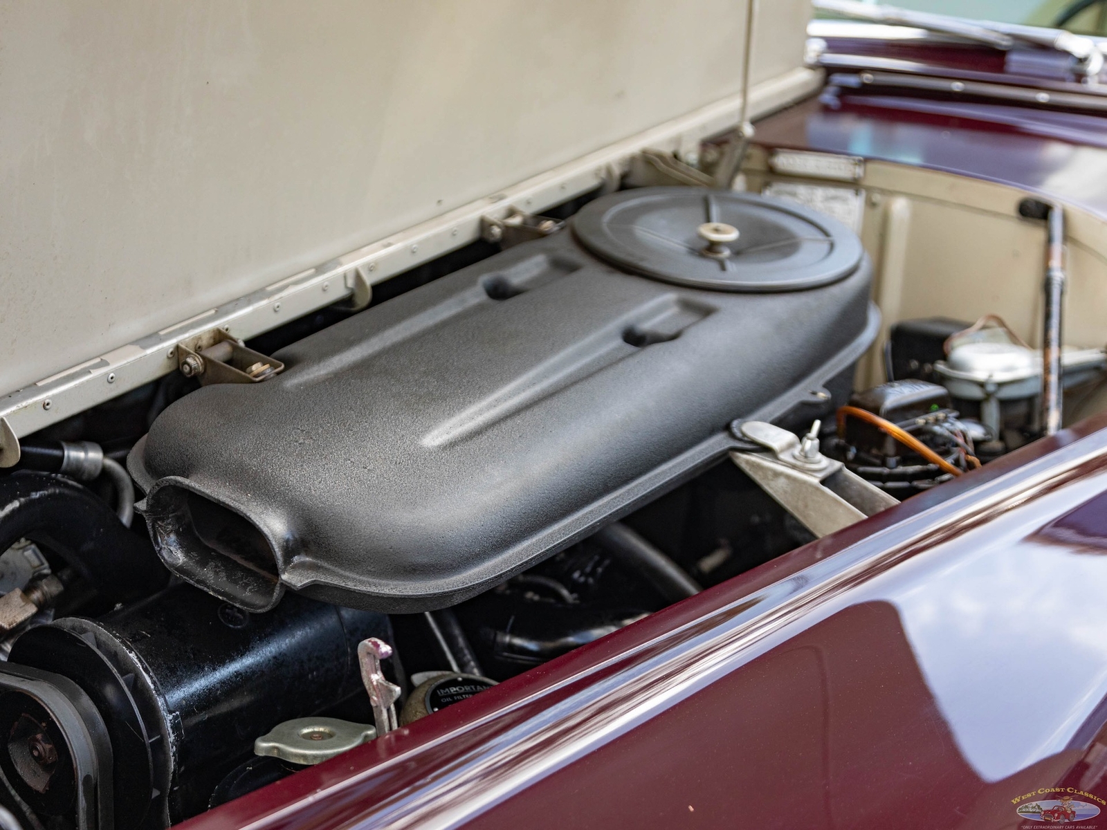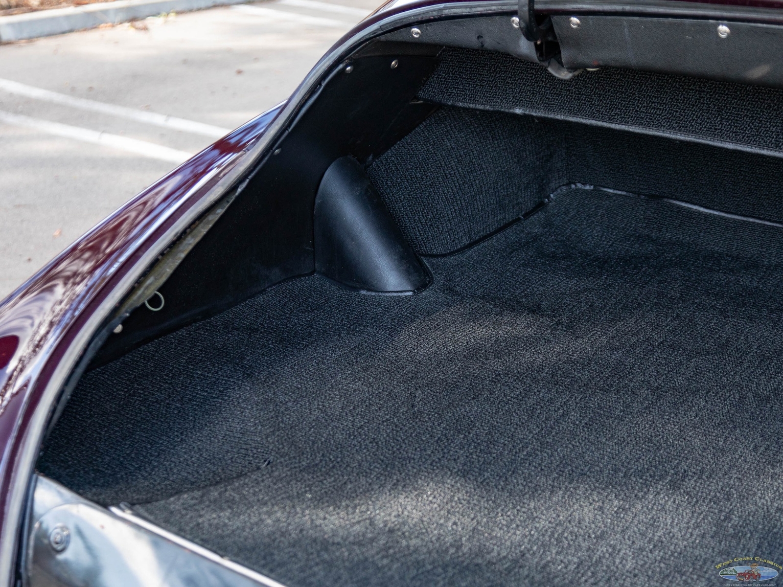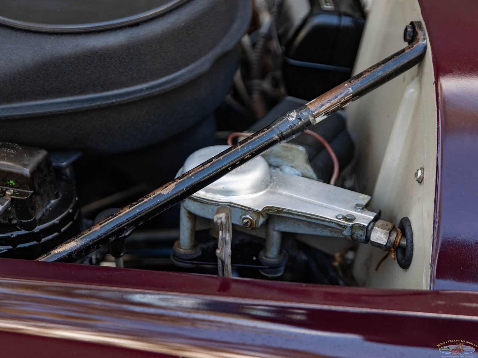 It has rare options of the altimeter and tachometer, air conditioning, 'Sundym' reflective tinted glass, White sided tubeless tires, power brakes and power windows. Finished in an exceptionally striking color of 'Regal Burgundy' with a newly upholstered 'Tan' color Connolly hides interior. The original seats are truly still as comfortable as the day they were new, firm and supportive and recently reupholstered. The carpeting and the car's original convertible top and mohair headliner have also been restored with no expense spared and the car show superb maintenance and care from its three long time owners.