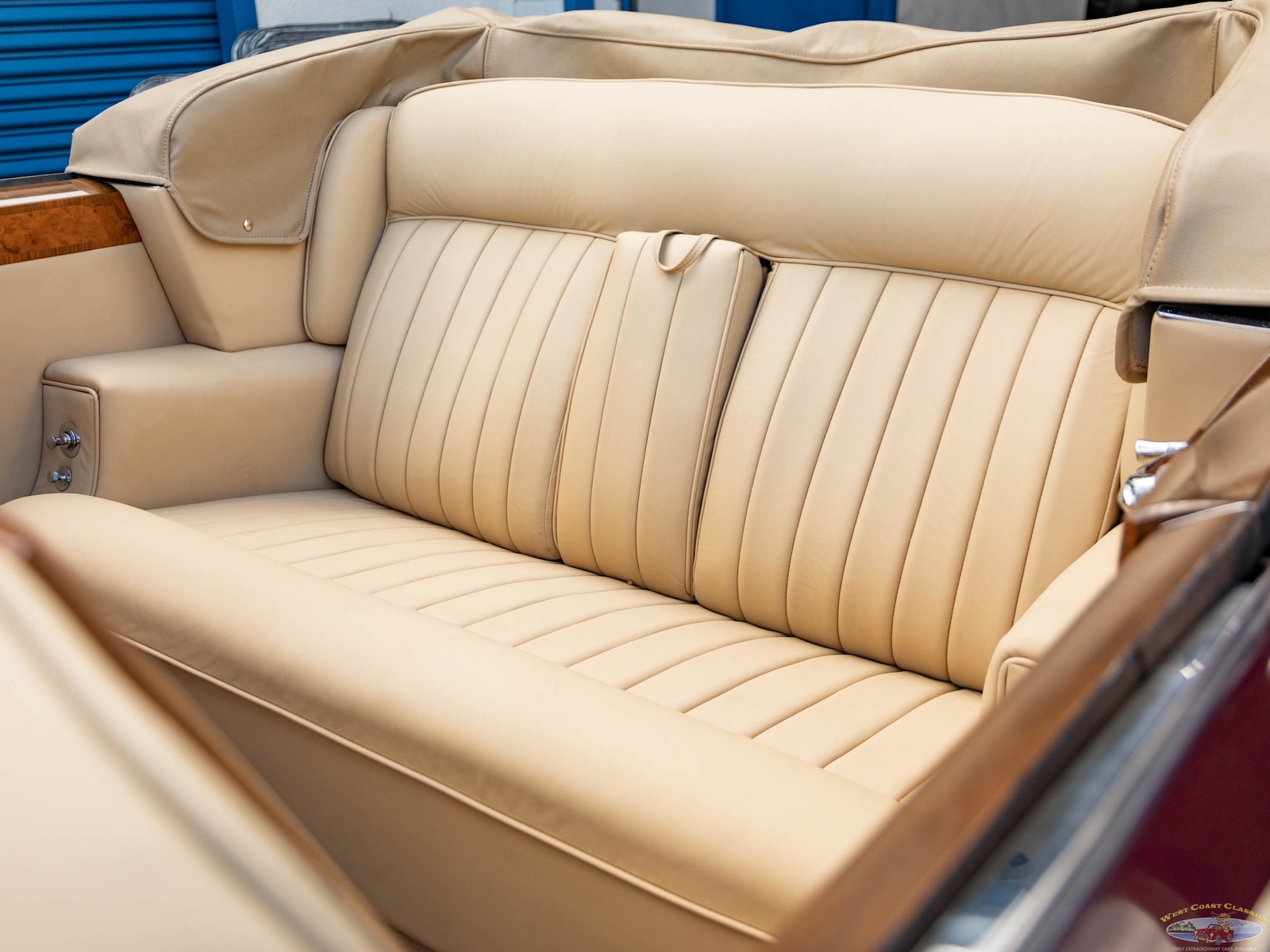 The beautiful and highly striking paint color of 'Regal Burgundy' exterior paint is in exceptional condition and extraordinarily striking with only very minor imperfections only noticeable upon very close inspection! The car has matching Rolls Royce hubcaps and as previously stated all new leather hides, top and carpeting. Connolly leather is legendary for being exclusive