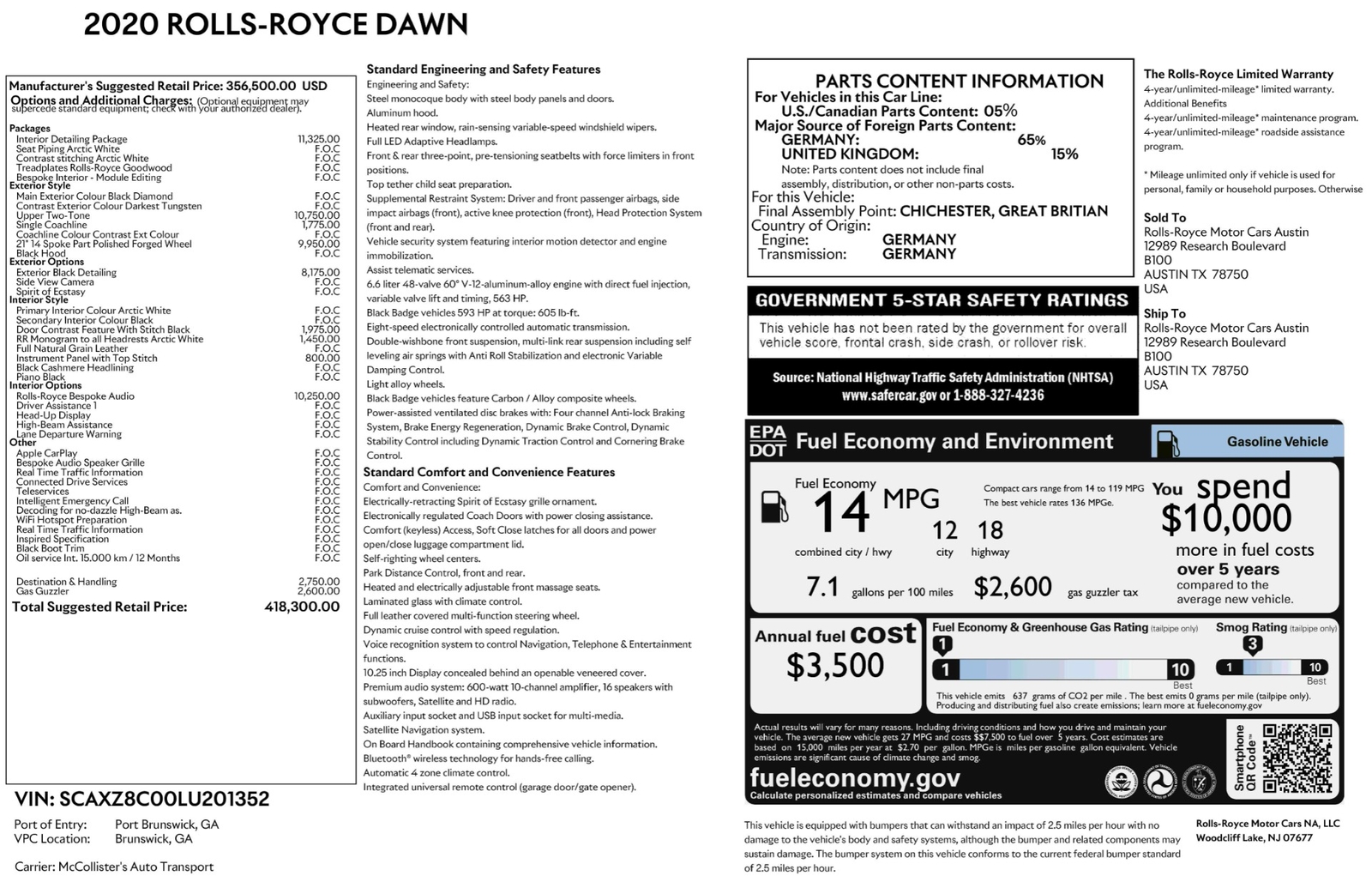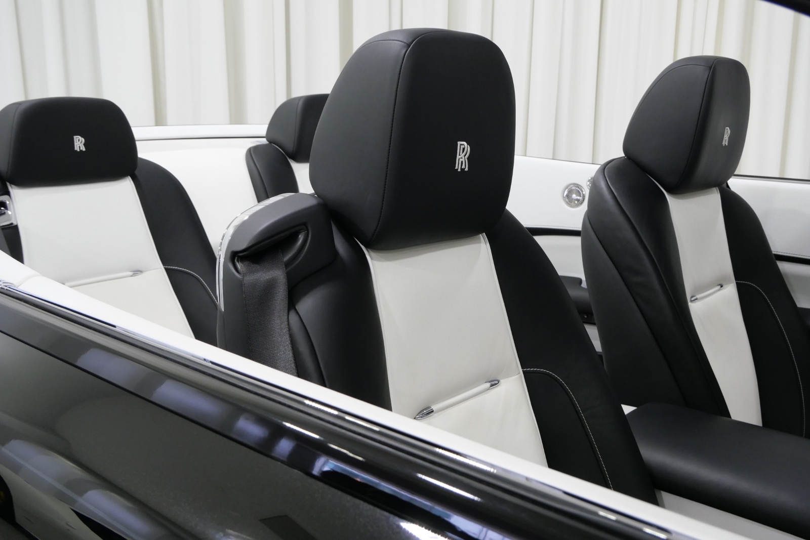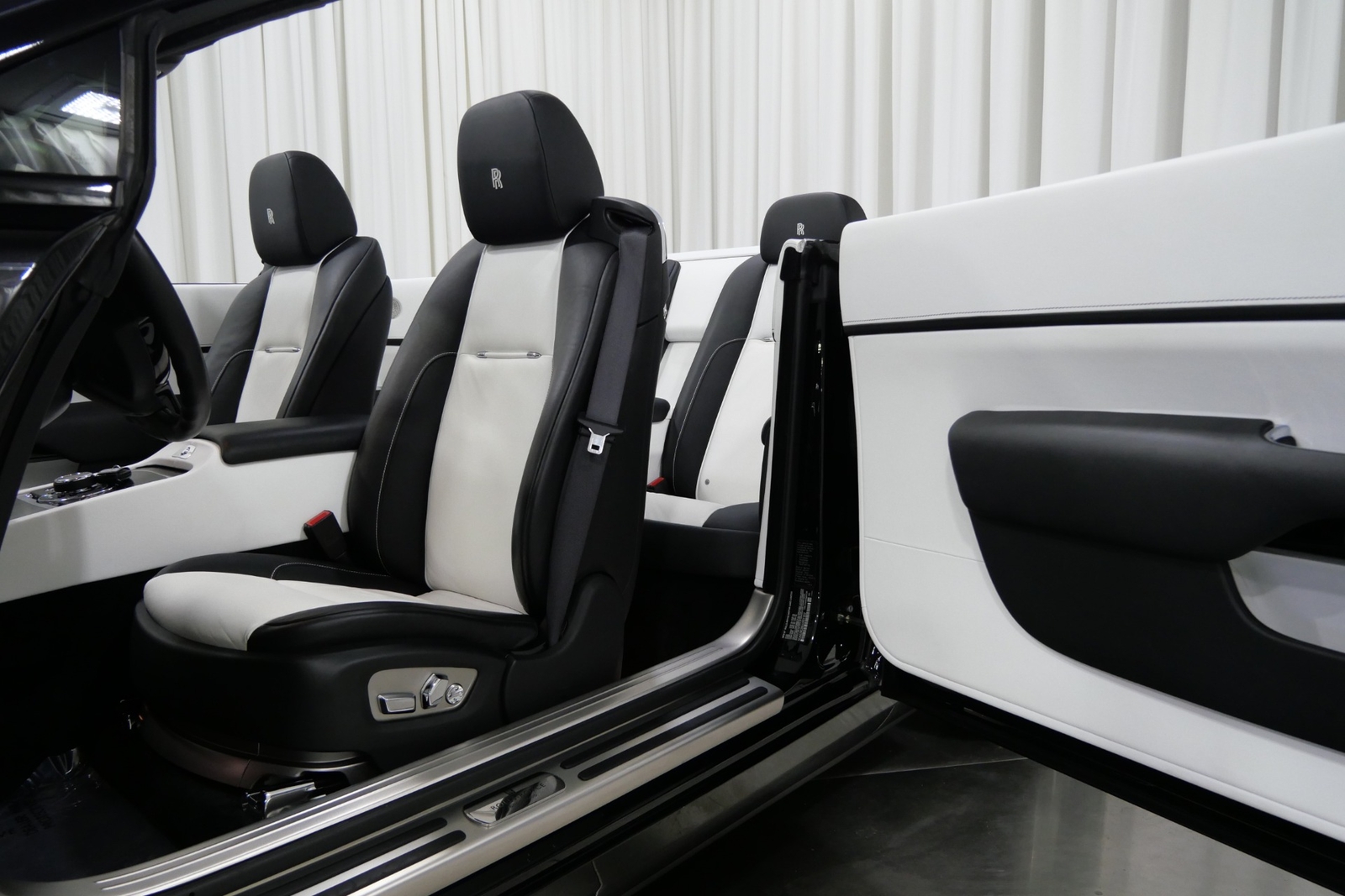 We have just added to our extensive exotic car inventory a beautiful 2020 Rolls Royce Dawn in Black Diamond over Arctic White and Black leather interior and only 12,803 miles. This Dawn is loaded with: 6.6 Liter twin turbo V12, automatic transmission, 21 inch 14 spoke part polished forged wheels, contrast upper color in Darkest Tungsten, single coachline in Darkest Tungsten, exterior black detailing, interior detailing package (seat piping in Arctic White, door contrast stitching in Arctic White, Rolls-Royce Goodwood treadplates, bespoke interior editing), Rolls-Royce bespoke audio, door contrast feature with black stitching, RR monograms to all headrests, full natural grain leather, instrument panel with top stitch, piano black veneers, front heated seats, driver assistance 1 (lane departure warning, high beam assistance, and head-up display), surround view cameras, floor mats, black convertible top and much more. The original MSRP was $418,300 with over $56,000 in options.