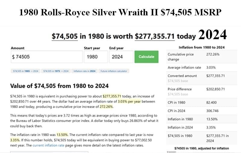1980 Rolls-Royce Silver Wraith II 42-Years-Owned California 2nd owner Texas 17K ORIGINAL MILES V8 6.7 LITER VIN NUMBER LRL41174C COLD A/C Chassis: LRL41174C Fuel-Injected 6.75-Liter V8 Three-Speed Automatic Transmission Exeter Blue Paint Beige Leather Upholstery 15 Steel Wheels Beige Everflex Roof Covering Four-Wheel Disc Brakes Blaupunkt Frankfurt Radio Motorola Car Phone Power-Adjustable Front Seats Pioneer Cassette Player Power Windows CALL OR TEXT ANYTIME FOR VIDEO LINK ROBERT 1877-211-7157 This 1980 Rolls-Royce Silver Wraith II is one of approximately 2,135 examples built and is said to have been acquired by the seller in California in 1981. now with 2nd owner in Texas. Now showing 17koriginal miles, the car is finished in Exeter Blue over beige leather upholstery and is powered by a fuel-injected 6.75-liter V8 paired with a three-speed automatic transmission. Equipment includes a beige Everflex roof covering, 15" steel wheels, power windows, four-wheel disc brakes, a Motorola car phone, wood trim, power-adjustable front seats, and a Blaupunkt Frankfurt radio and Pioneer cassette player. This Silver Wraith II is offered with a clean Texas title in the seller’s name. The Silver Wraith II was a long-wheelbase variant of the Silver Shadow II and offered four additional inches of rear cabin length. The car is finished in Exeter Blue (9510409) and features a beige Everflex-covered roof, a Spirit of Ecstasy hood ornament, bright trim, black bumper guards, and dual polished exhaust finishers. The 15" steel wheels wear brushed stainless-steel hubcaps with trim rings and are mounted with 235/70 Vogue Wide Trac Touring Radial VII tires that show date codes from 2022. The car is equipped with hydraulic suspension, and stopping power is provided by four-wheel disc brakes. The cabin is trimmed in beige Connolly leather upholstery with blue piping on the seats and burl wood accents. Real Wool floor mats line the footwells, and other features include power-adjustable front seats, power windows, a Motorola car phone, rear footrests, fold-down front and rear center armrests, and a Blaupunkt Frankfurt radio and Pioneer cassette player. A black two-spoke steering wheel fronts Smiths instrumentation that includes an 85-mph speedometer, an analog clock, and auxiliary gauges. The six-digit mechanical odometer shows 17k miles, approximately 15k of which were added by the seller. The fuel-injected 6.75-liter V8 was available exclusively for California-market examples produced for the model’s final year. The fuel distributor was rebuilt by CIS Flowtech of Fairhope, Alabama, in August 2021, and the fuel pump check valve and accumulator were replaced in September 2021. It is noted the car has a shorted oil level switch and sensor. Power is sent to the rear wheels through a column-shifted three-speed automatic transmission. Runs and drives amazing no issues. CALL OR TEXT ANYTIME FOR VIDEO LINK ROBERT 1877-211-7157