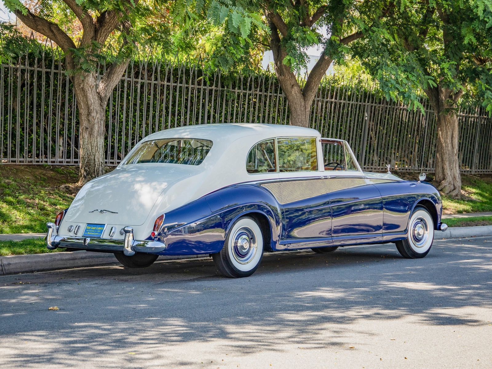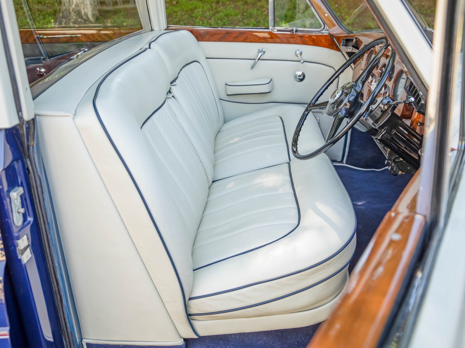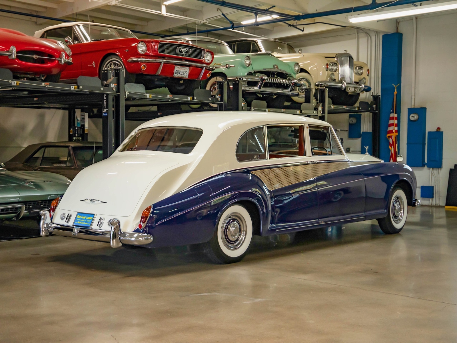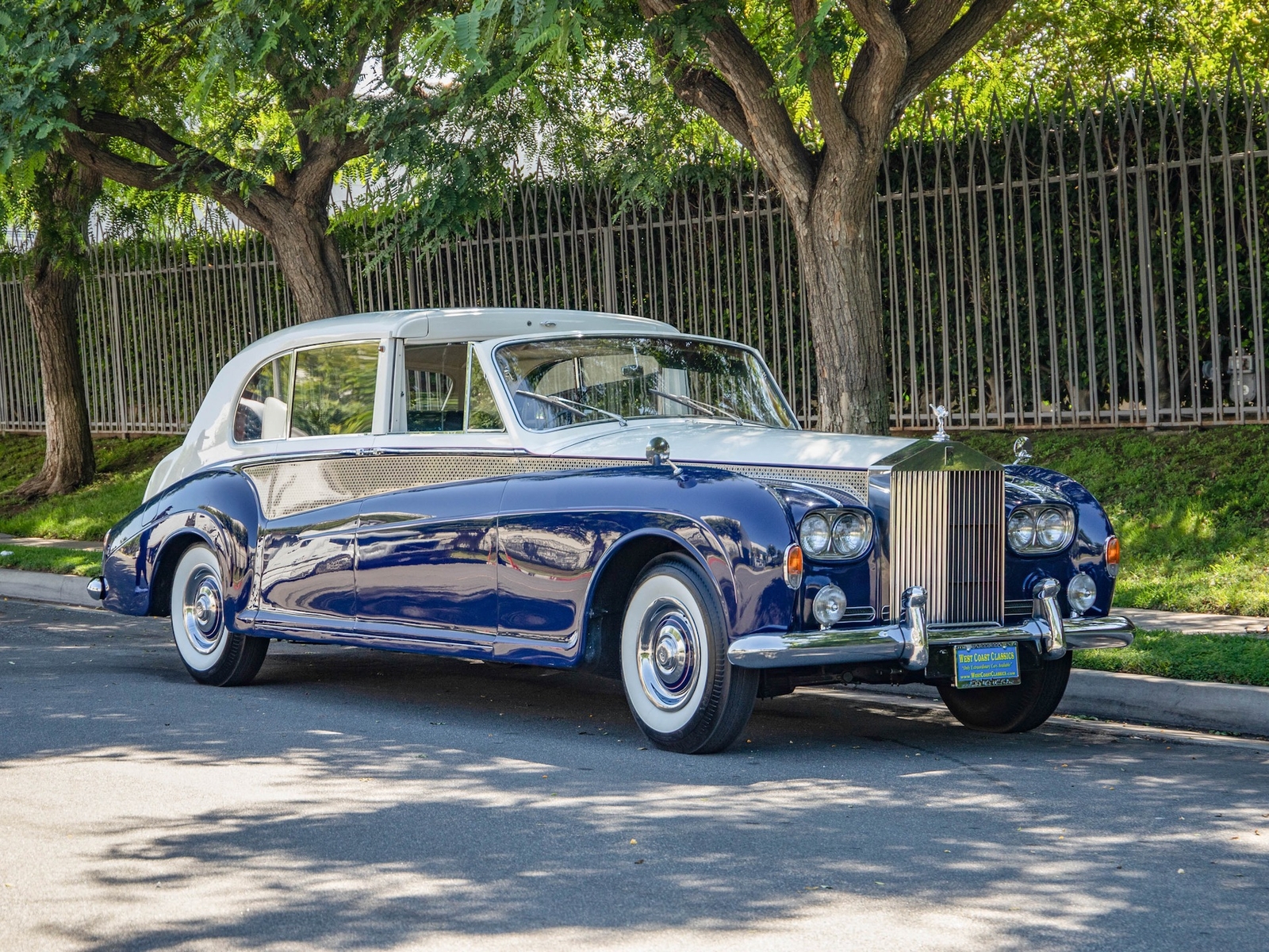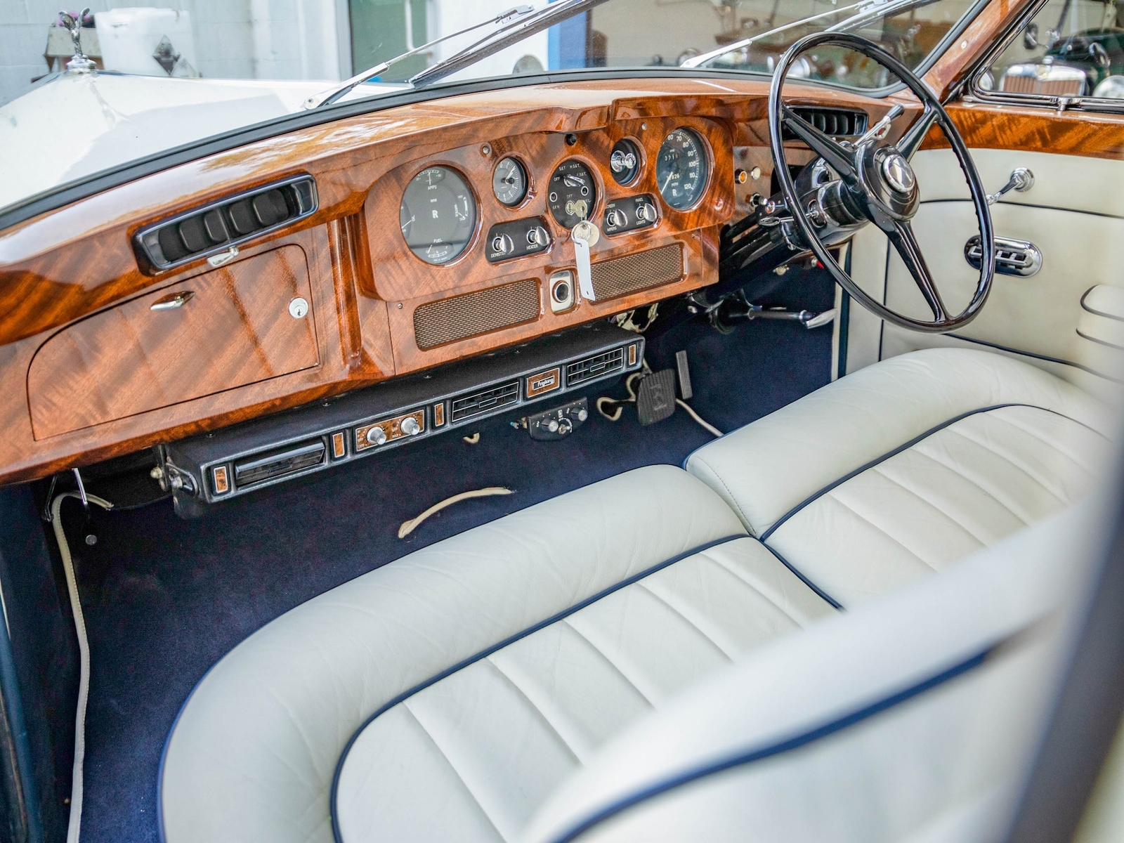 The body was liveried for Swinging London, in ivory white and royal blue with panels of decorative sham cane. In this form it surely turned heads at the 1965 Earls Court Motor Show, as is noted on both its build sheet and in Rolls-Royce Foundation records; a book published by its later home, Californias Behring Collection, notes it received a bronze medal at the show. Afterward it was delivered to the original owner B.P. Jenks, of Astbury Hall in Bridgnorth, Shropshire. At one point it was used as the basis for a Top Marques 1/43-scale model.