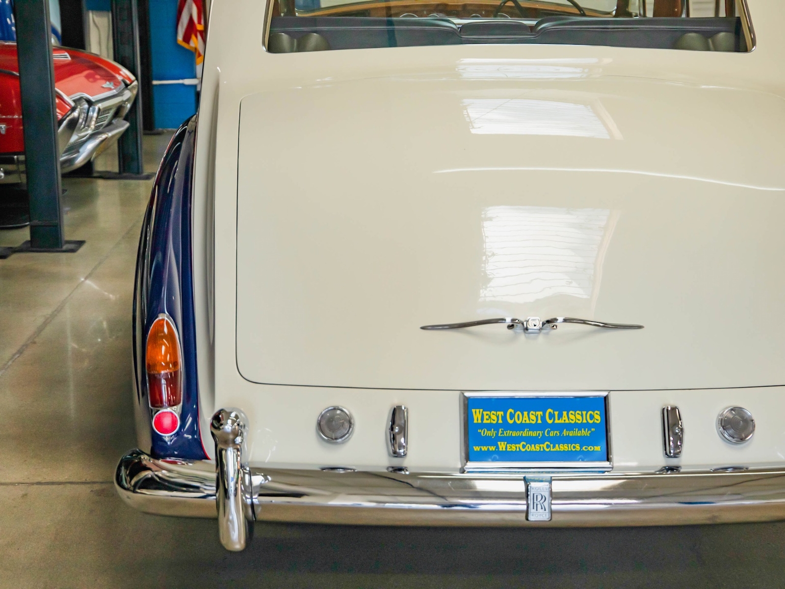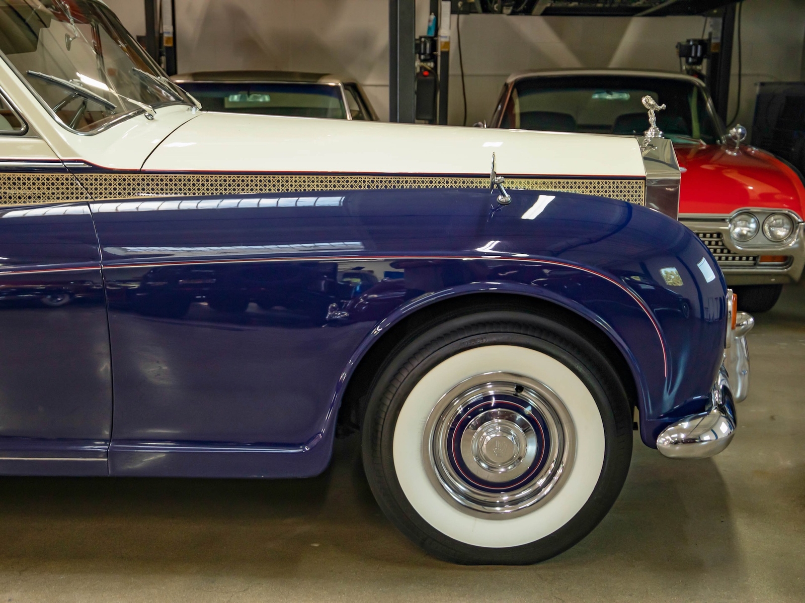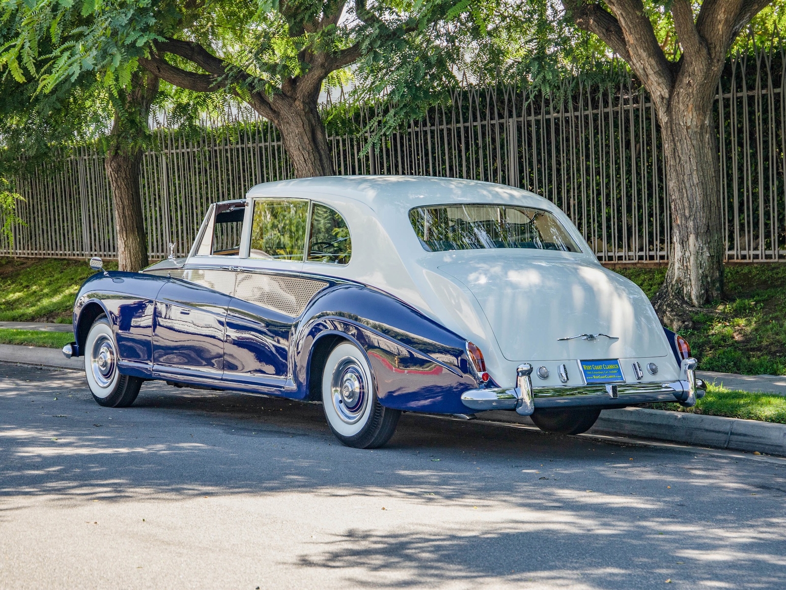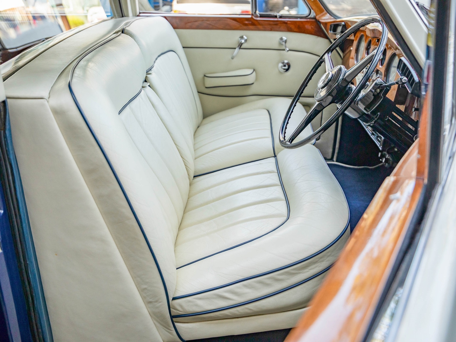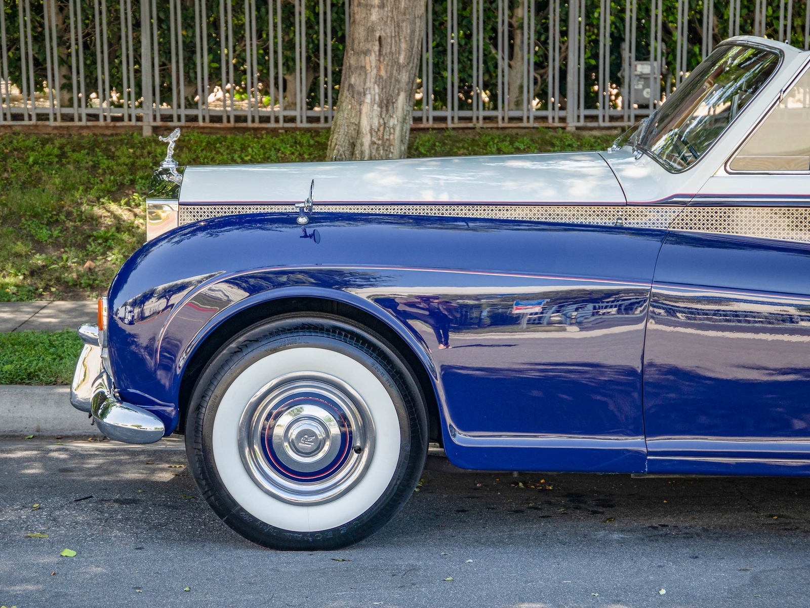 The body was liveried for Swinging London, in ivory white and royal blue with panels of decorative sham cane. In this form it surely turned heads at the 1965 Earls Court Motor Show, as is noted on both its build sheet and in Rolls-Royce Foundation records; a book published by its later home, Californias Behring Collection, notes it received a bronze medal at the show. Afterward it was delivered to the original owner B.P. Jenks, of Astbury Hall in Bridgnorth, Shropshire. At one point it was used as the basis for a Top Marques 1/43-scale model.