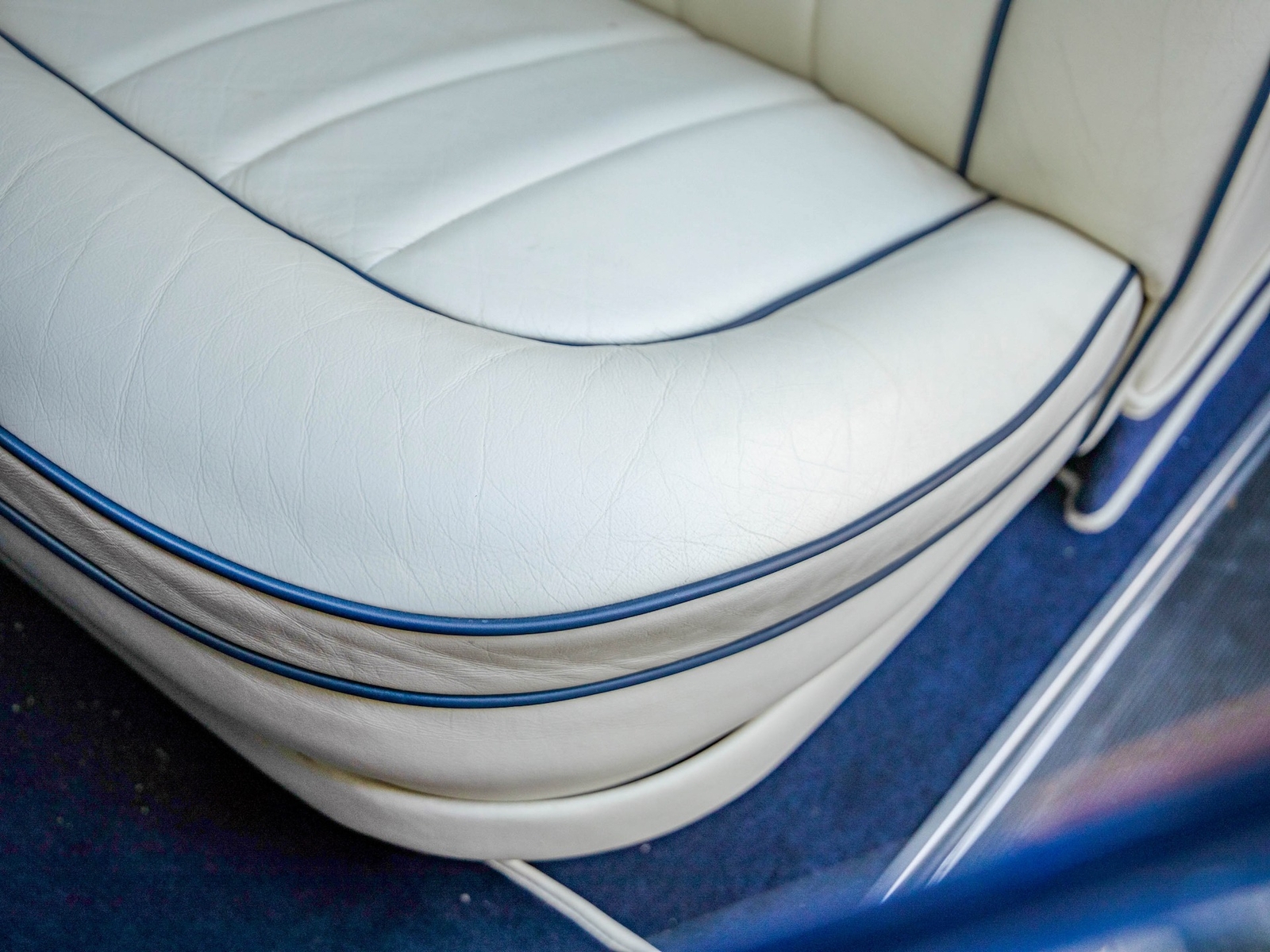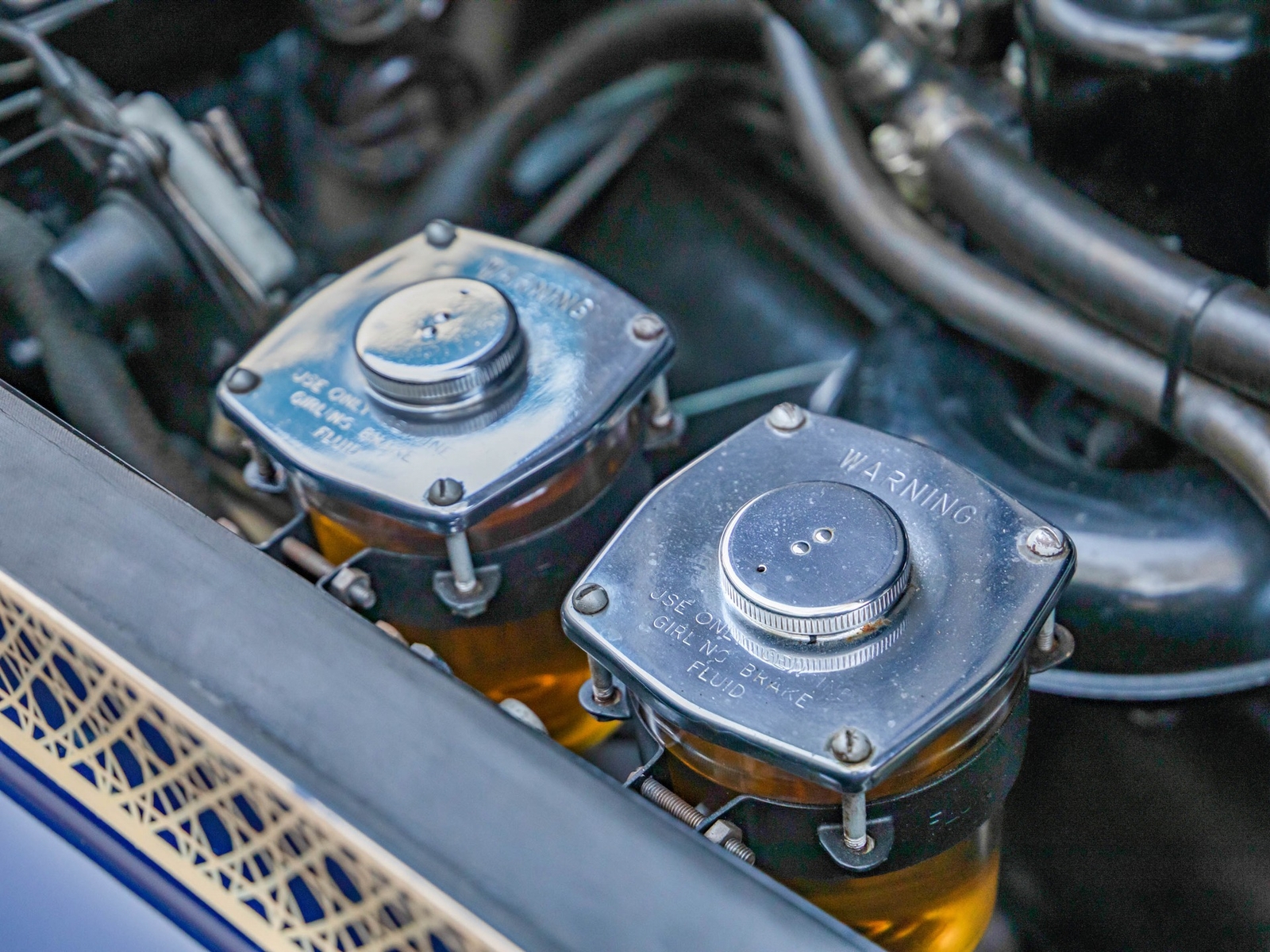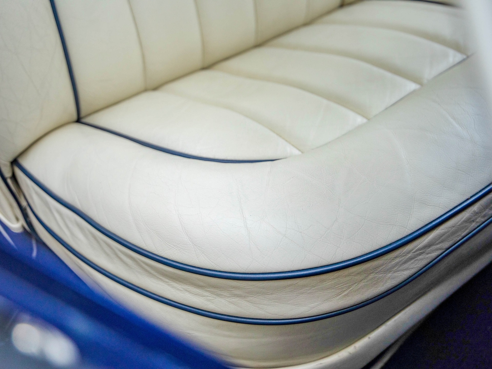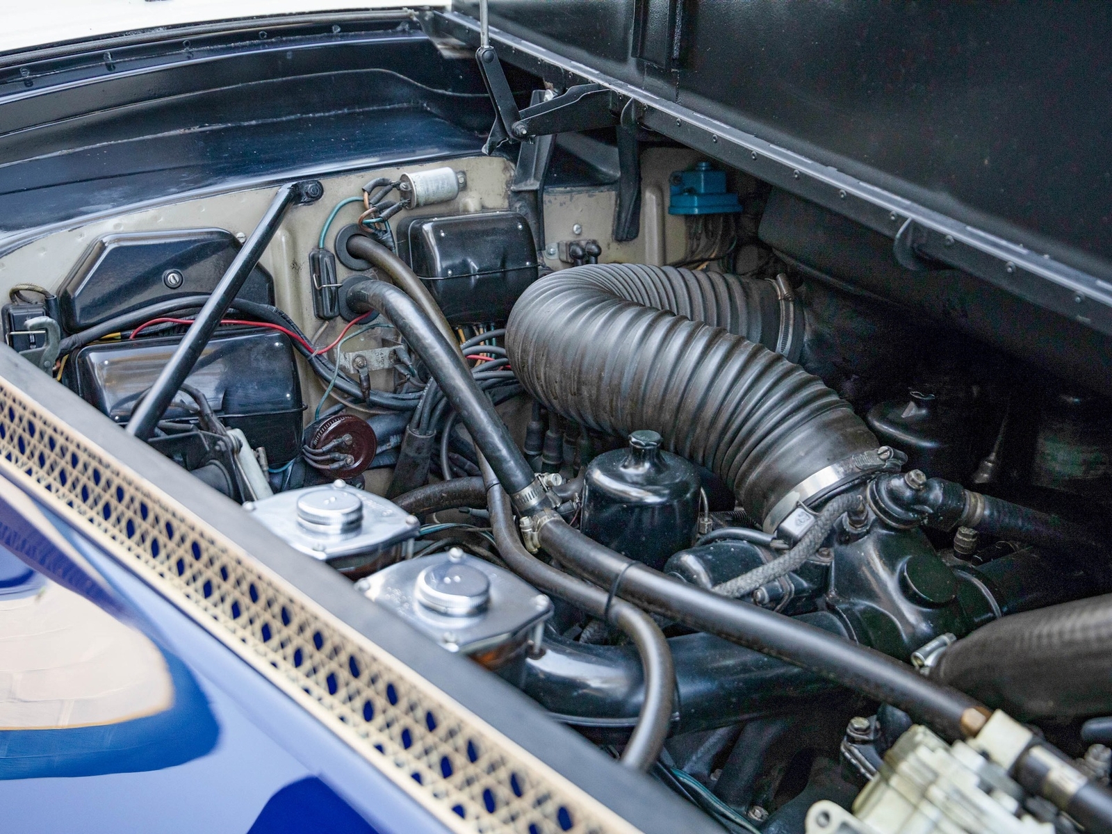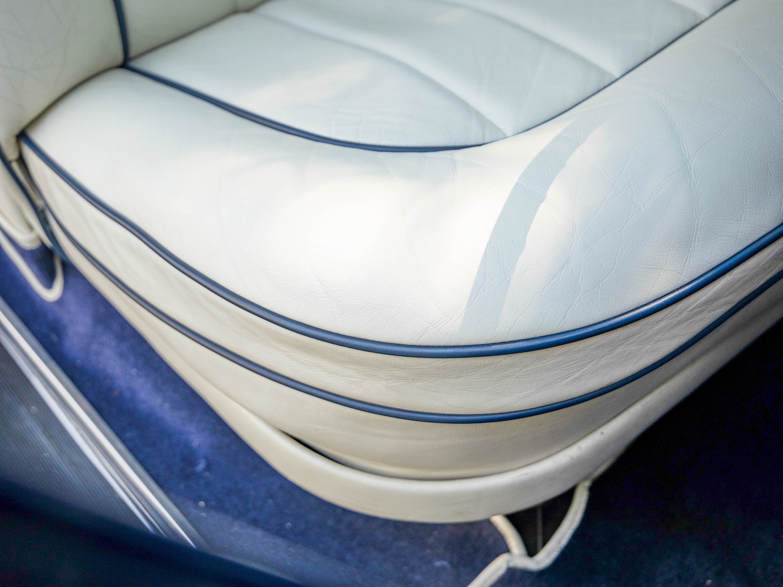 The body was liveried for Swinging London, in ivory white and royal blue with panels of decorative sham cane. In this form it surely turned heads at the 1965 Earls Court Motor Show, as is noted on both its build sheet and in Rolls-Royce Foundation records; a book published by its later home, Californias Behring Collection, notes it received a bronze medal at the show. Afterward it was delivered to the original owner B.P. Jenks, of Astbury Hall in Bridgnorth, Shropshire. At one point it was used as the basis for a Top Marques 1/43-scale model.