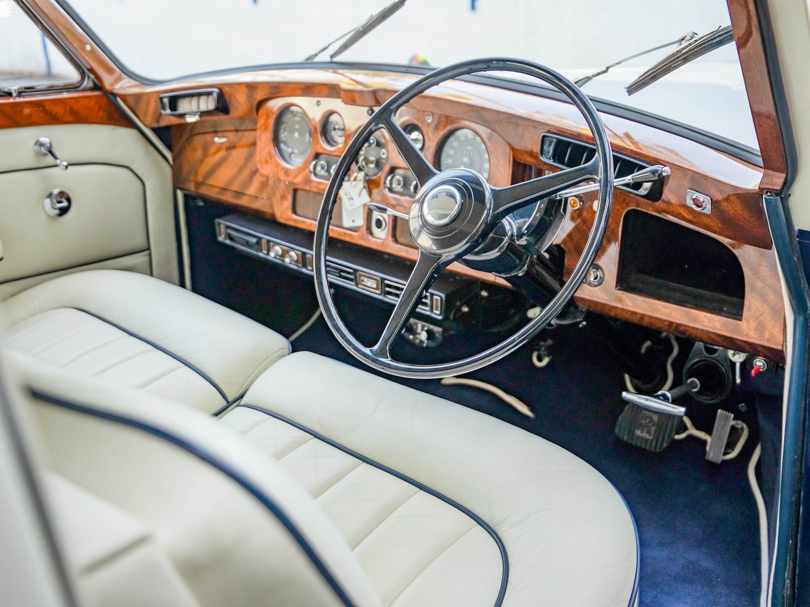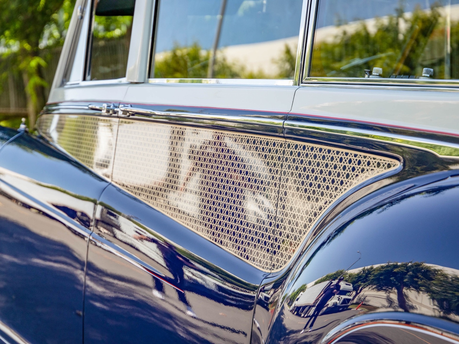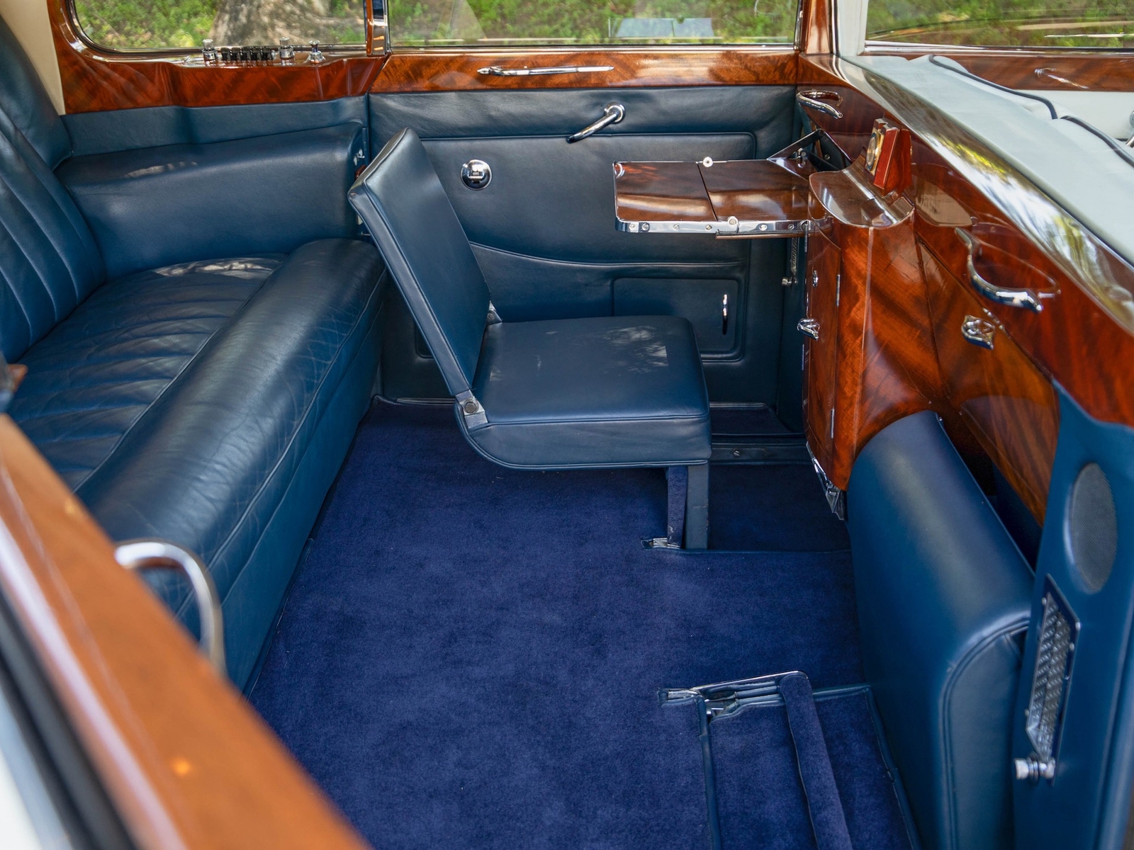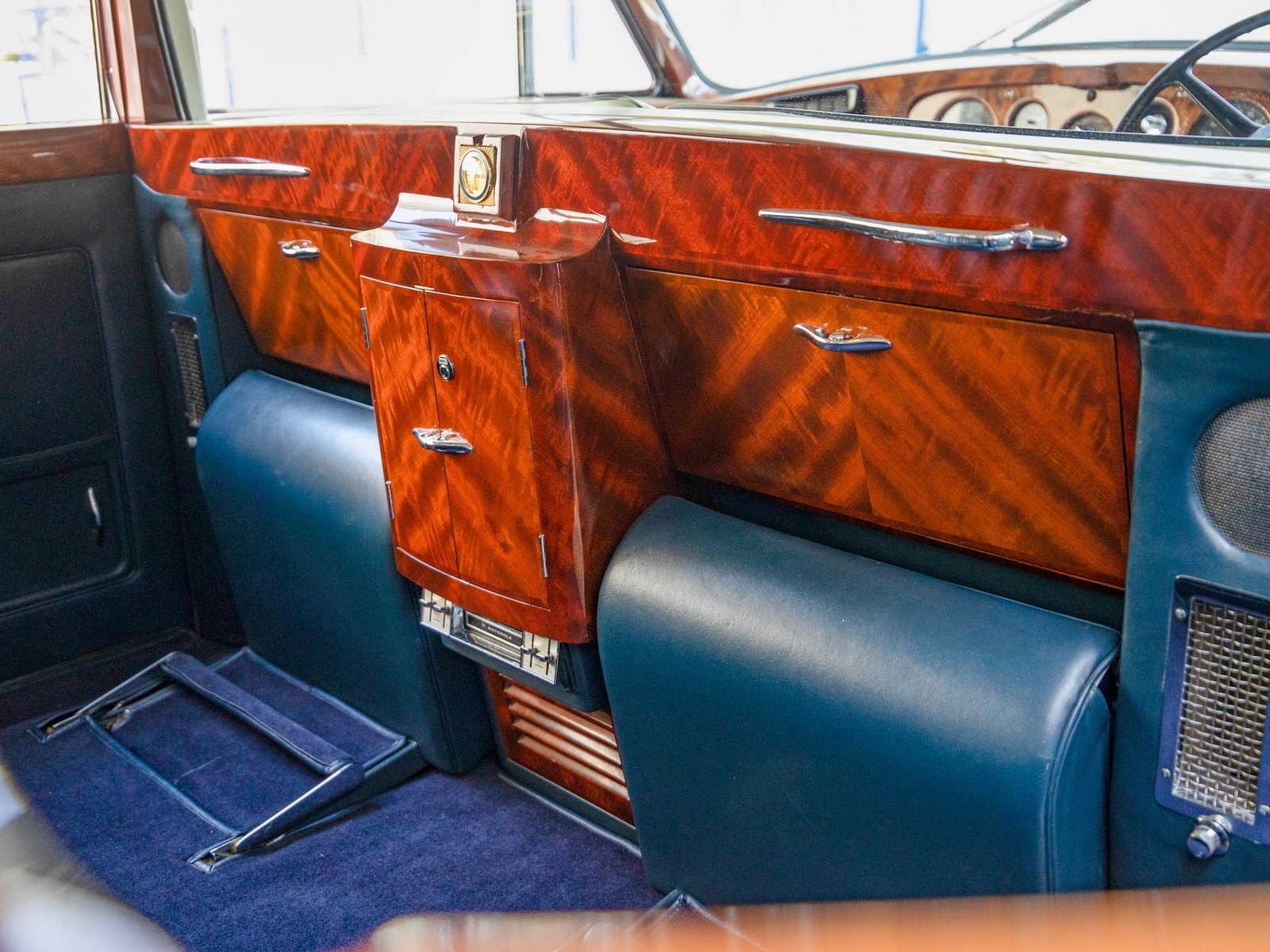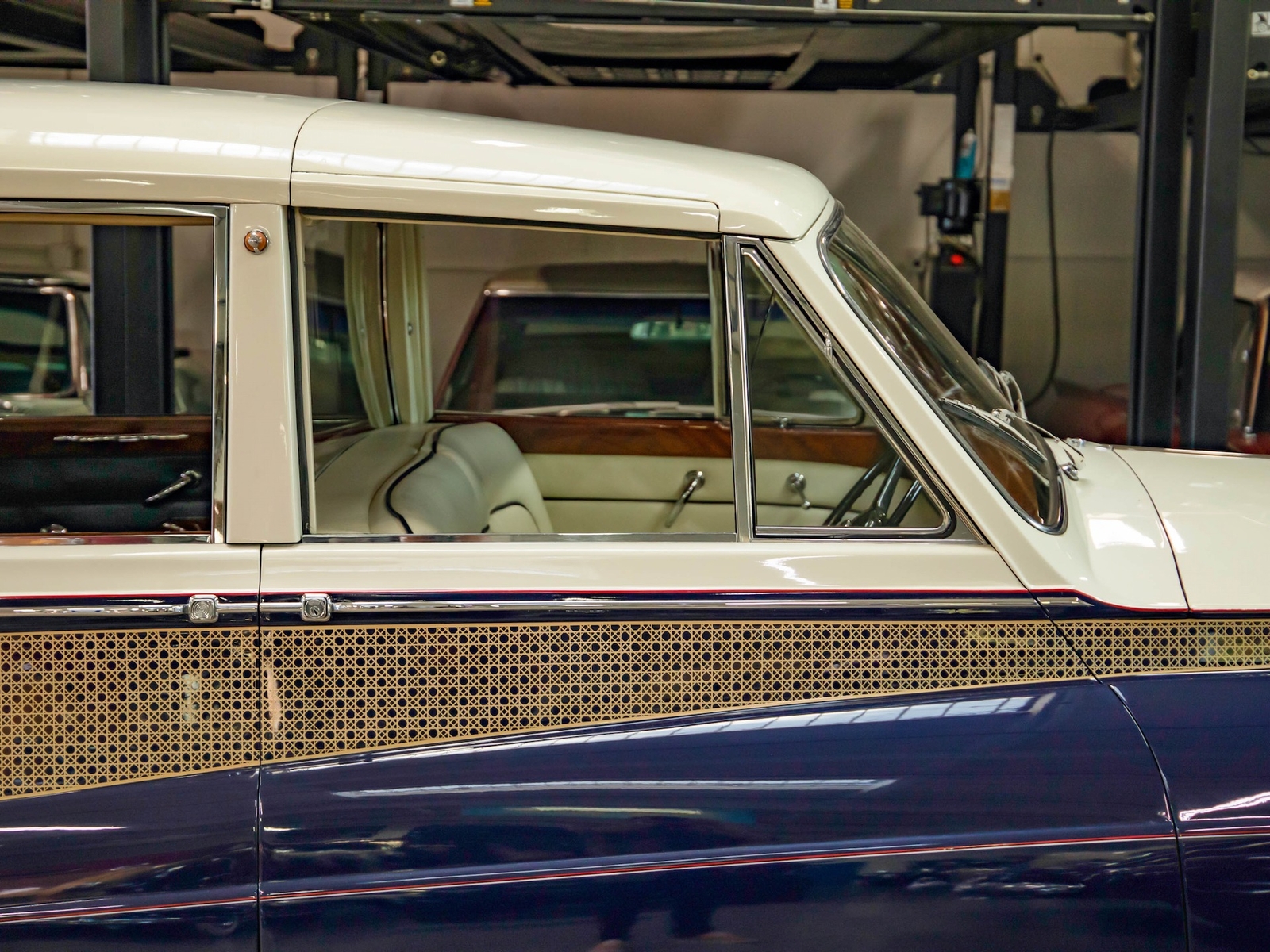 These cars were highly exclusive and equally conservative, using traditional ladder chassis and even four-wheel drum brakes (power assisted, naturally). The successor to the Phantom IV, this massive limousine shared the Bentley S Type & Silver Cloud chassis but used an appropriately longer wheelbase. Power was provided by the firm's new light alloy V8 engine and all the Phantom V's had custom crafted bodies by only exclusively appointed and "approved suppliers'. Rolls-Royce built the rolling chassis only. Similar styling to the Silver Cloud but much larger and with a multitude of interior refinements like this particular example which including seven passenger seating, division window, chauffeur equipment and rarely air conditioning.